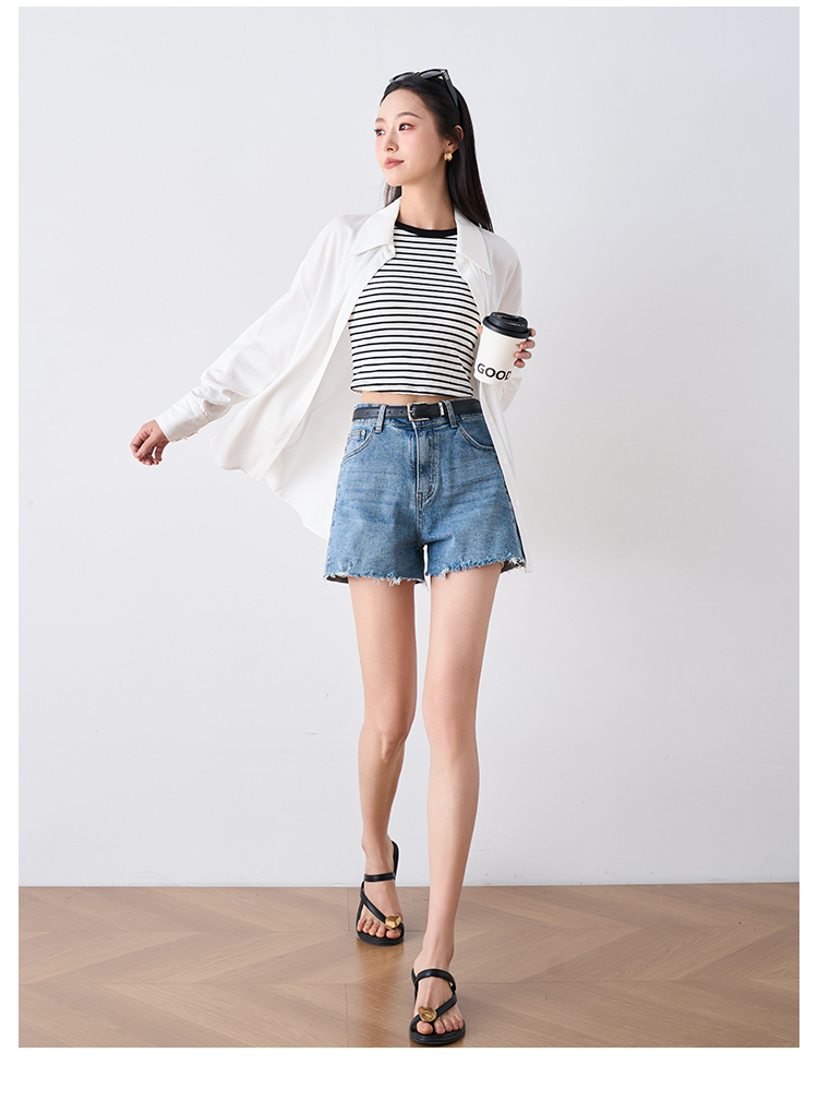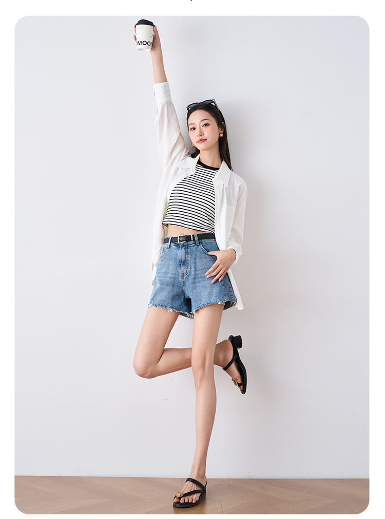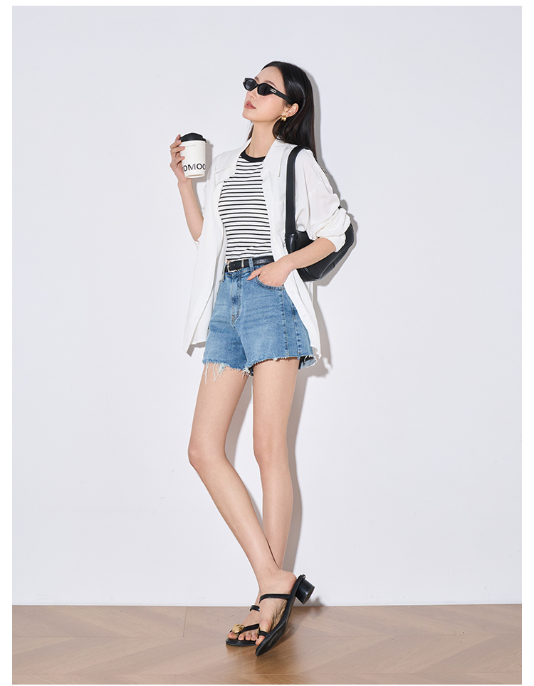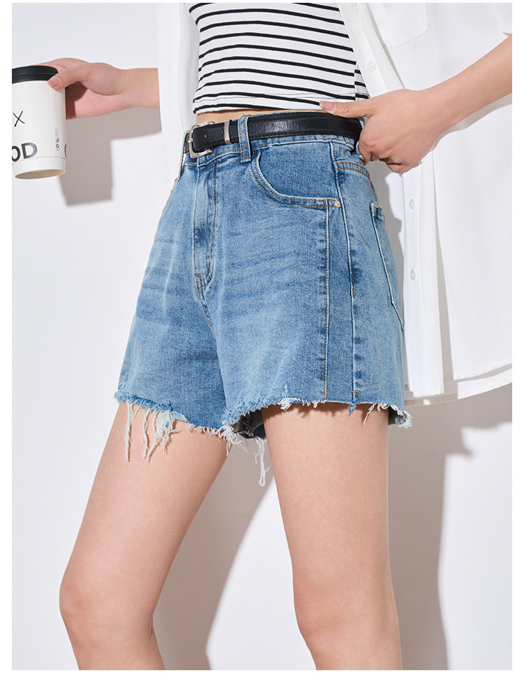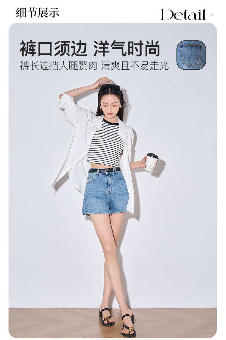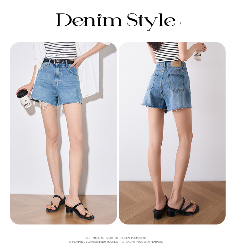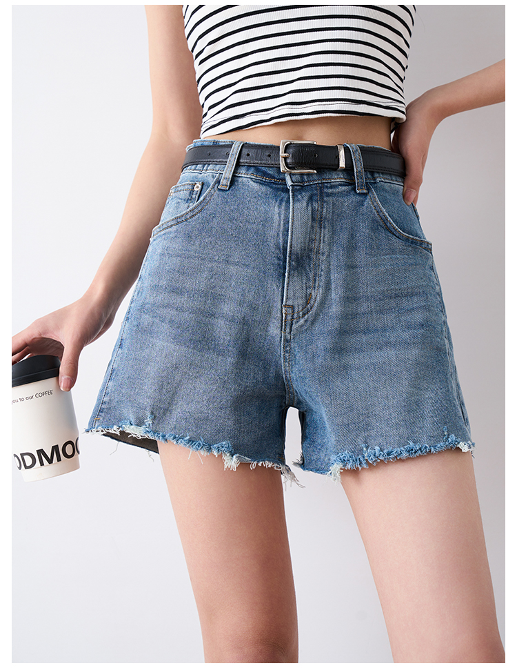OLrain欧芮儿高腰牛仔裤女夏季2024年新款时尚休闲毛边A字短裤