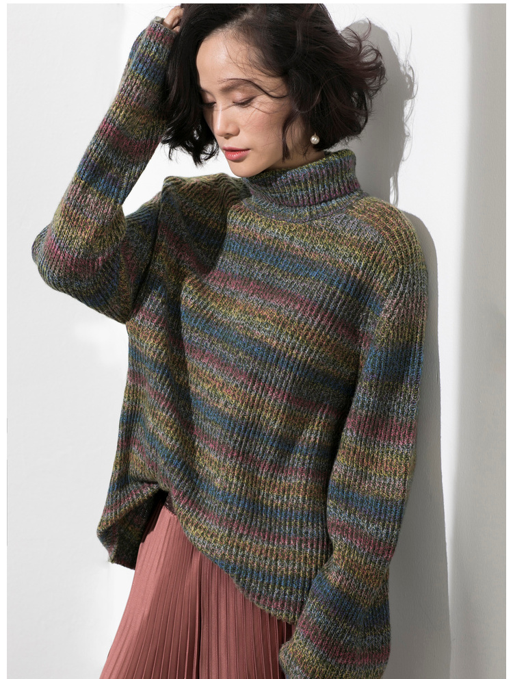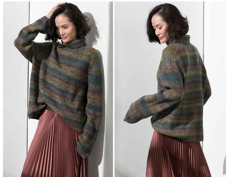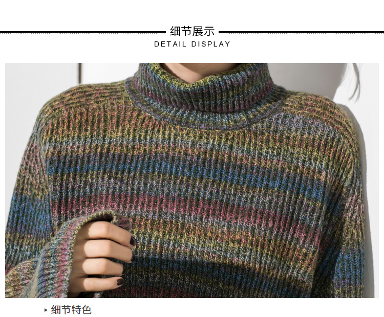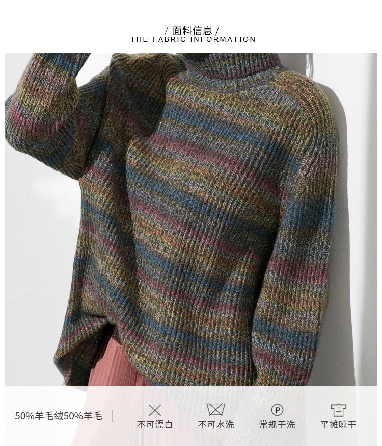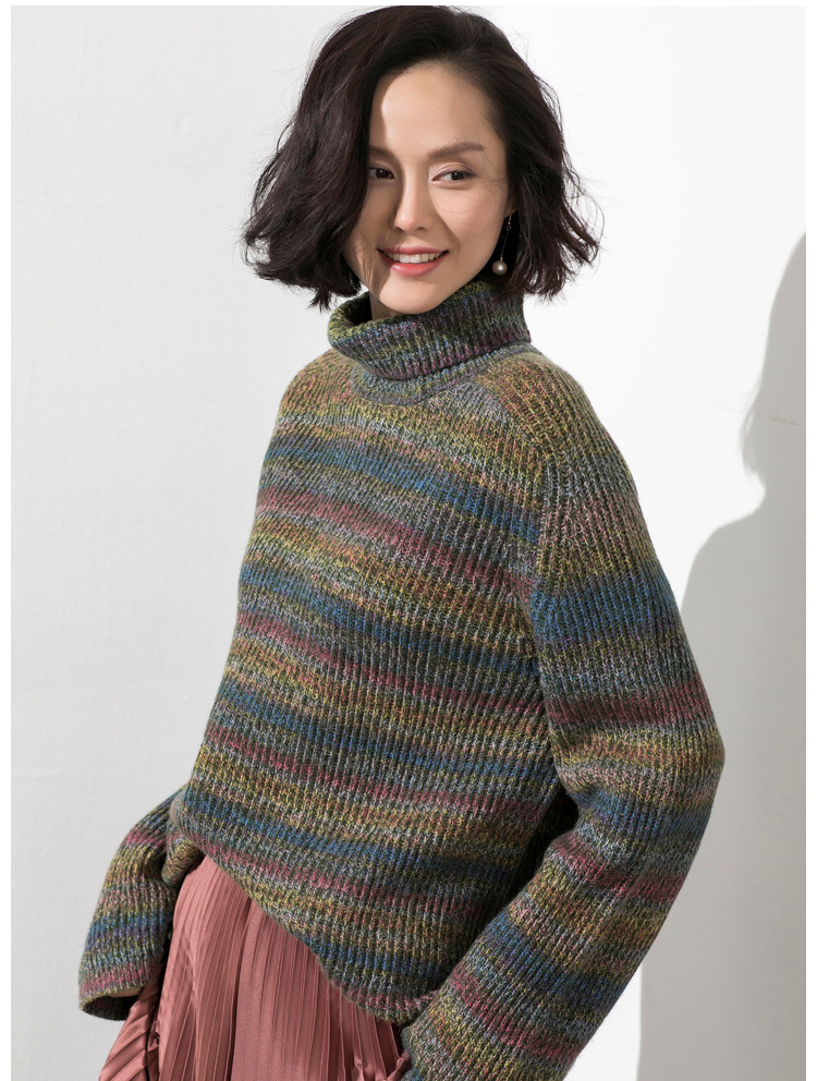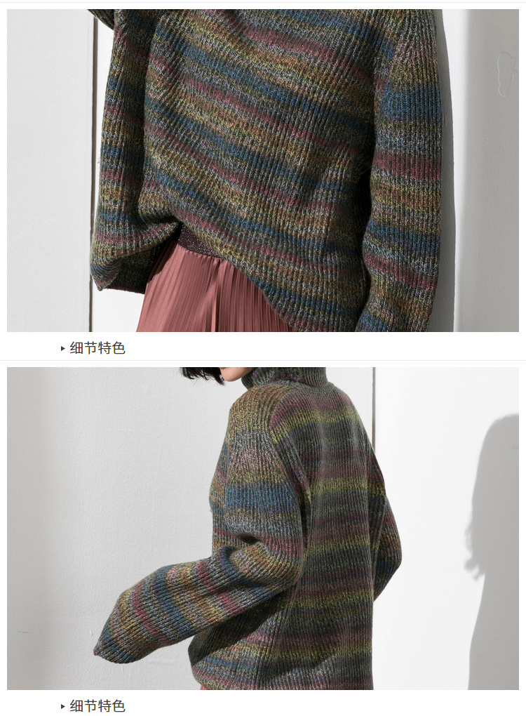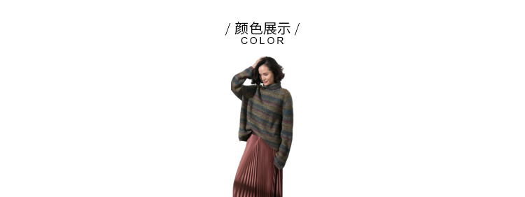 “彩虹”颈袖添香品牌2024秋冬针织毛衣新款圆领女修身显瘦打底衫女长袖彩虹羊绒衫J93E4061