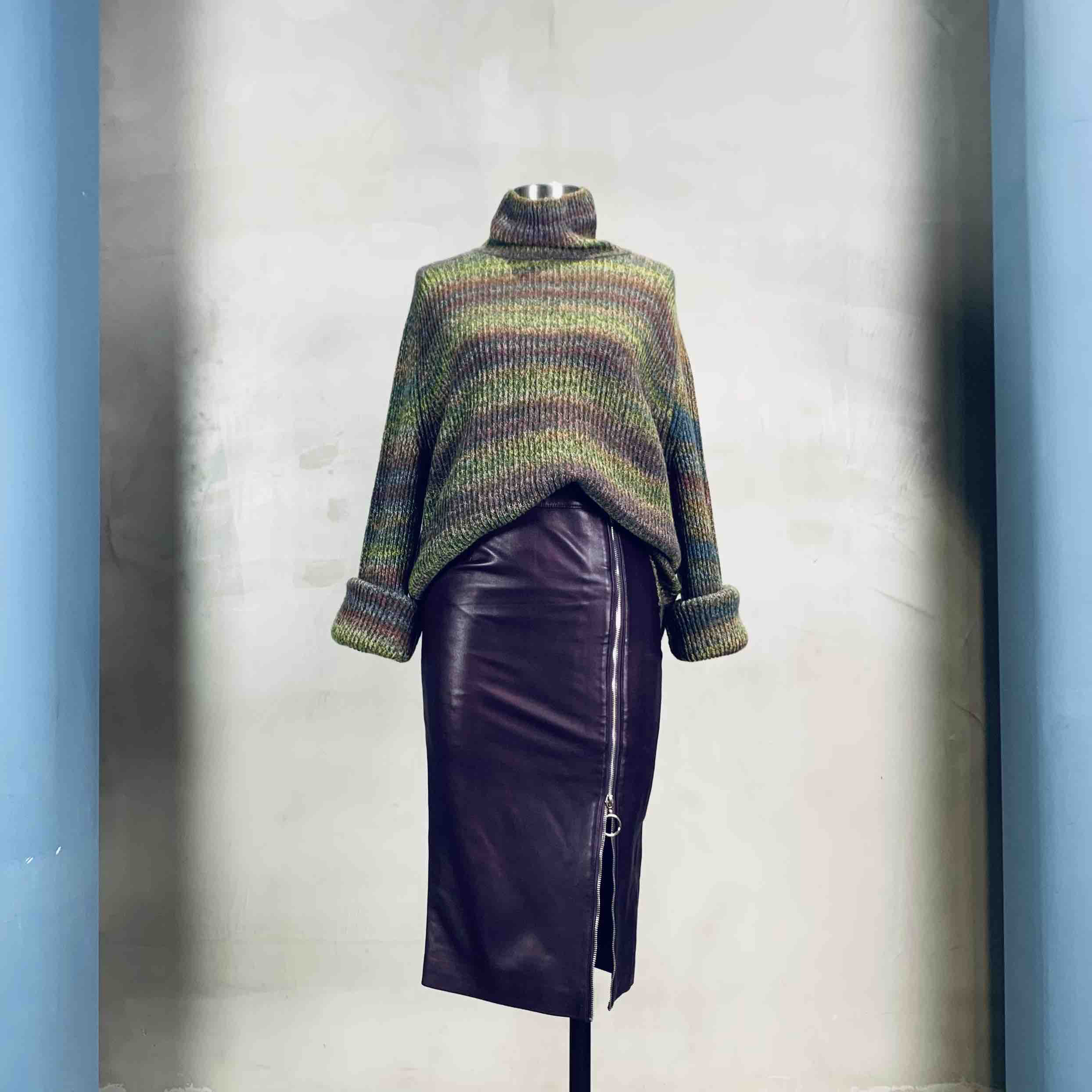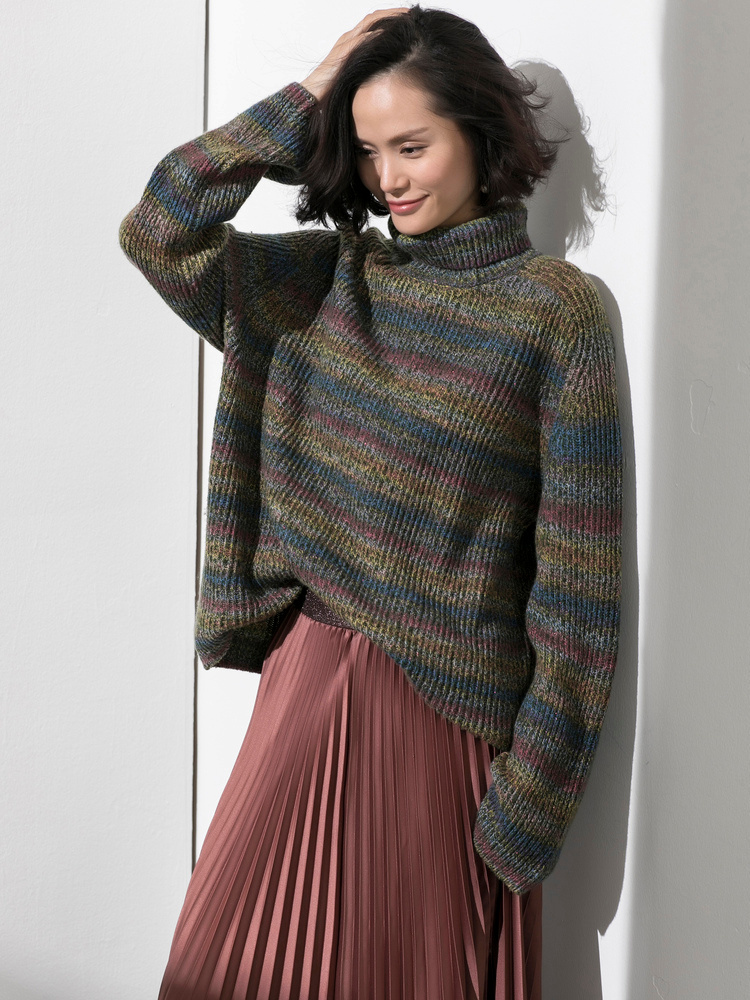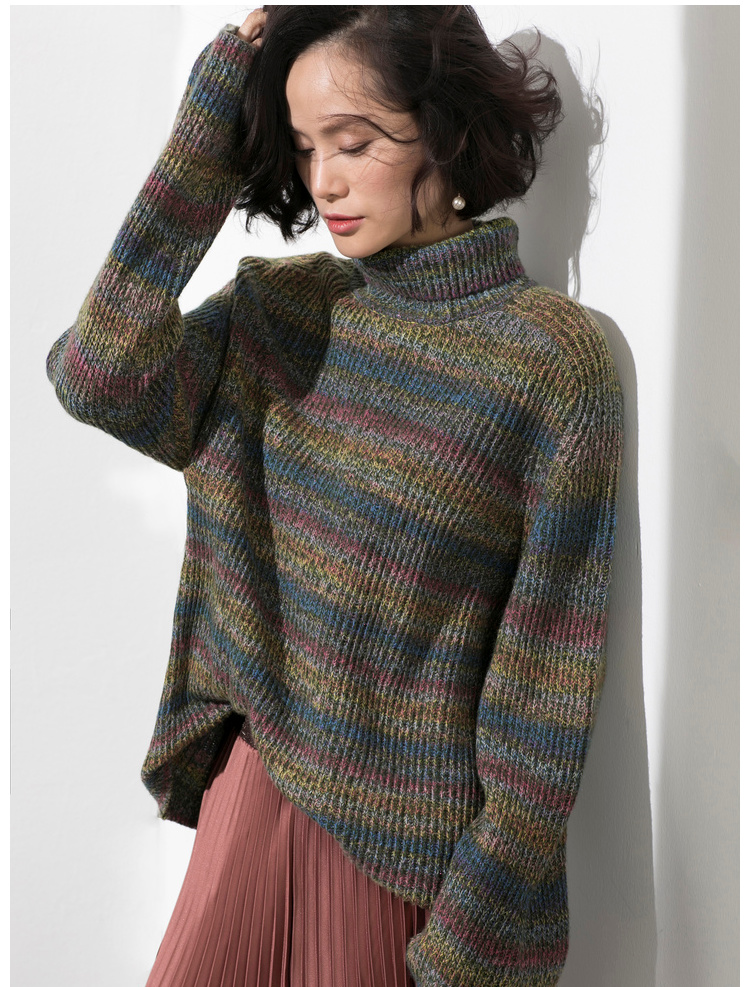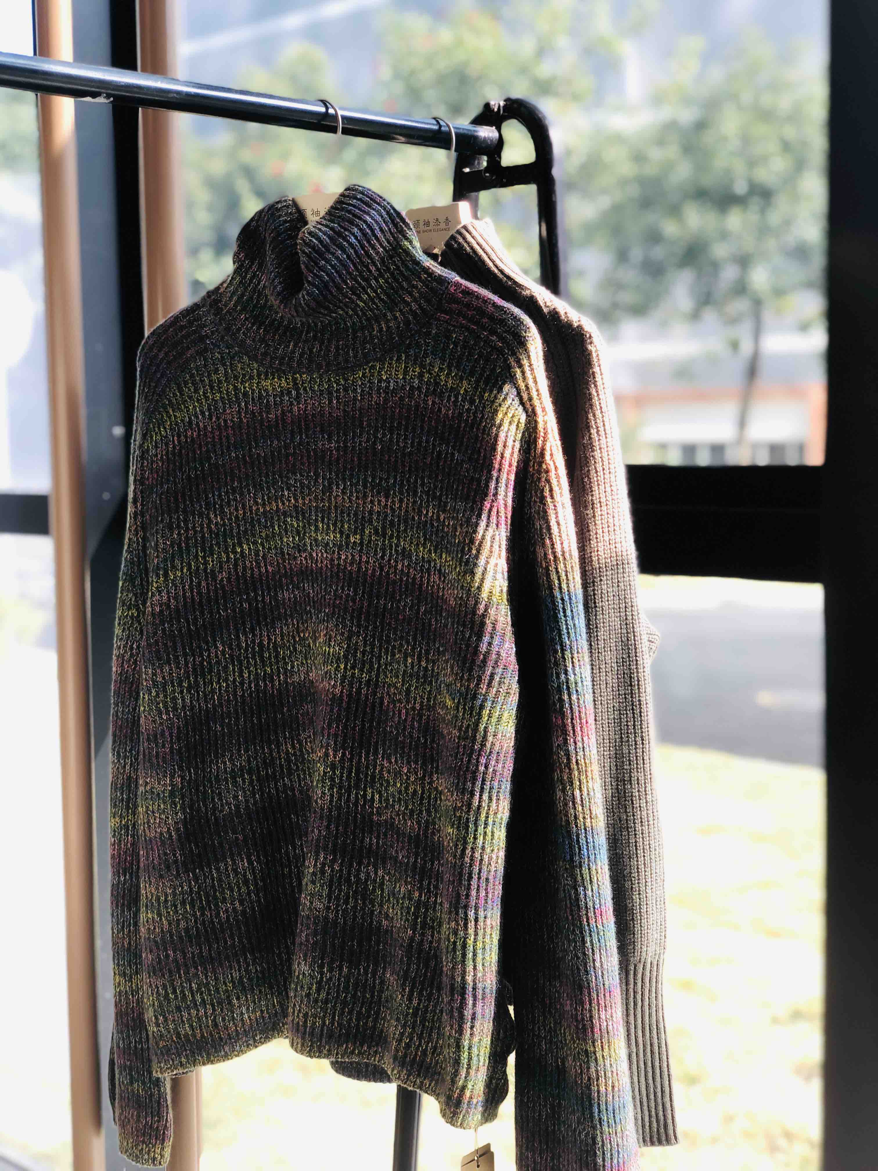 “彩虹”颈袖添香品牌2024秋冬针织毛衣新款圆领女修身显瘦打底衫女长袖彩虹羊绒衫J93E4061