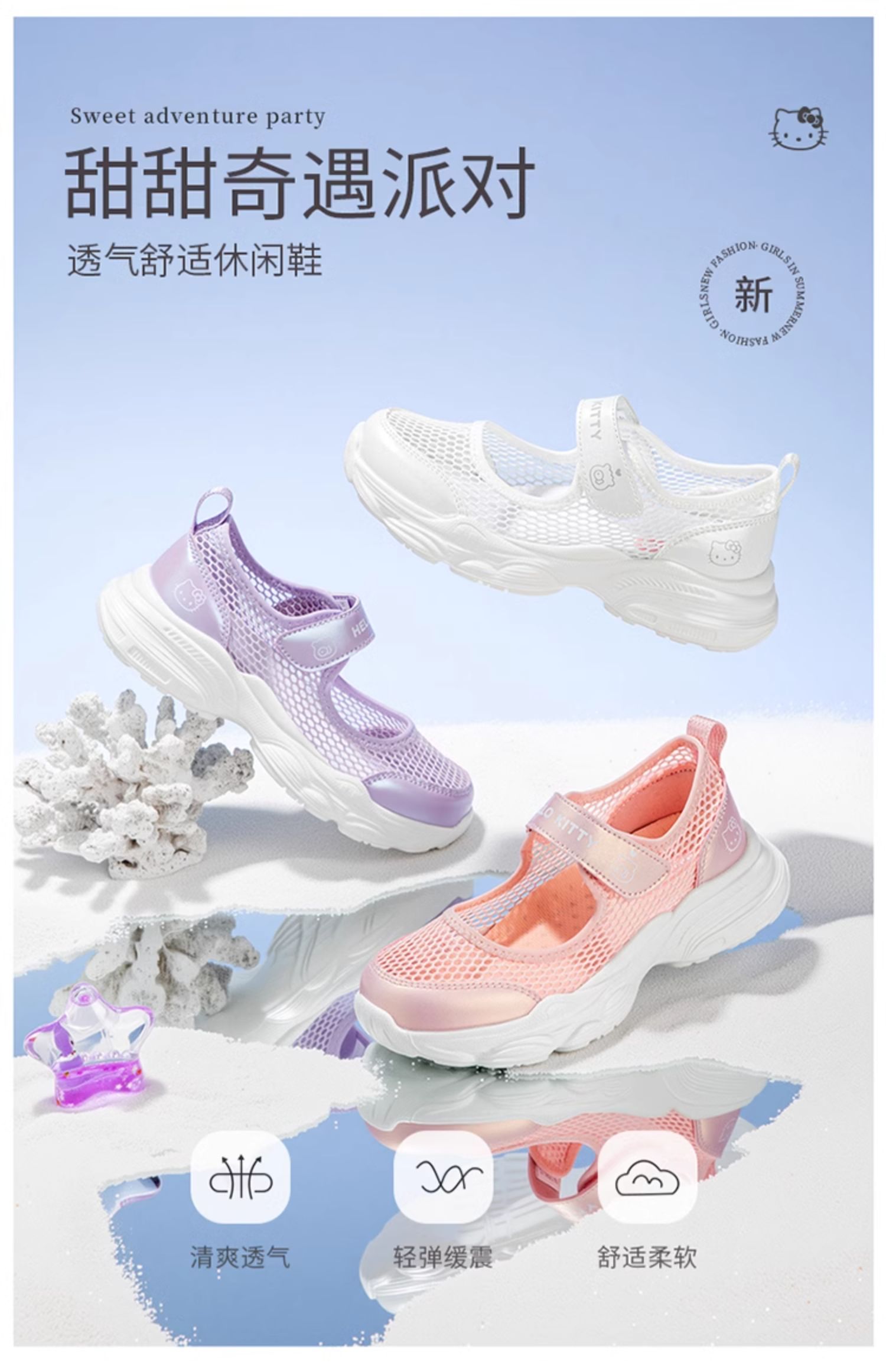 hellokitty童鞋女童鞋子夏季儿童透气网眼鞋女孩玛丽珍鞋28-37 K5526849