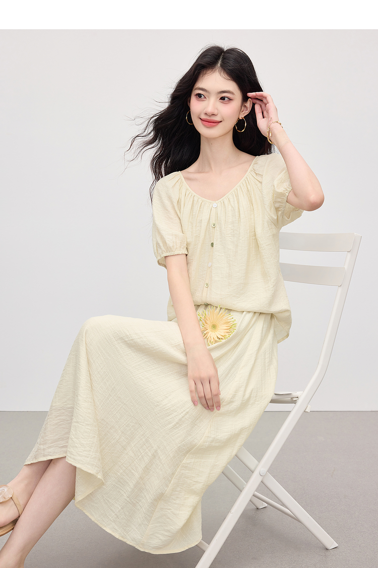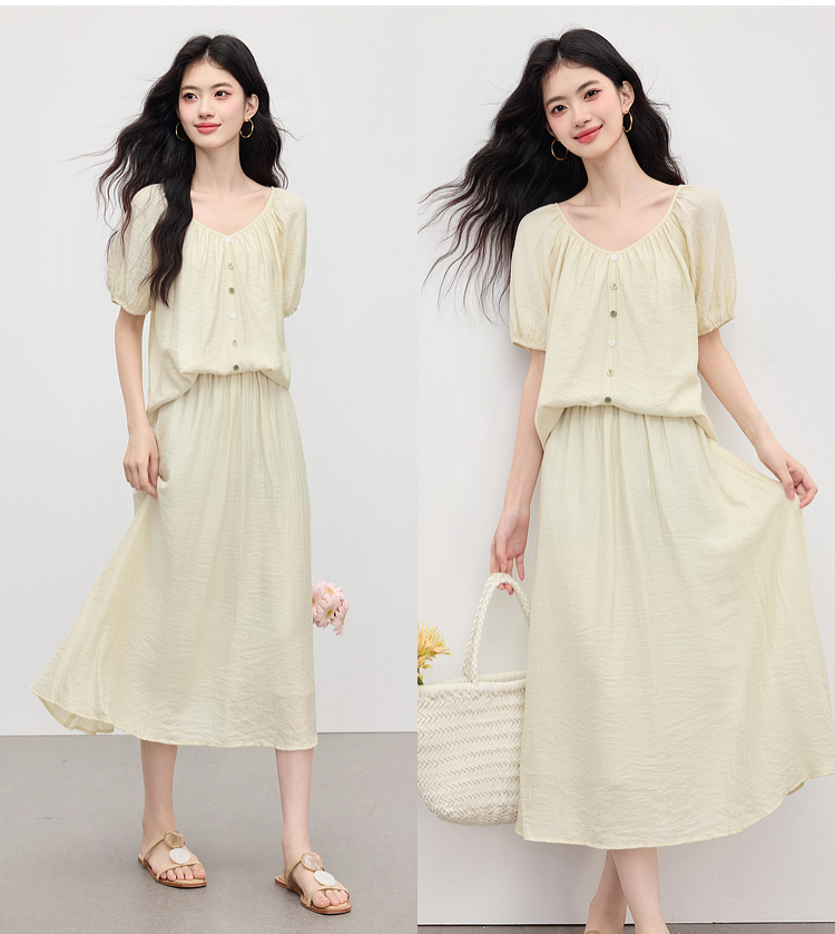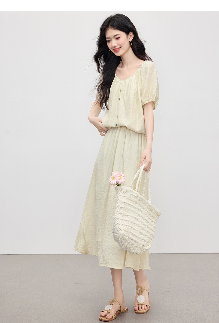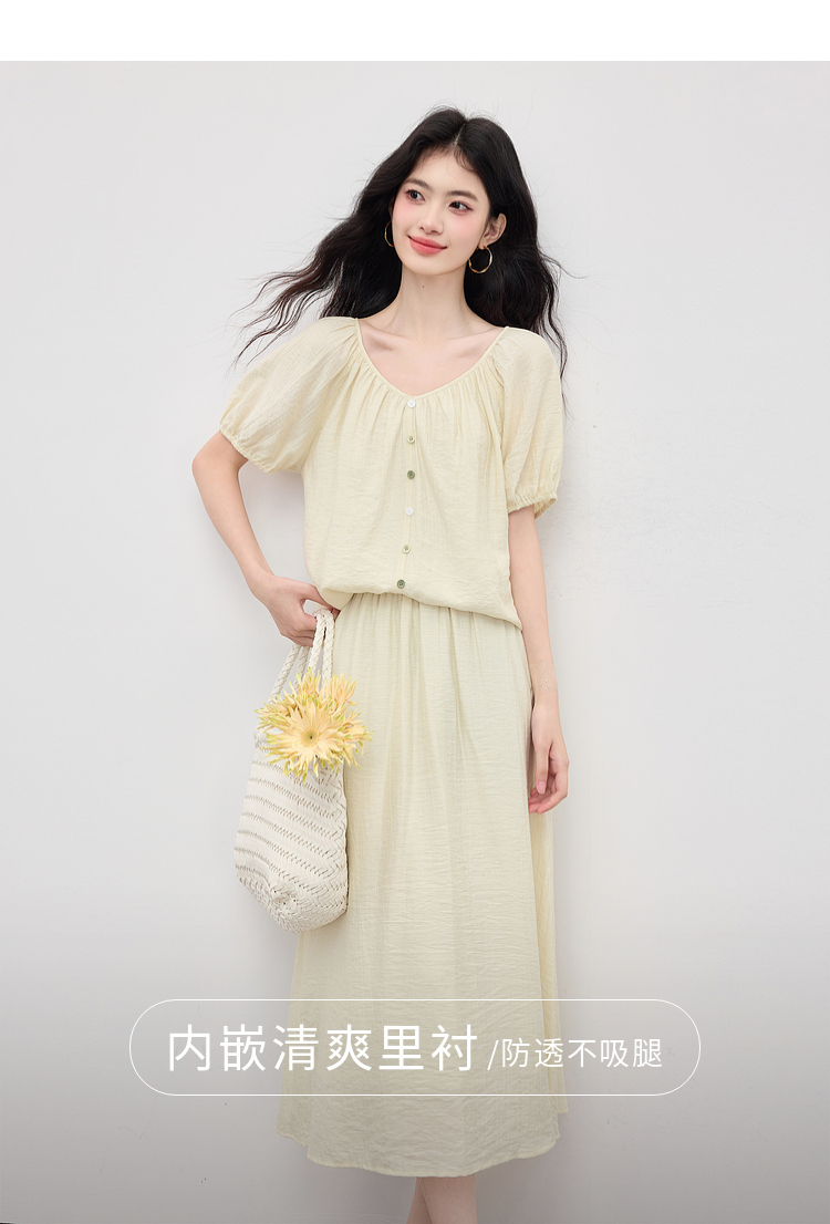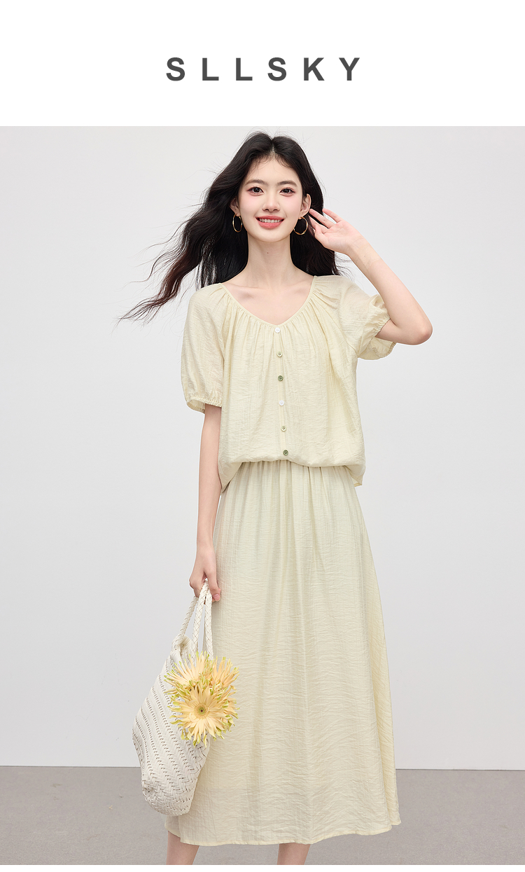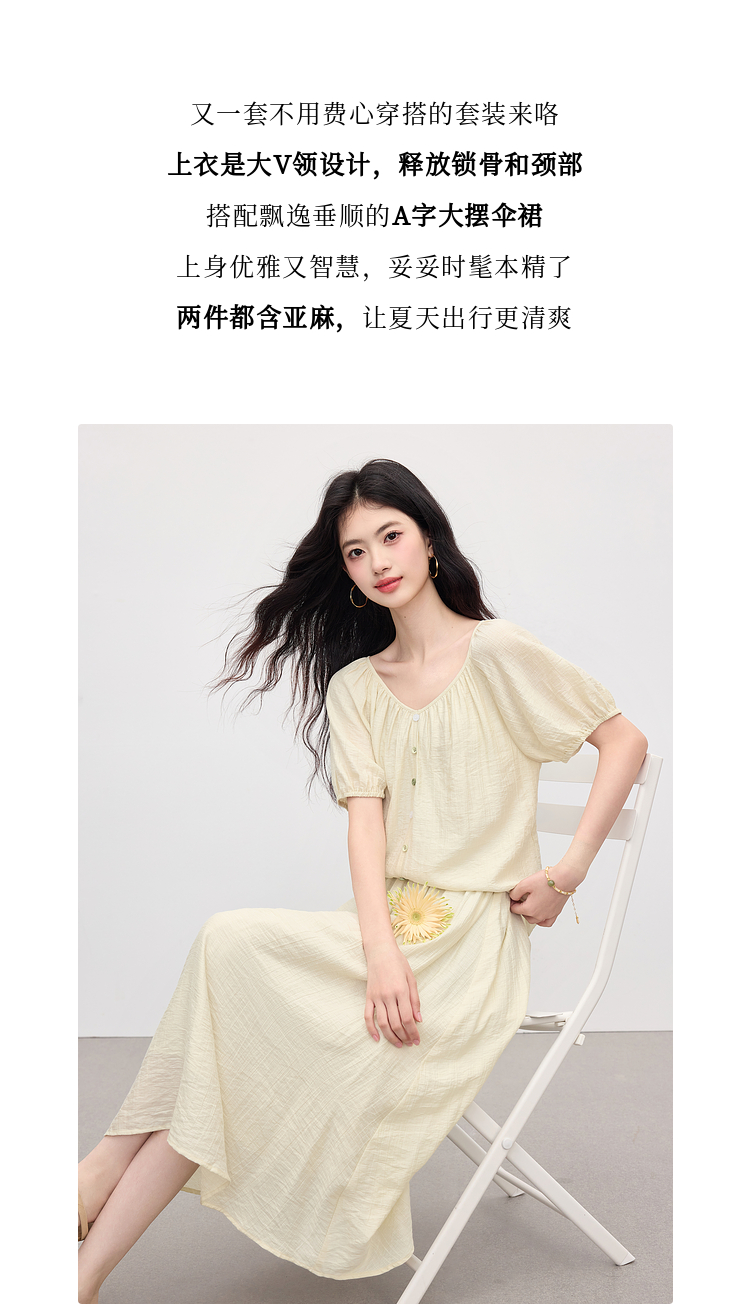 【专属特价】熙世界亚麻套装女2025新款夏季通勤休闲轻盈短袖衬衫半身裙两件套