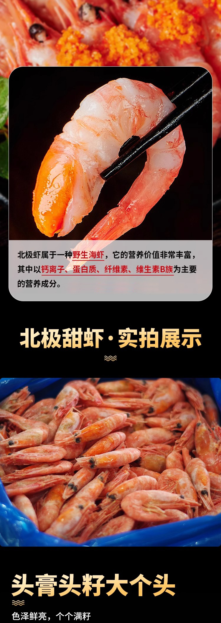 【野生海产】北极甜虾【头籽】1.5kg 大西洋纯净海域