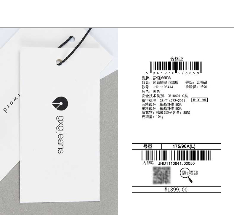 gxgjeans男装春季热卖羽绒服JHD1110841J