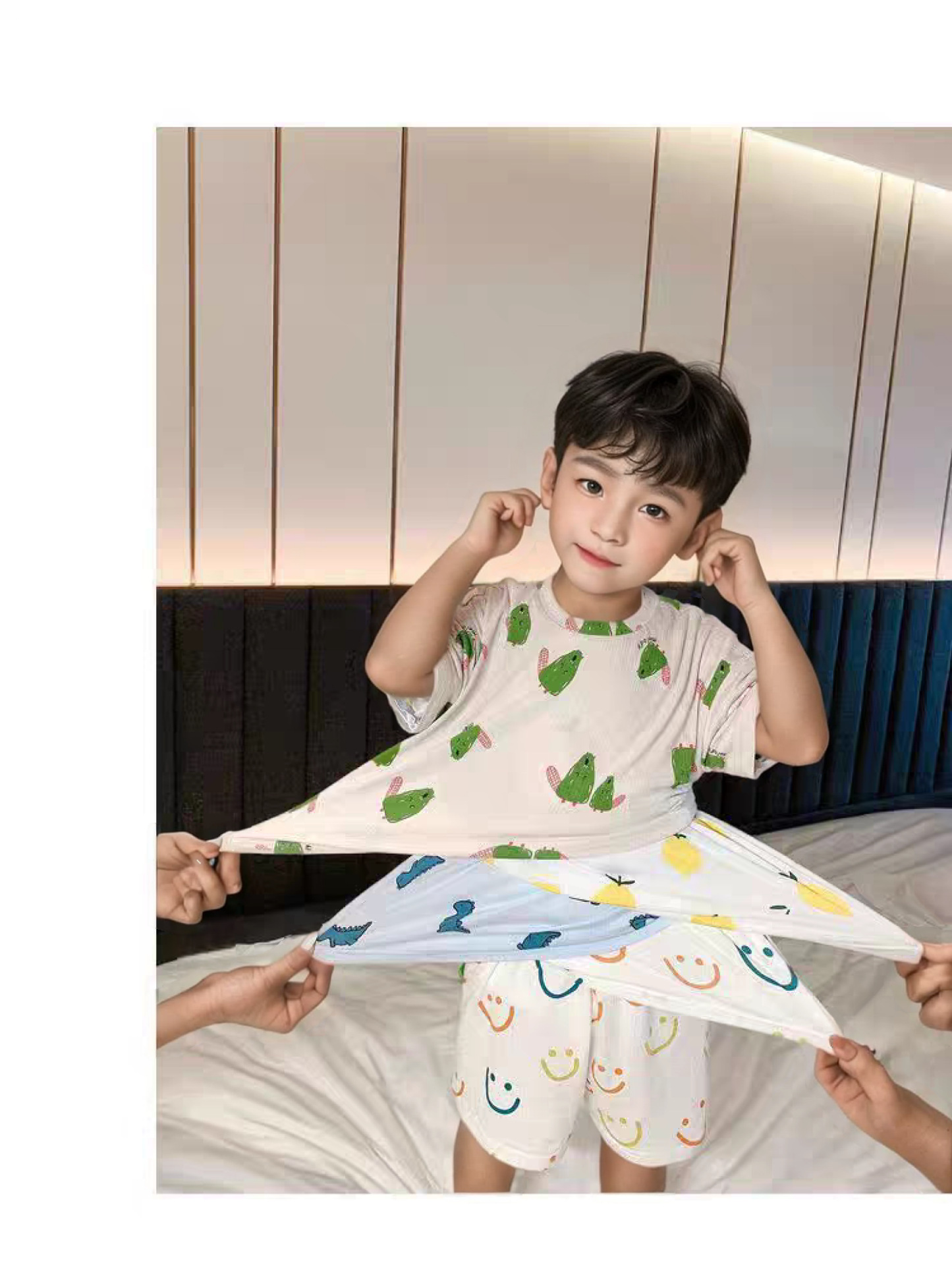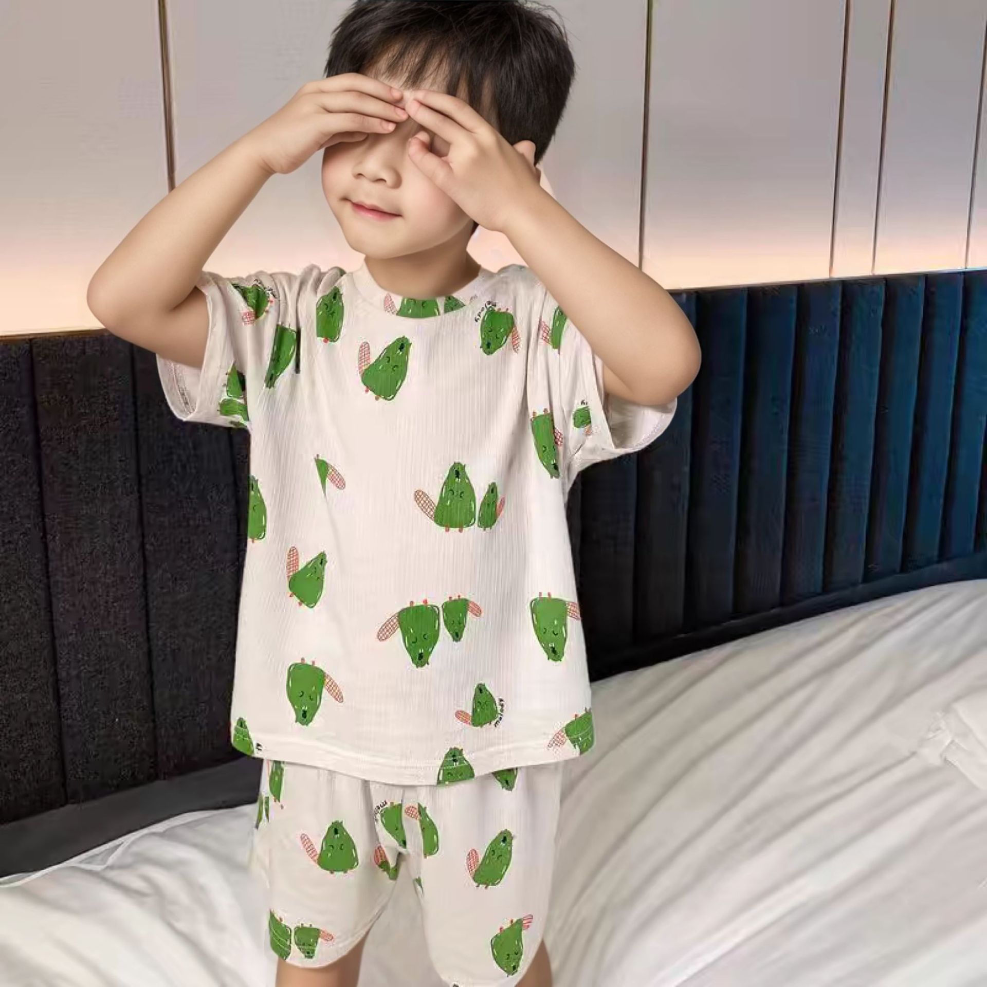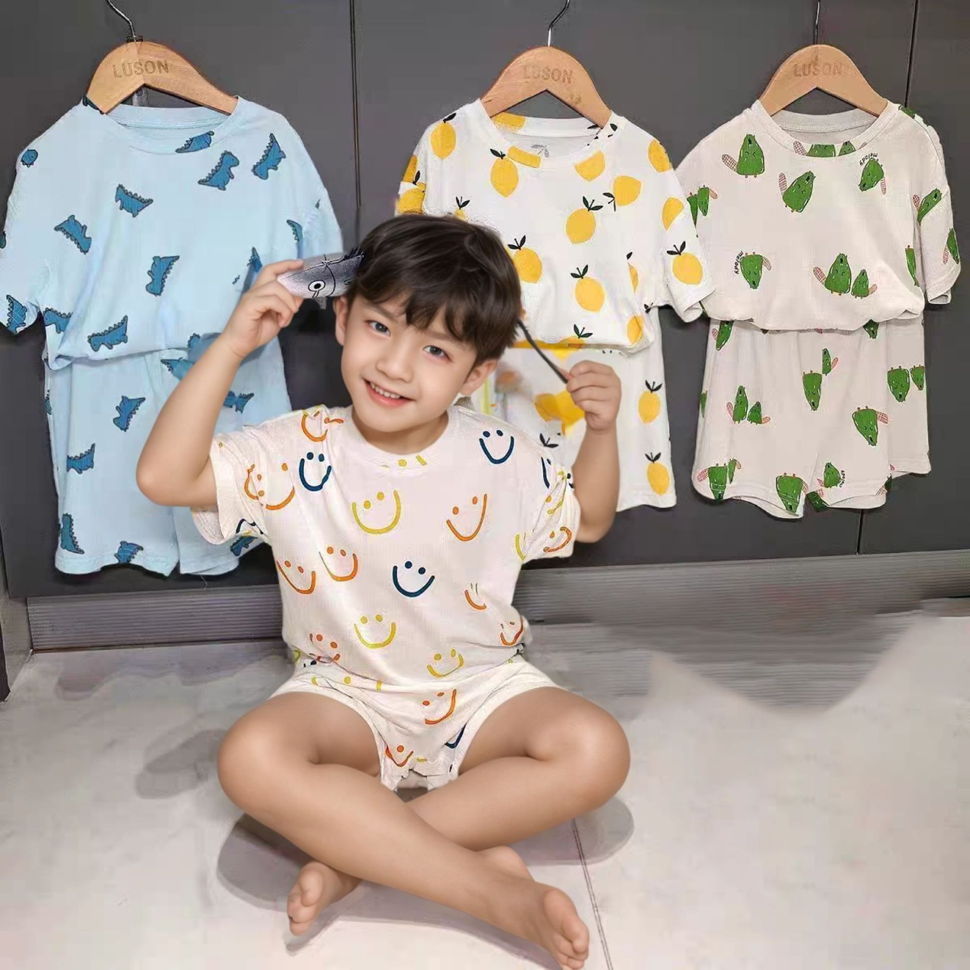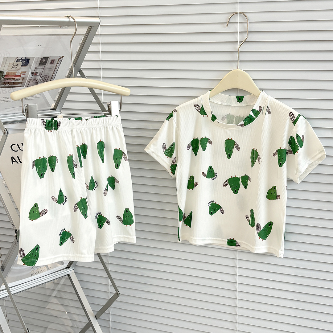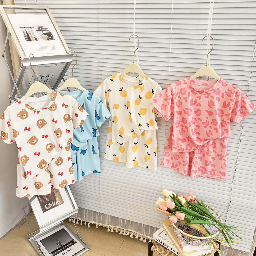 39.9任选2套【儿童夏季冰丝套装】儿童短袖短裤睡衣套装夏季冰丝卡通家居服宝弹力冰感空调服#异业福利