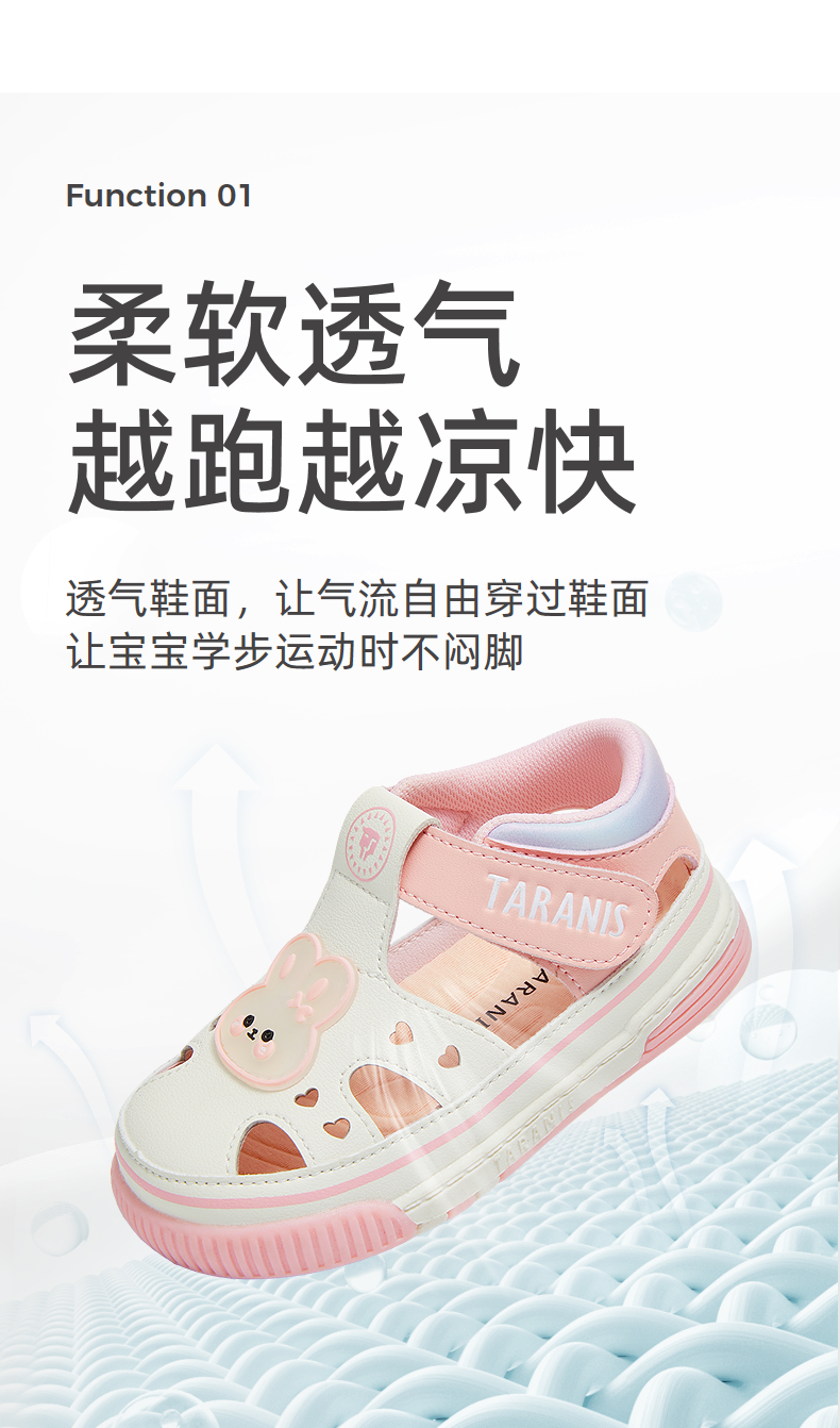 泰兰尼斯218夏季新款童鞋学步鞋男宝宝防踢沙滩凉鞋女童透气鞋子 T07T5B5785