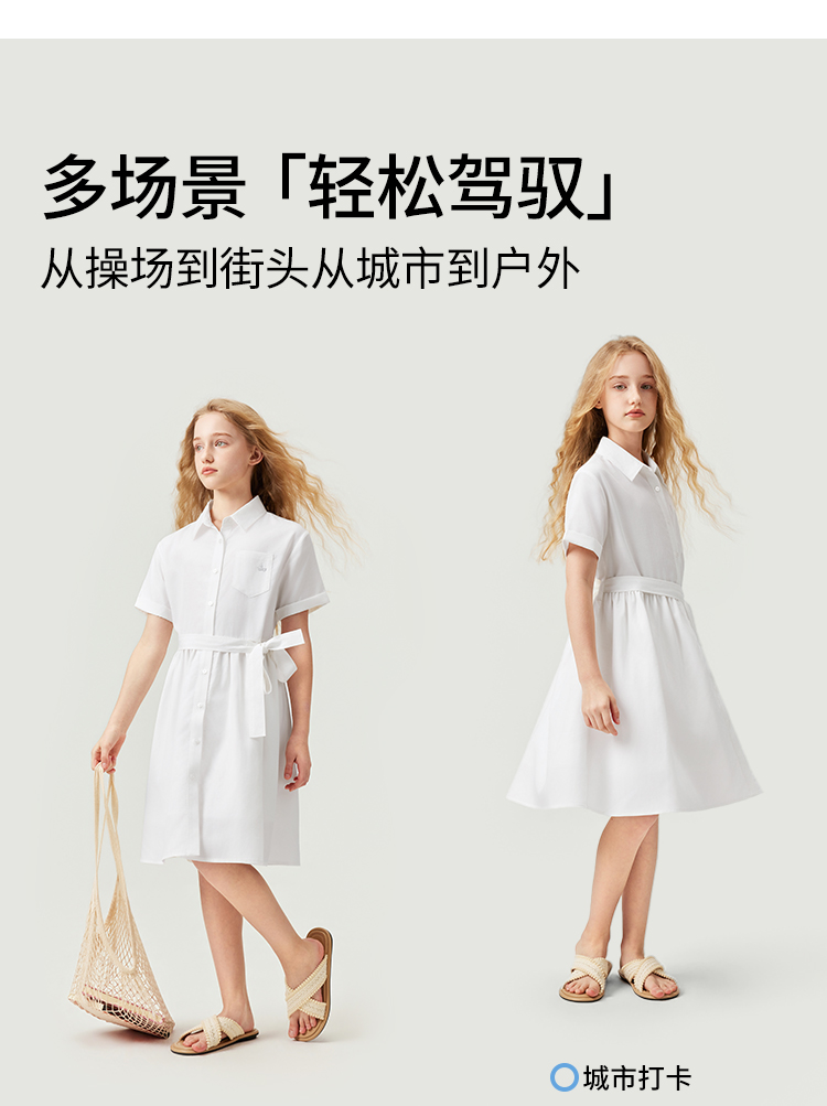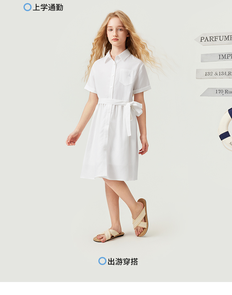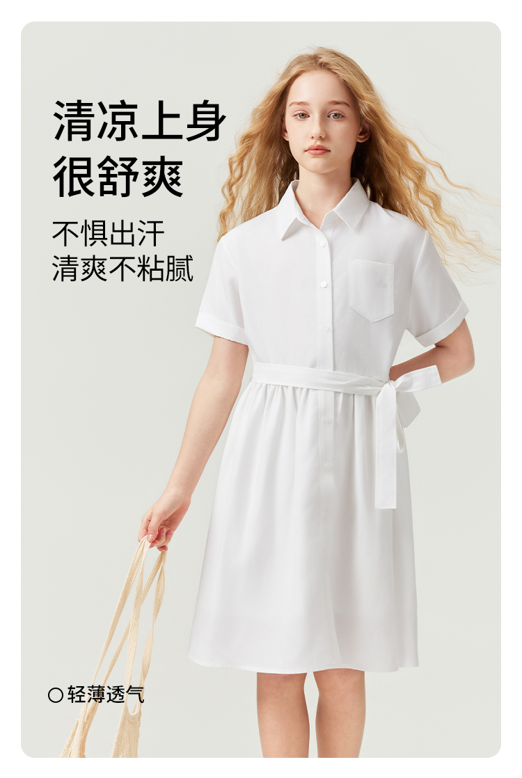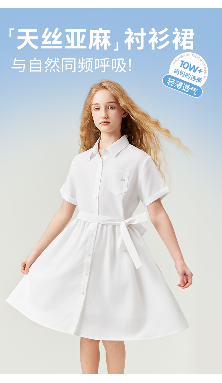 【120-165】【天丝亚麻】【纳维凯尔】女童夏季天丝衬衣连衣裙