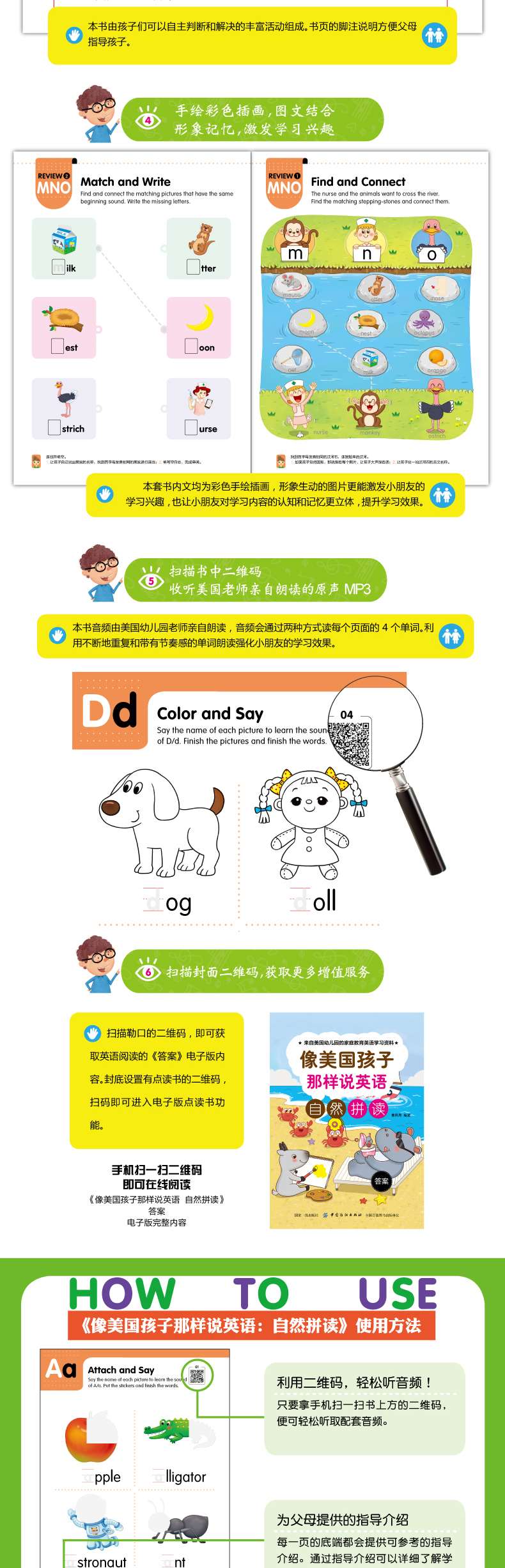 赠音频 自然拼读 幼儿英语启蒙教材 像美国孩子那样说英语3-6岁儿童幼儿园小中大班学英语的书少儿英语自然拼读法 phonics教材丽声