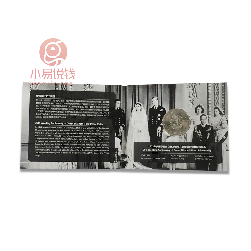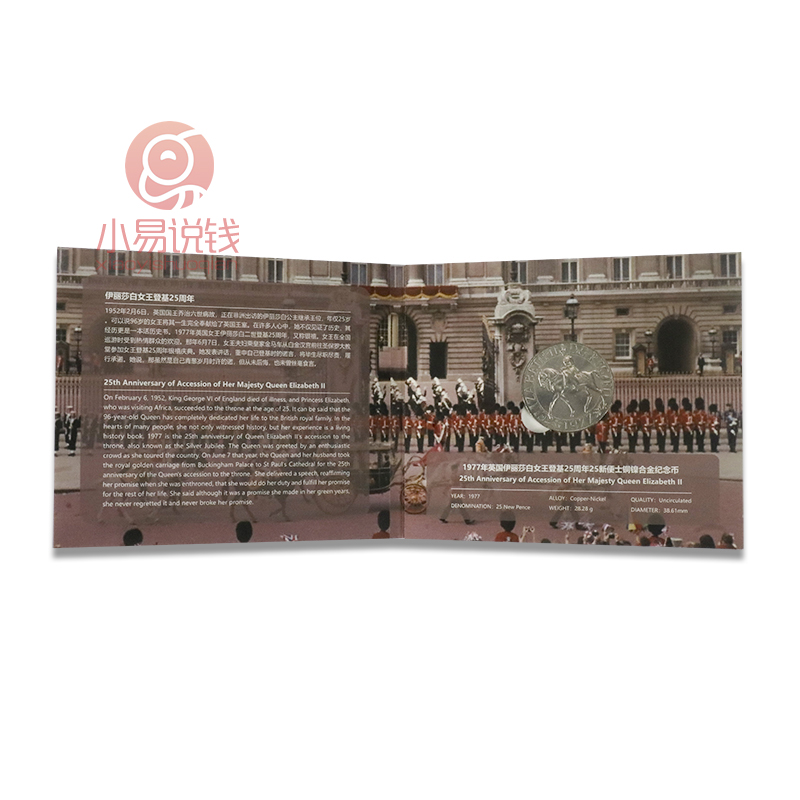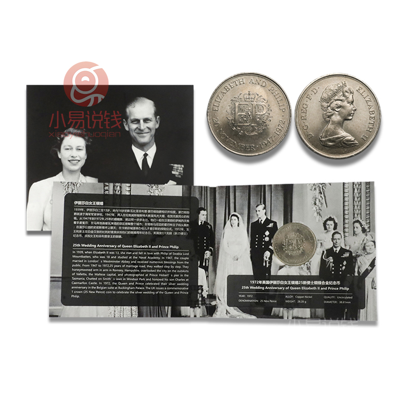 本链接上架为:女王登基25周年纪念币和女王结婚25周年纪念币,克朗型,这也是英国少有的币面无面值(实际面额为25便士)的纪念币,意义非凡!
