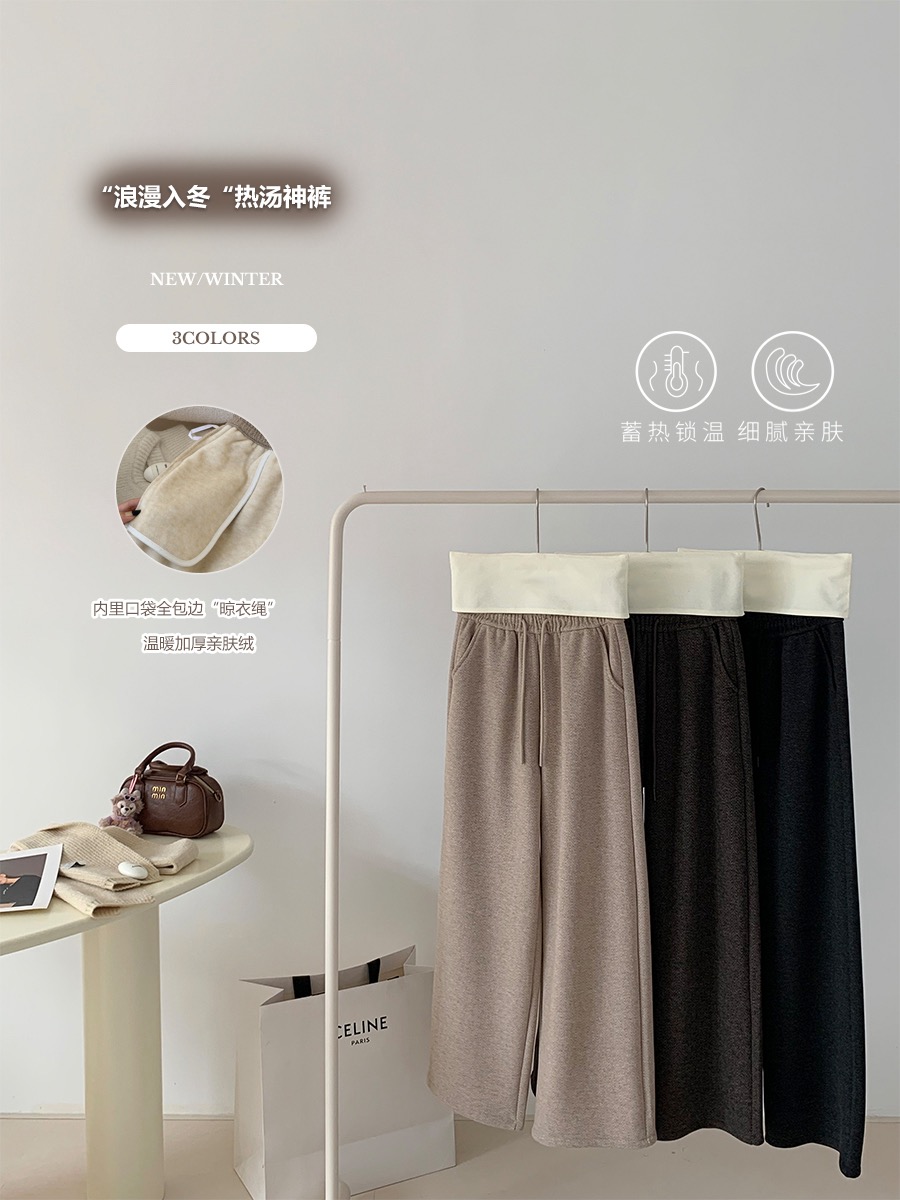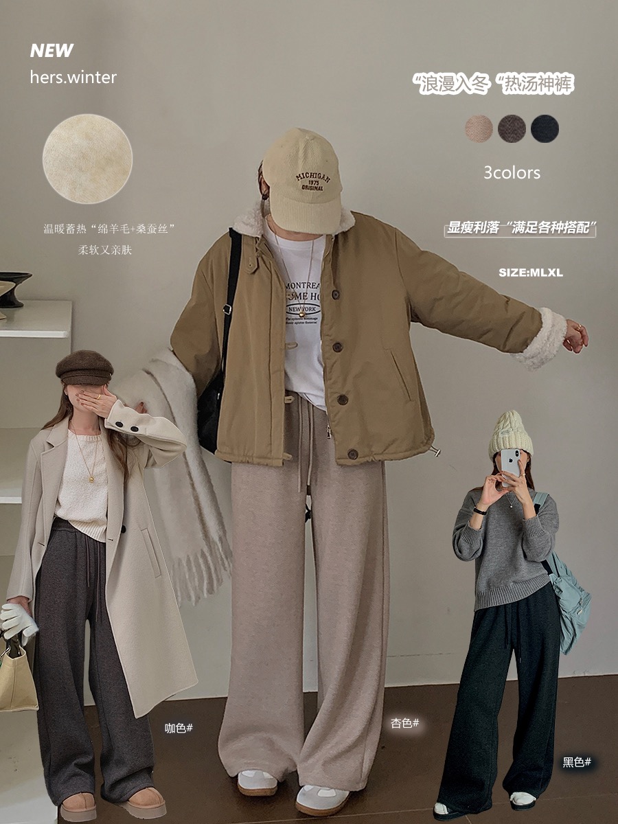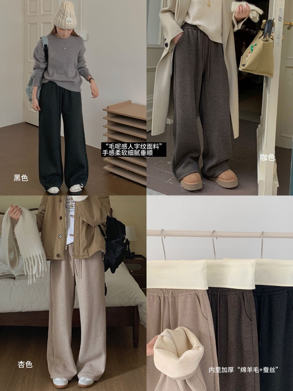 老米群专享秒杀!无退换🎈🎈🎈5分钟内支付有效。 浪漫入冬,暖汤神裤!绵羊毛+桑蚕丝《加厚!慵懒温暖阔腿微拖地裤》文艺,复古,炒鸡有范儿的温暖穿搭~K241107A 蛐