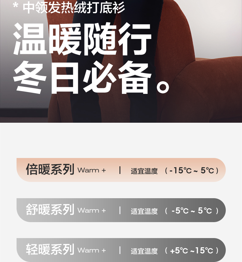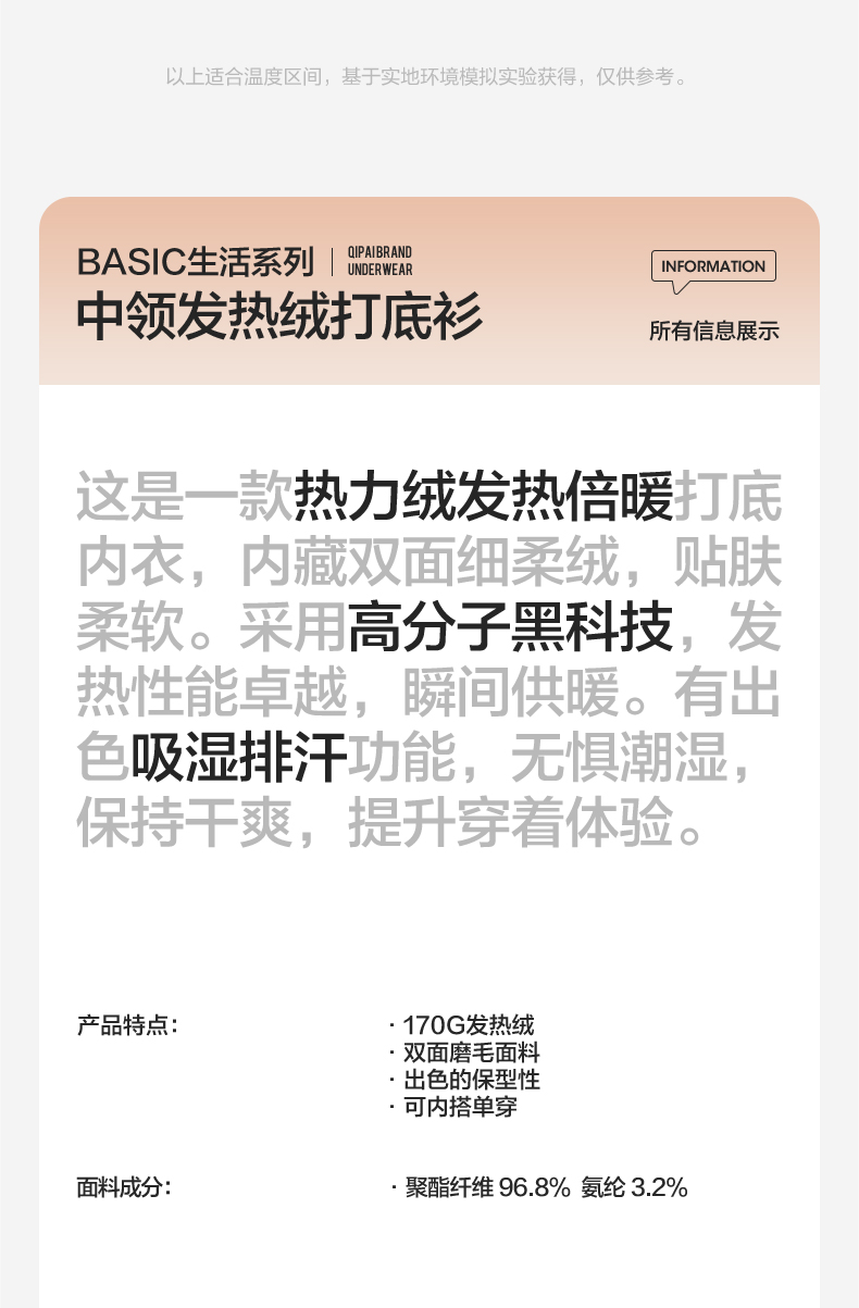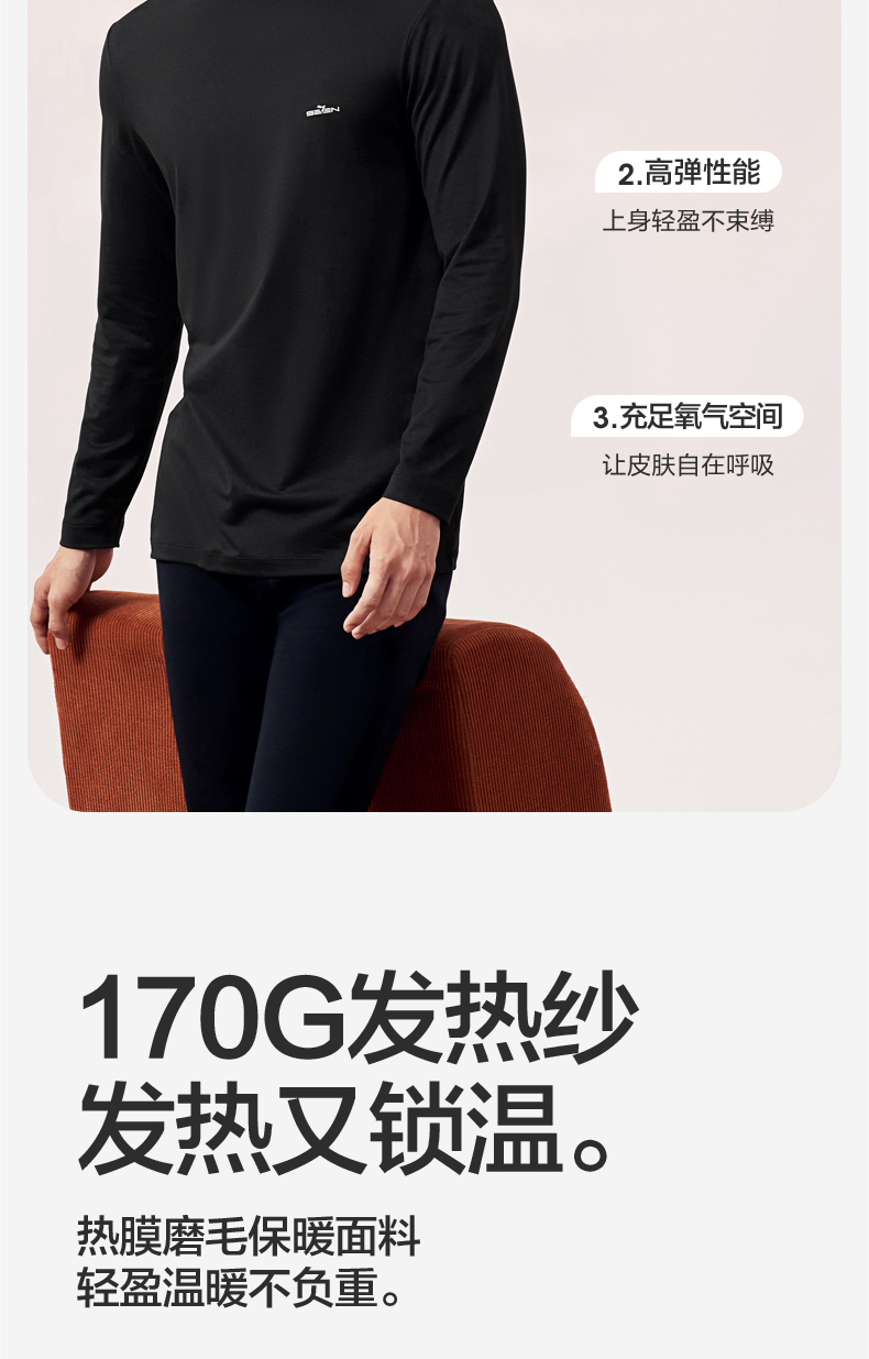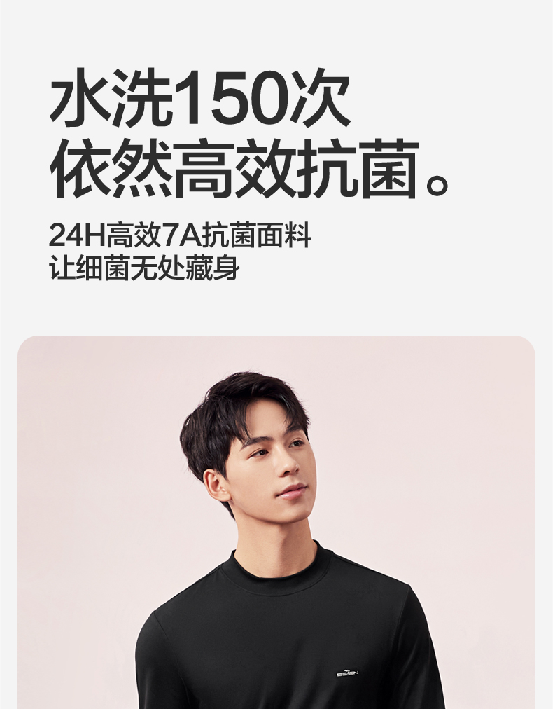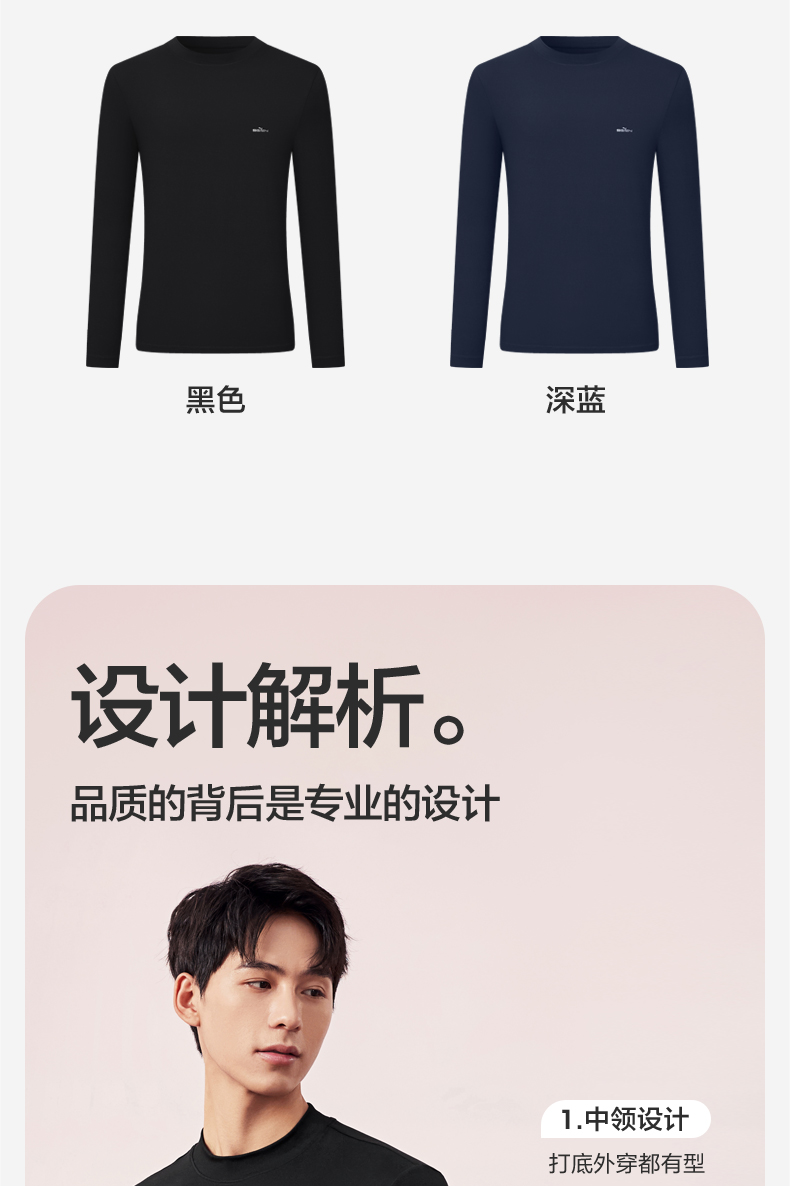 柒牌男装中领长袖保暖上衣抗菌防螨吸湿排汗远红外发热内衣打底衫129F70420