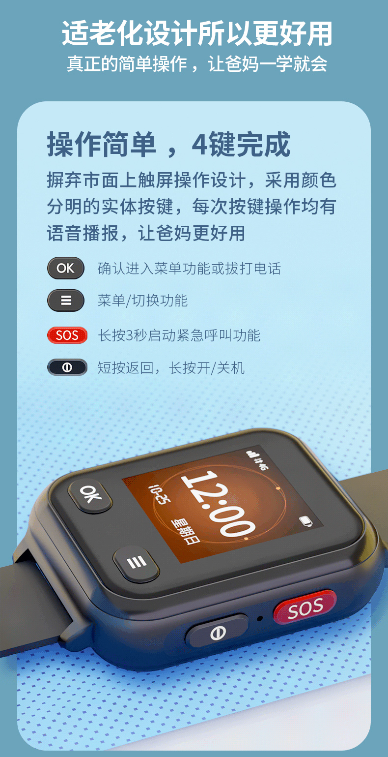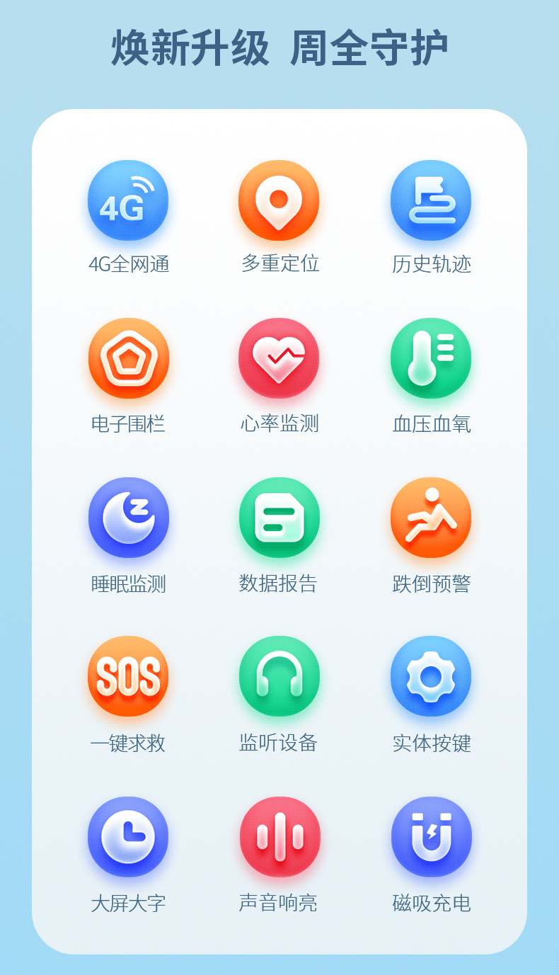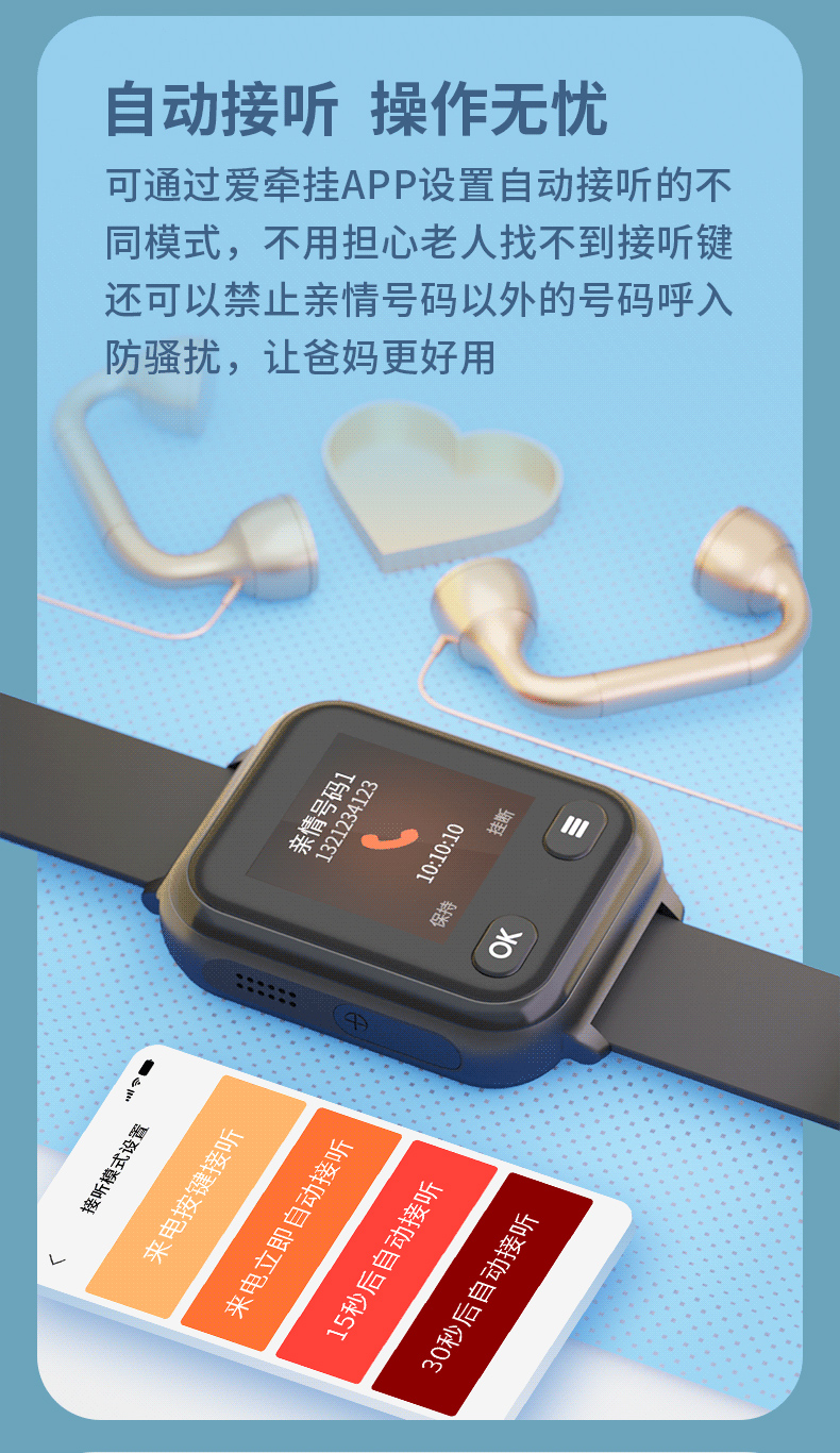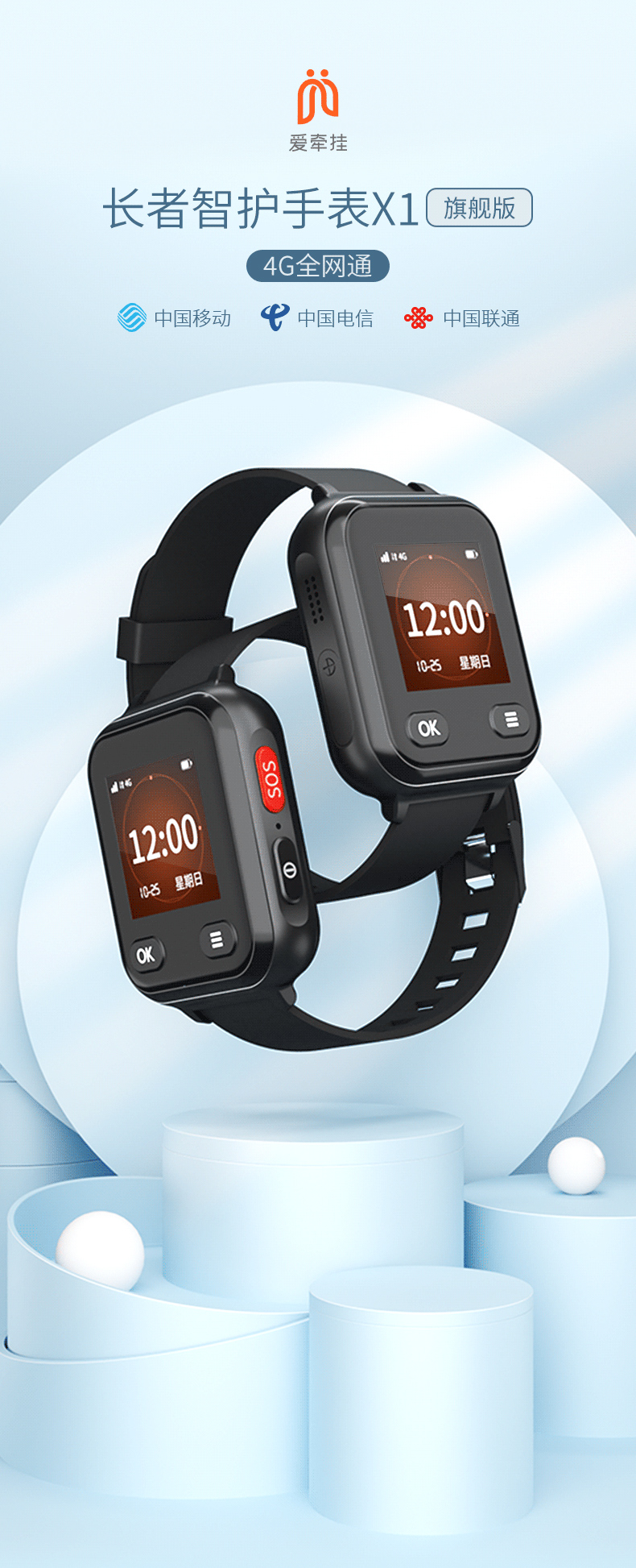 爱牵挂X1老人智能电话手表4G全网通视频通话远程心率血压健康监测SOS报警器痴呆防水防走丢专用手环