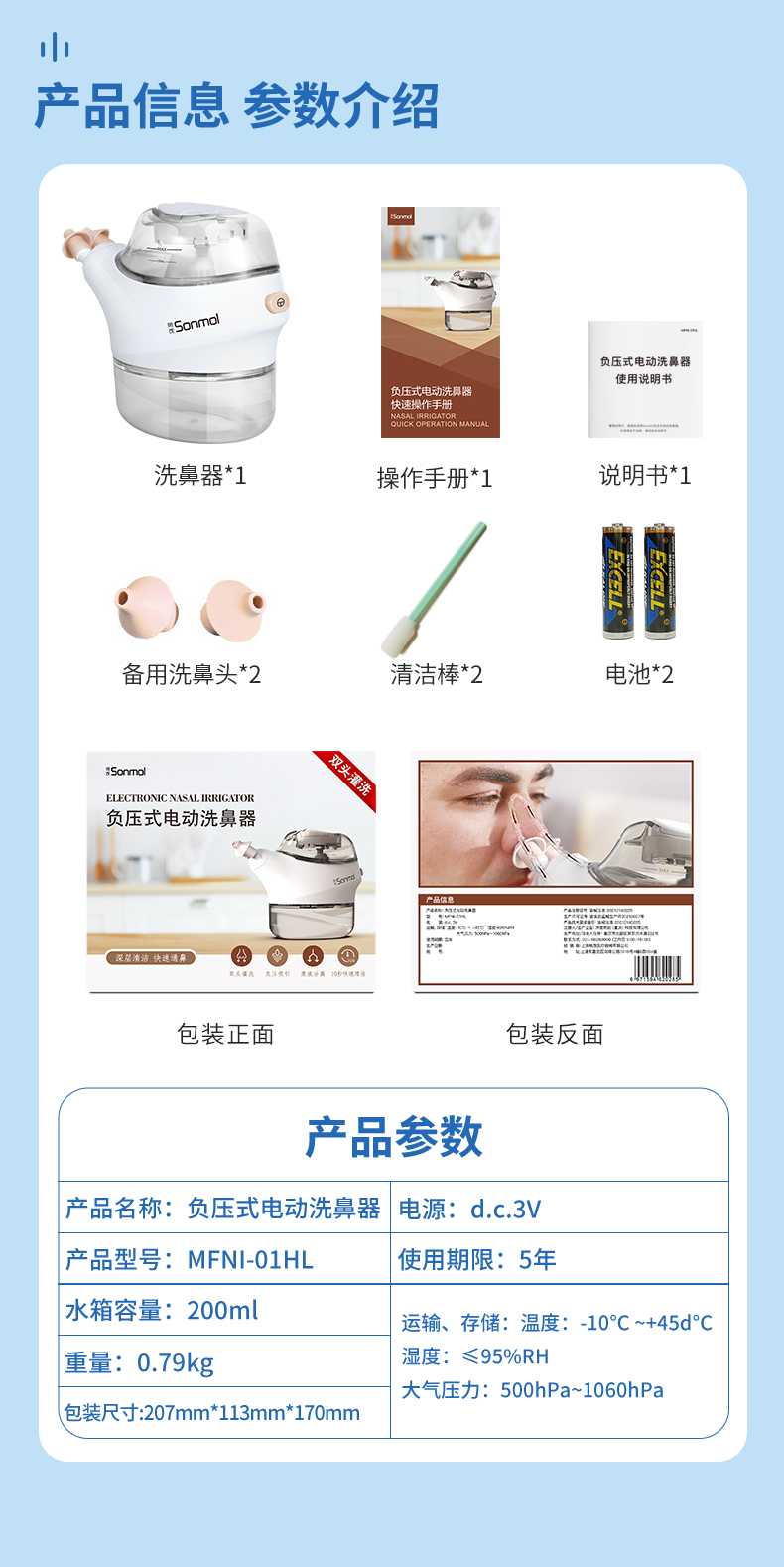 【换季好物】朔茂Sonmol 负压式洗鼻器电动洗鼻器 家用鼻腔冲洗器 双头灌洗 成人鼻炎