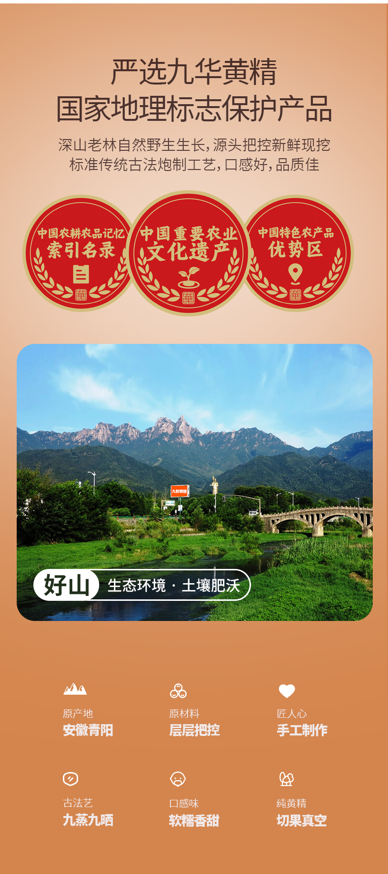 地标产品【九华禧】九制黄精果 九蒸九晒 古法非遗技艺 42道工序 只取中间段