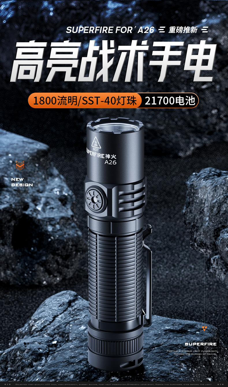 神火A26手电筒高亮长续航可充电远射迷小便携户外照明装备