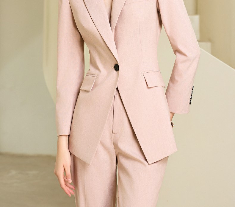IWY/高端粉色职业西服套裤女主持人上镜简约套裤气质显白工作服233008CP1
