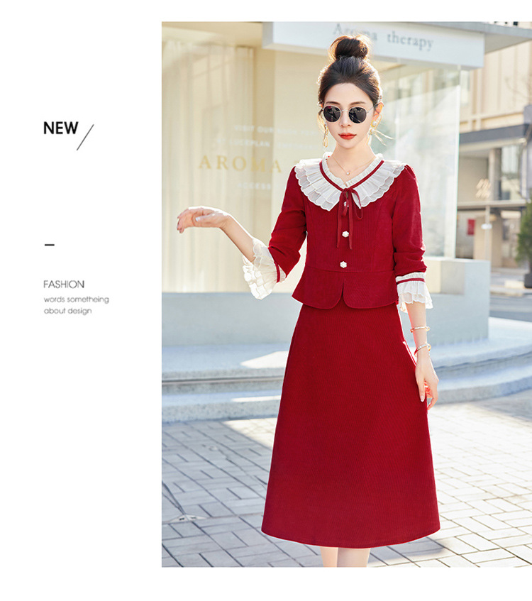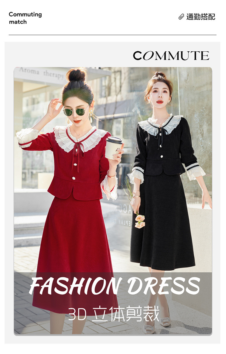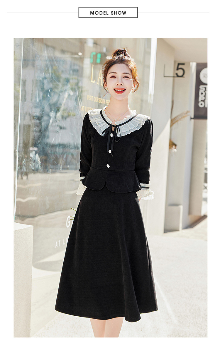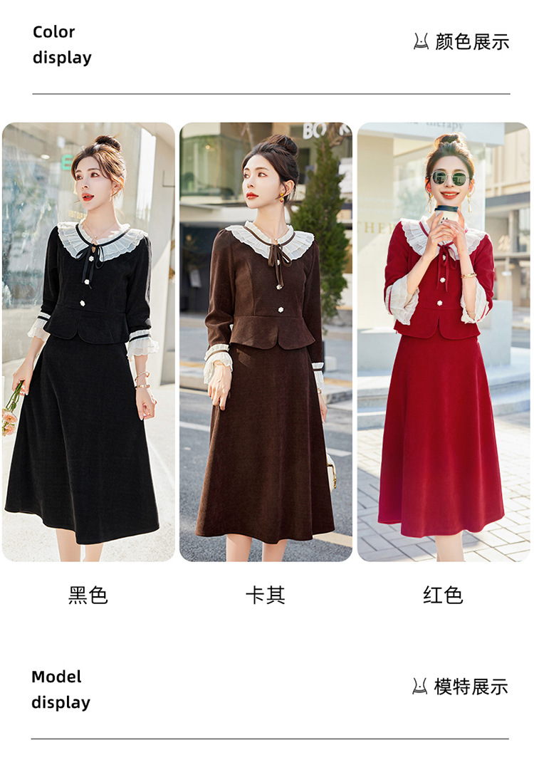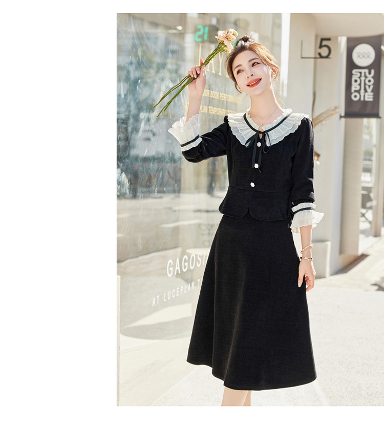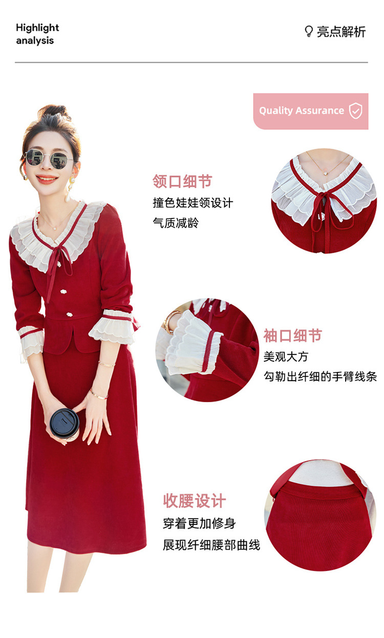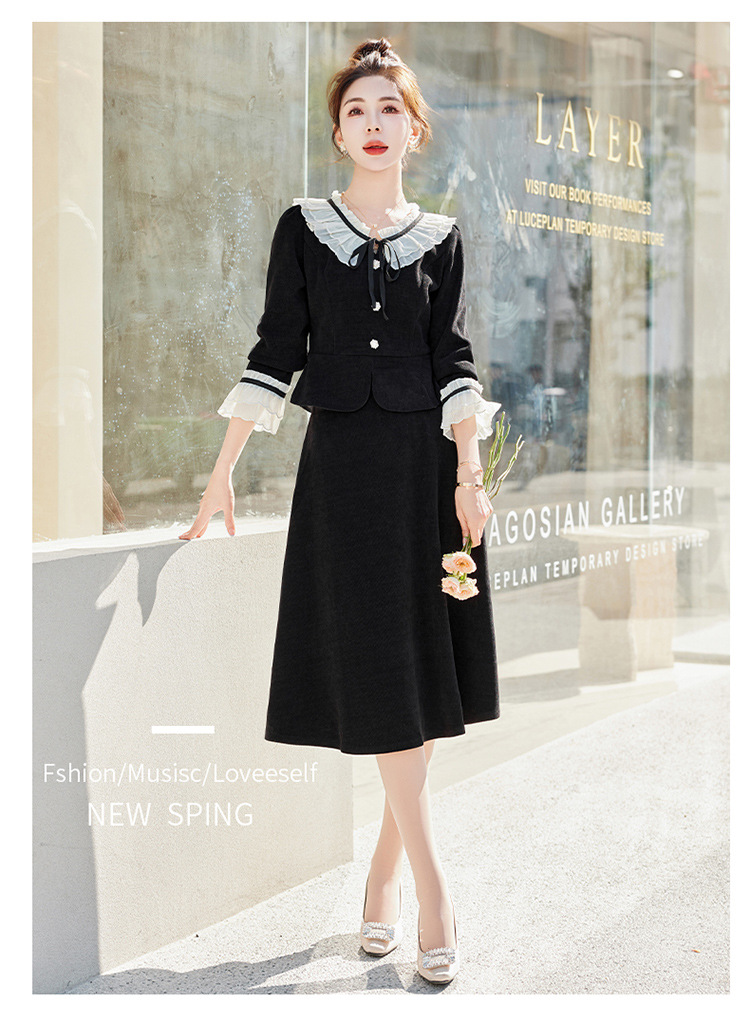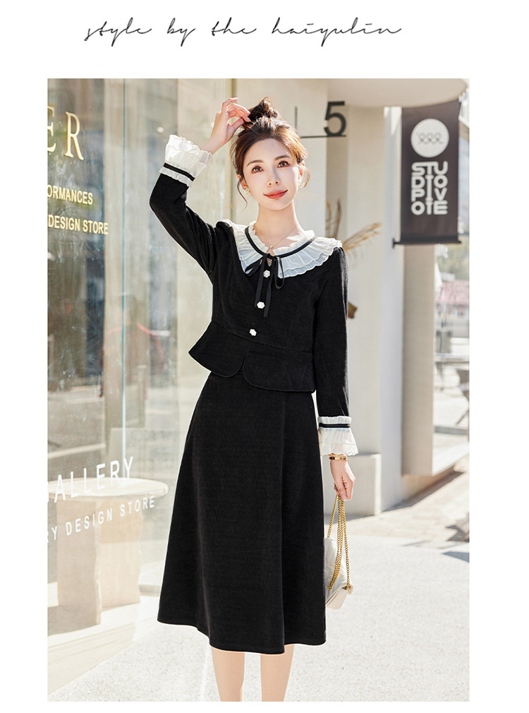 2024年春季上新韩版气质时尚小清新拼接撞色高腰A裙两件套HR-HYYF6873