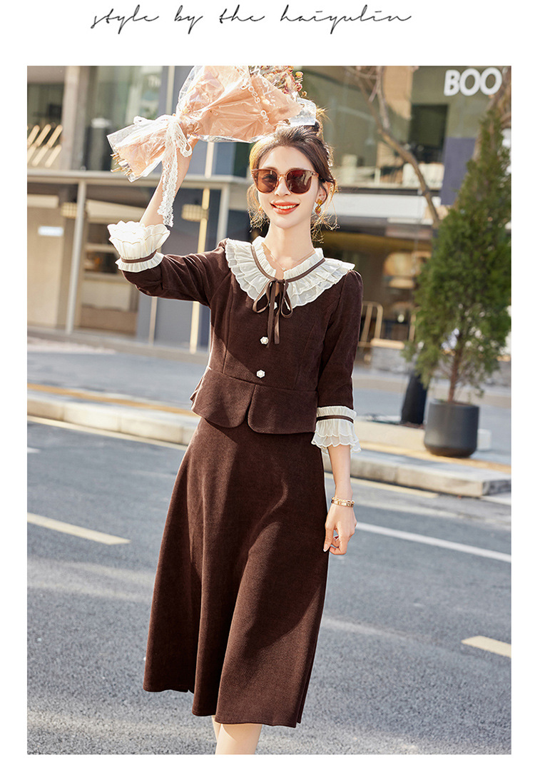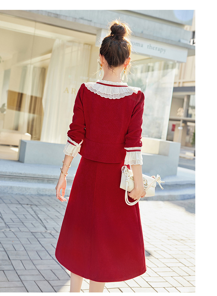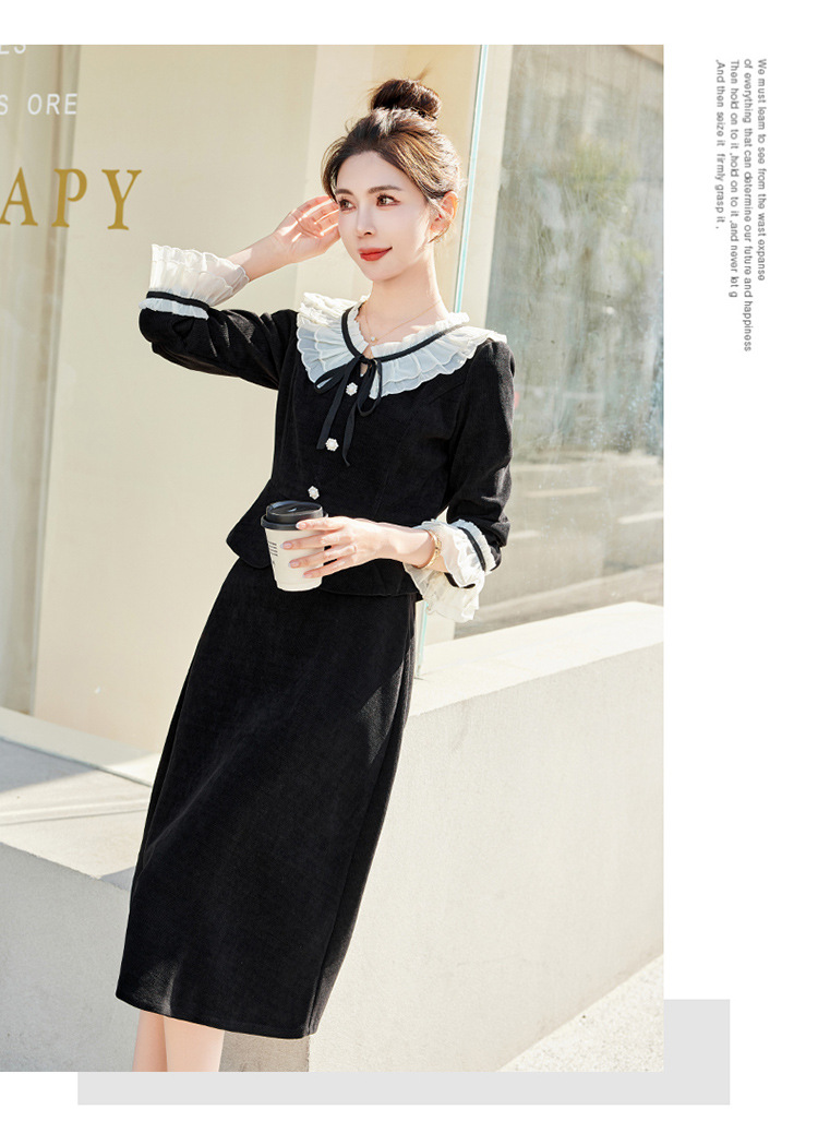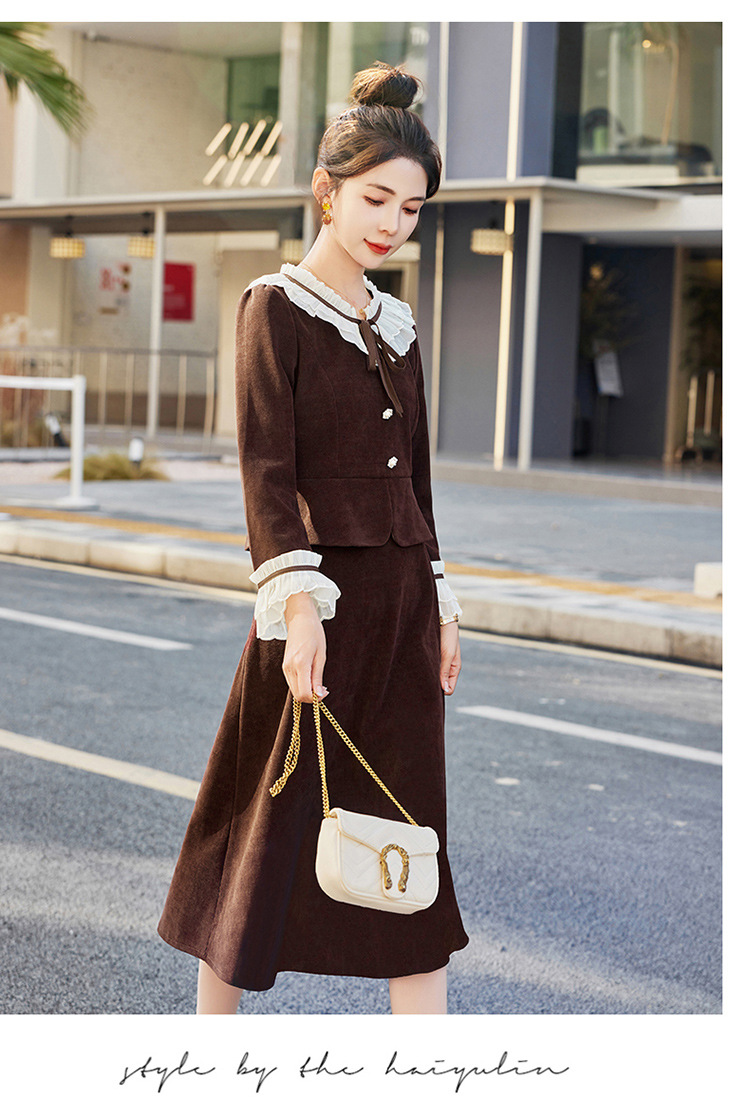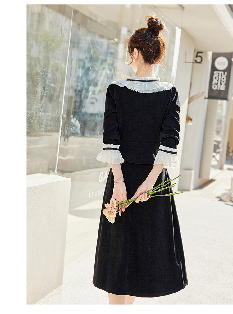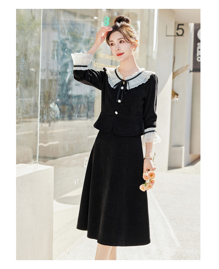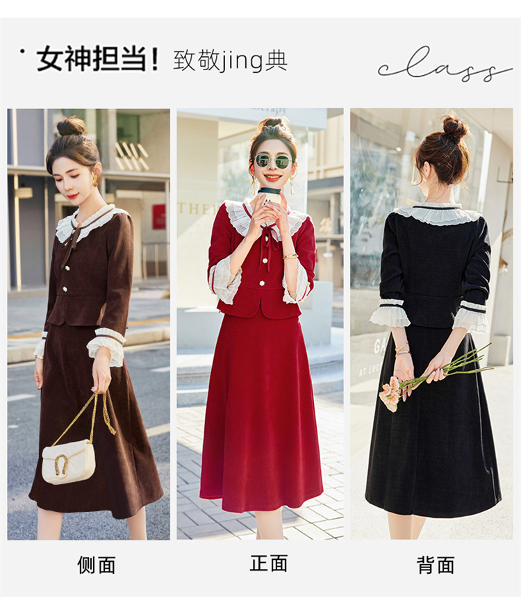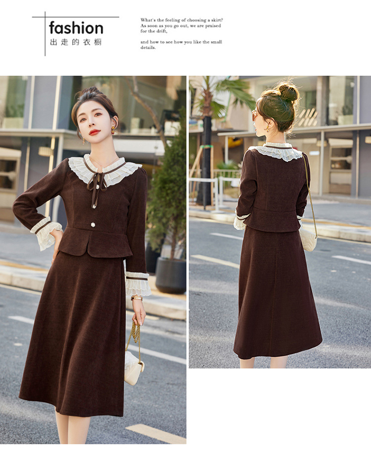 2024年春季上新韩版气质时尚小清新拼接撞色高腰A裙两件套HR-HYYF6873