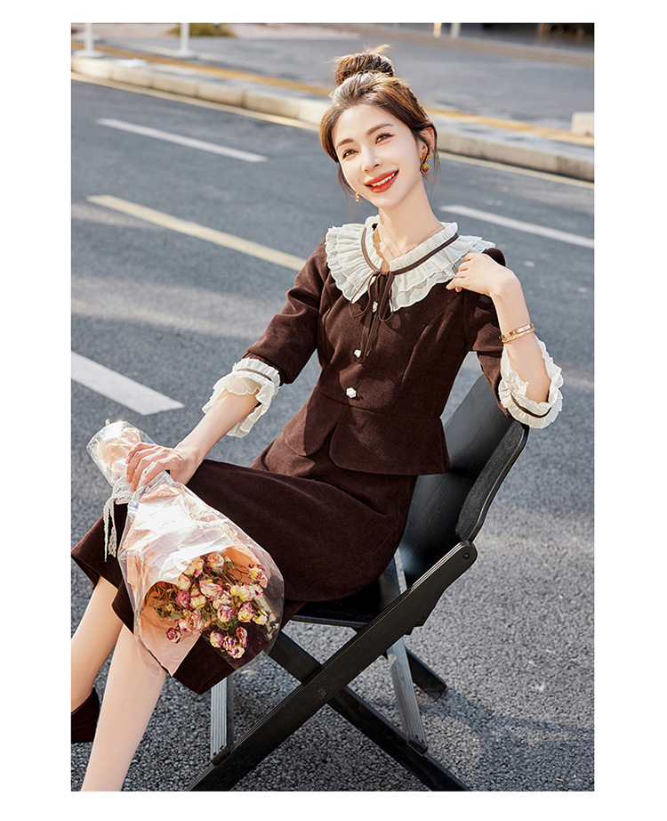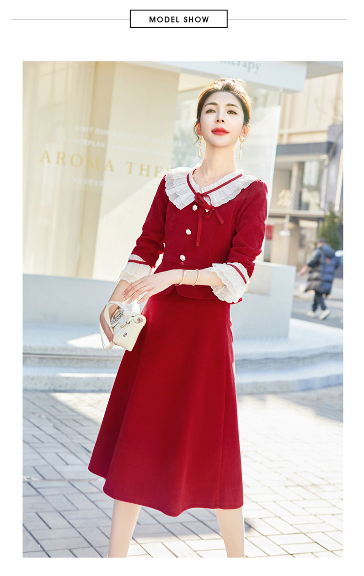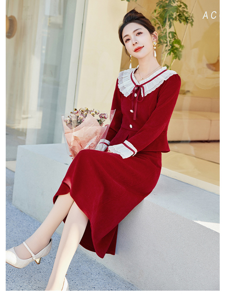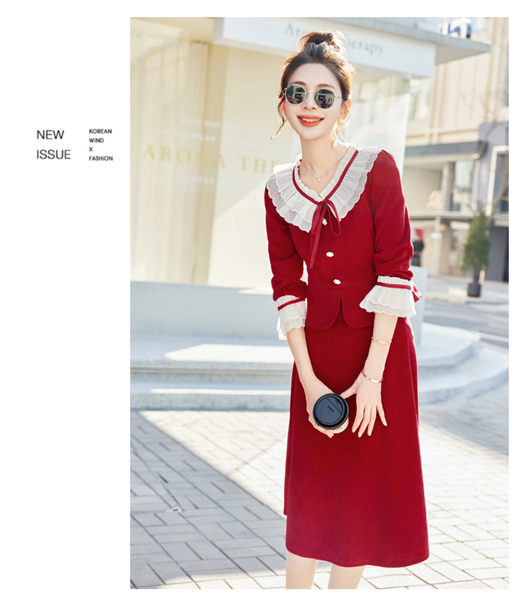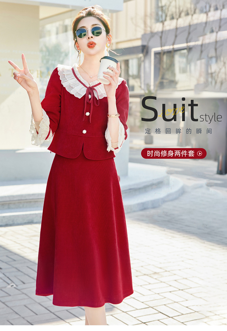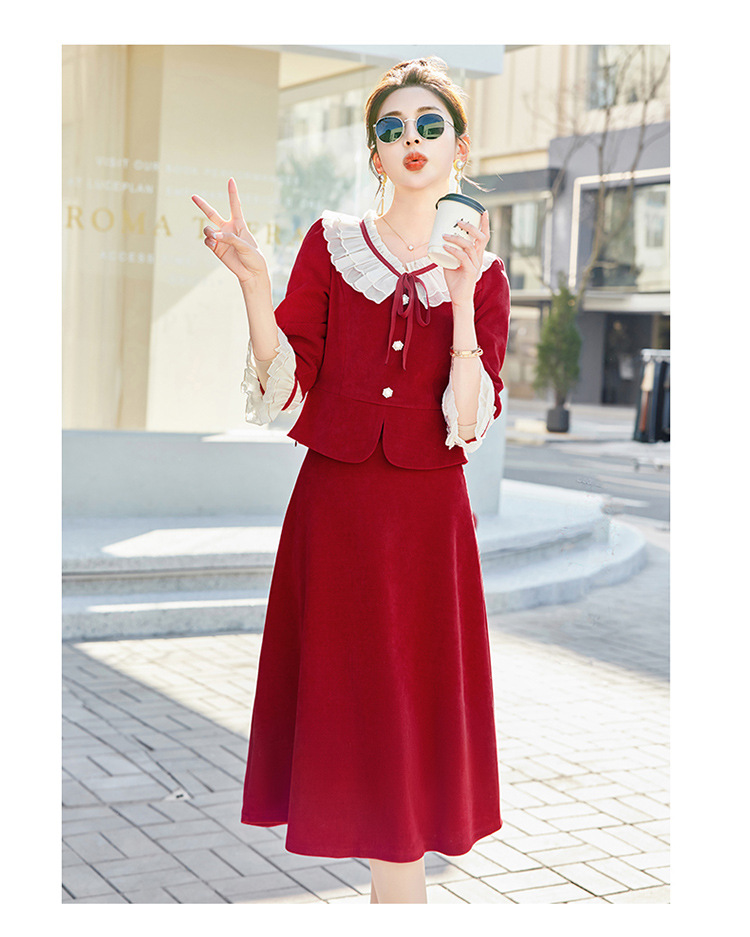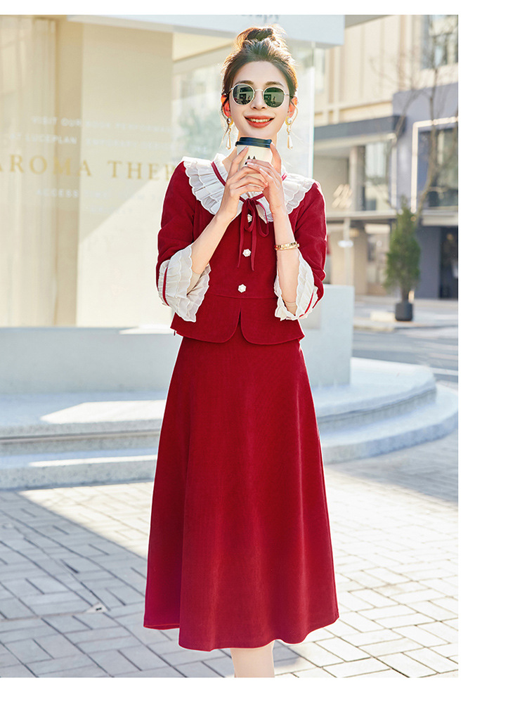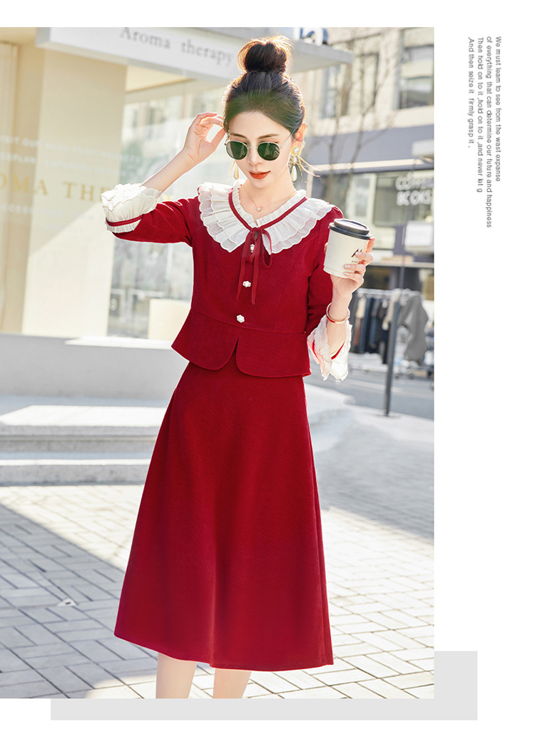 2024年春季上新韩版气质时尚小清新拼接撞色高腰A裙两件套HR-HYYF6873