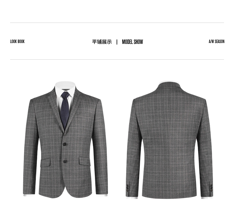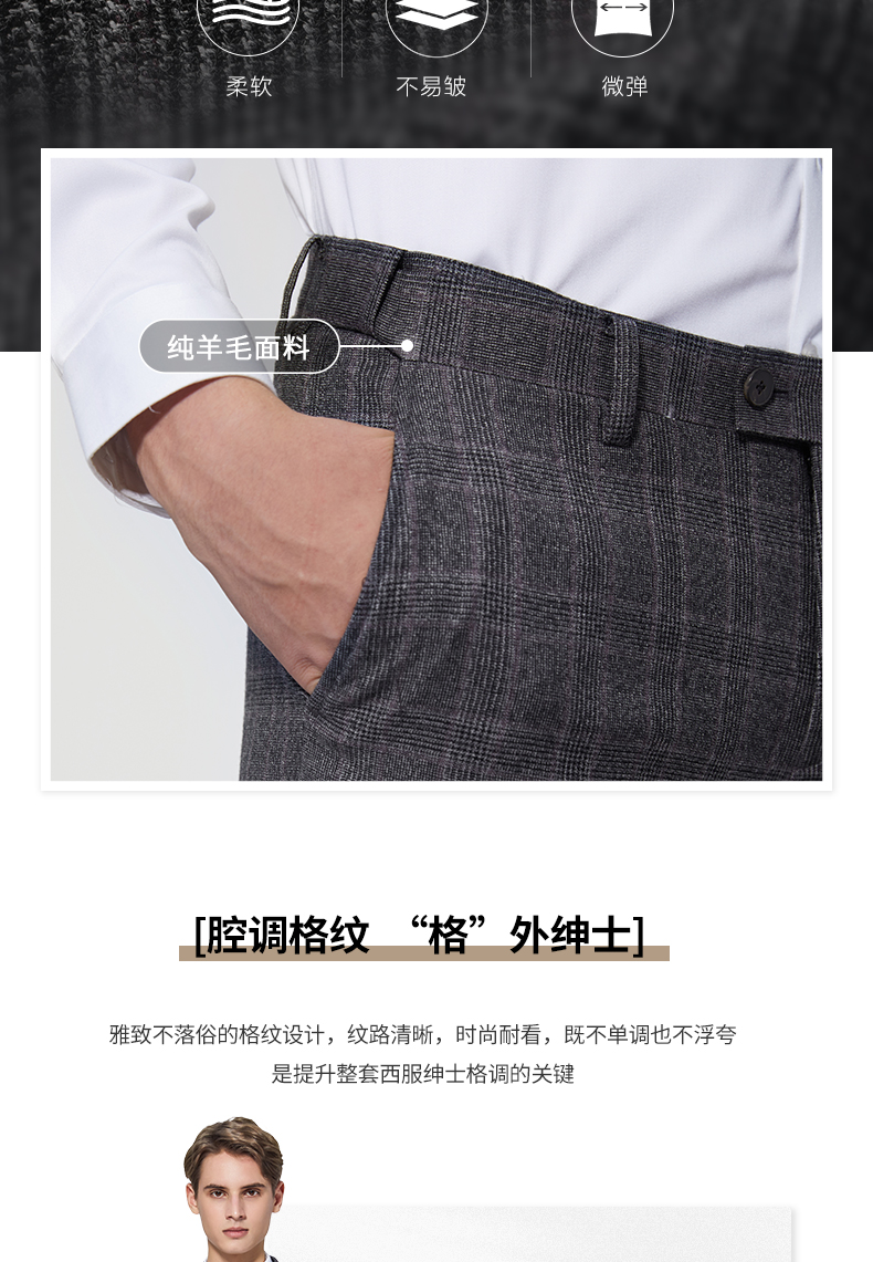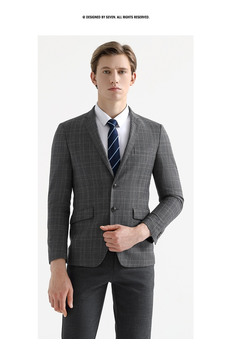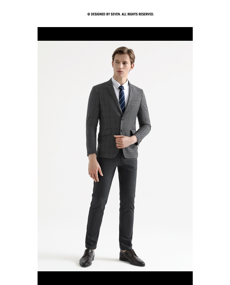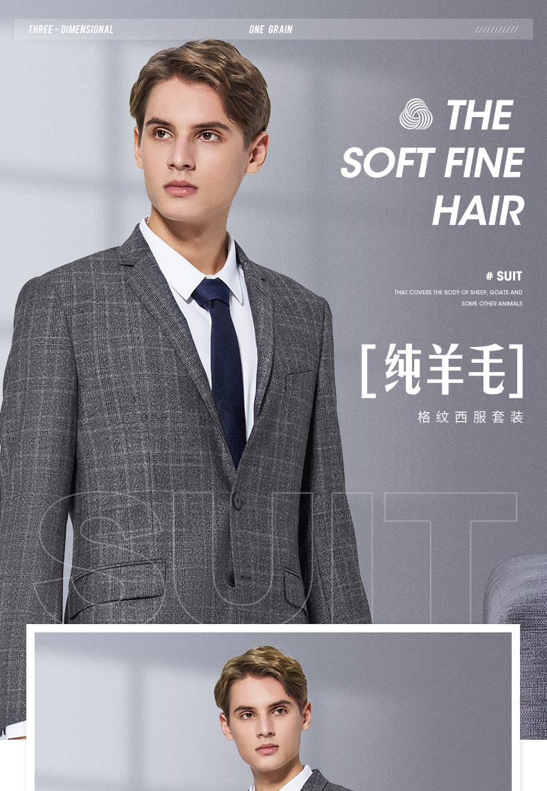 【特价】【纯羊毛】柒牌男装套西秋冬男士商务羊毛套西装英伦格纹西服 119C73140