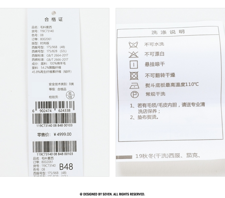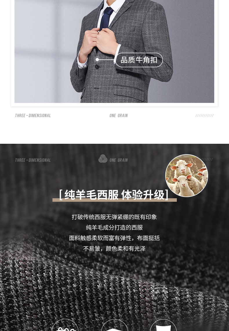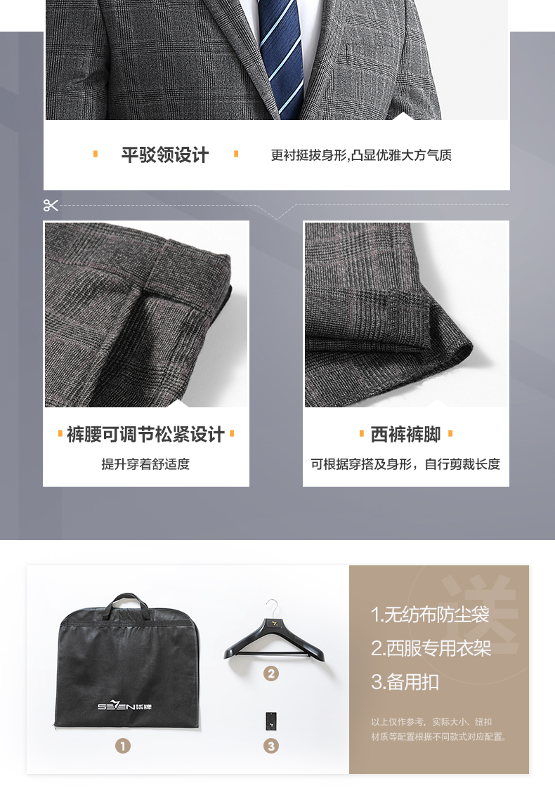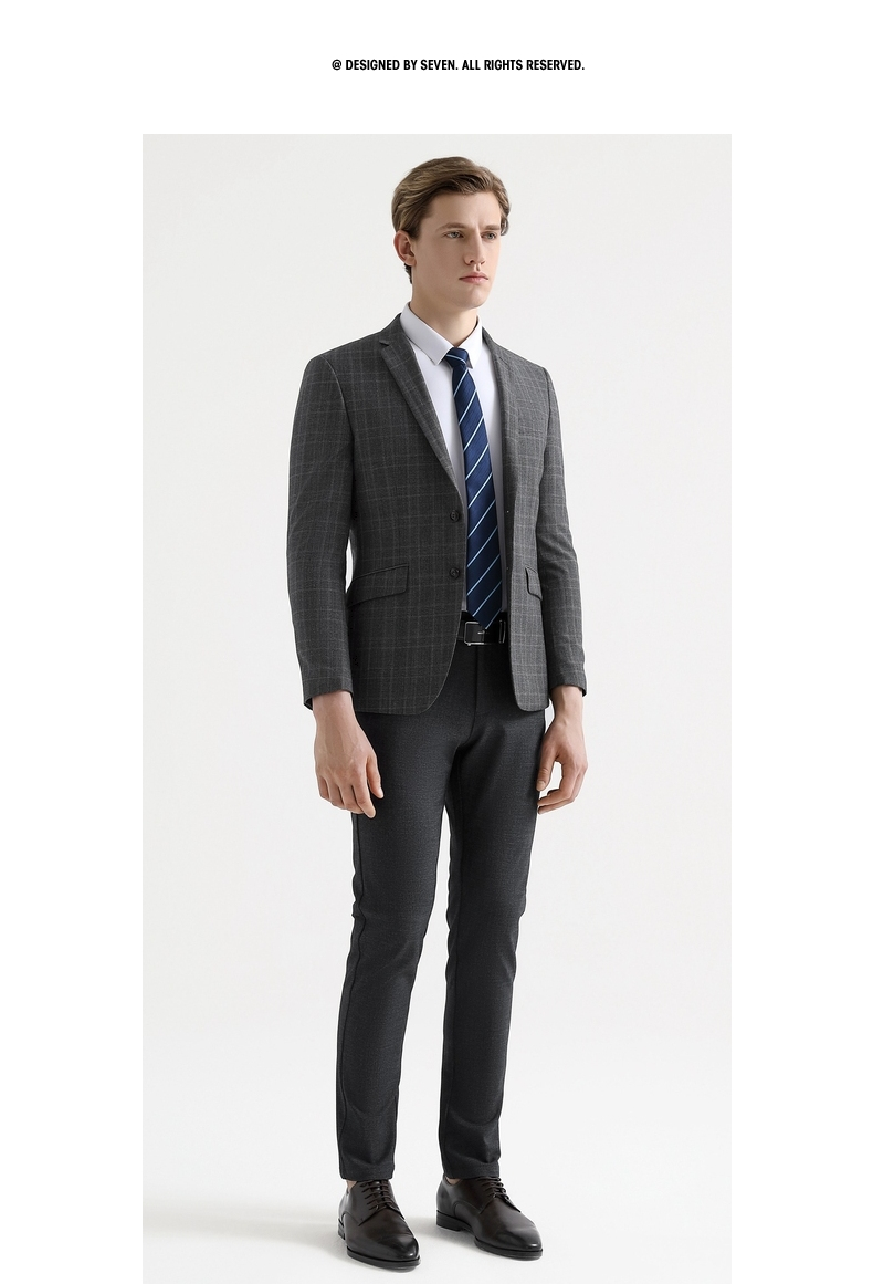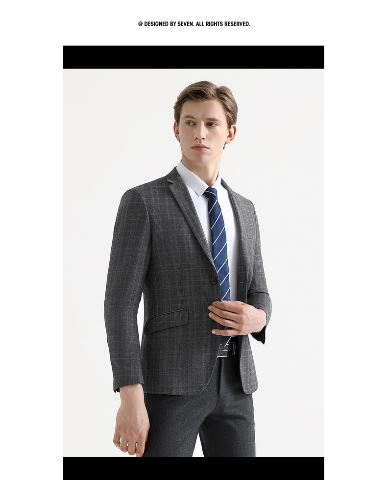 【特价】【纯羊毛】柒牌男装套西秋冬男士商务羊毛套西装英伦格纹西服 119C73140