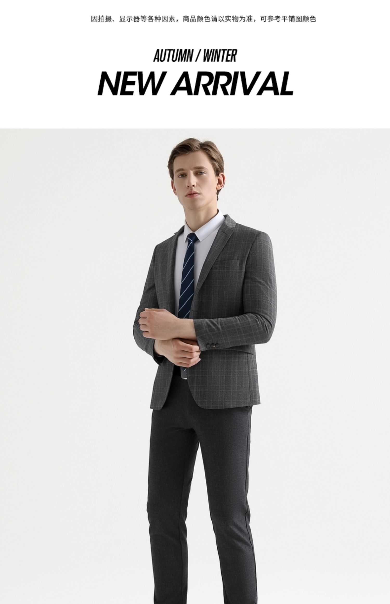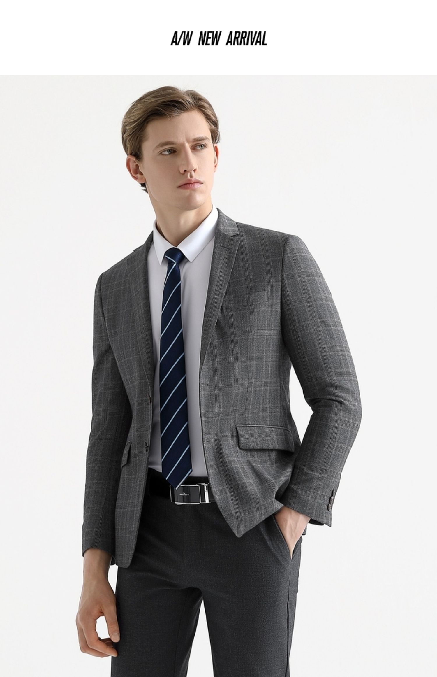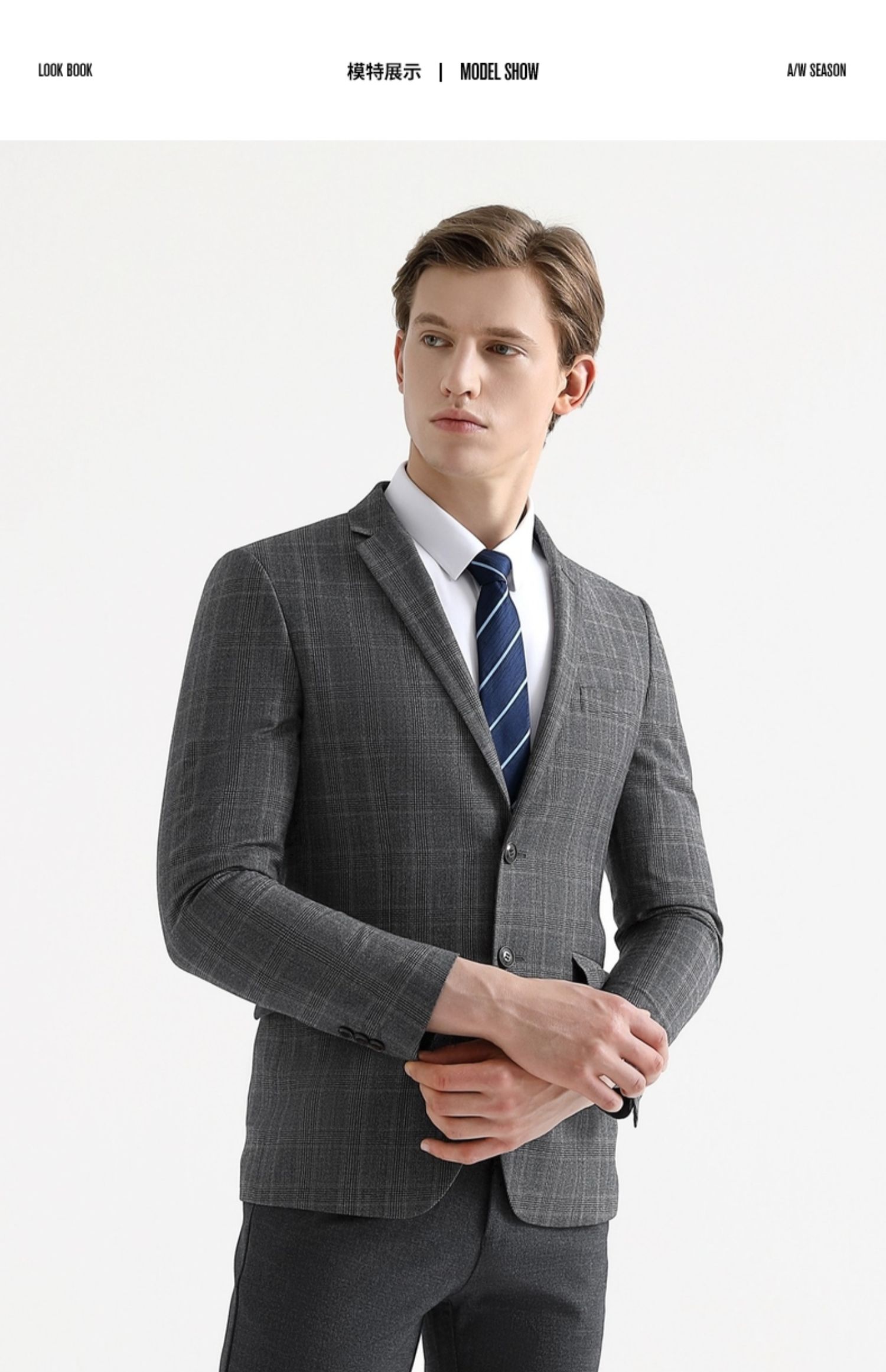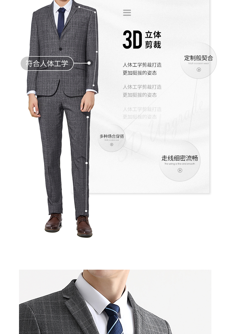 【特价】【纯羊毛】柒牌男装套西秋冬男士商务羊毛套西装英伦格纹西服 119C73140