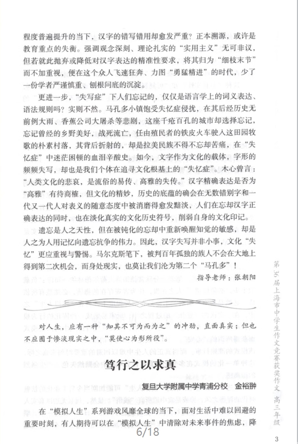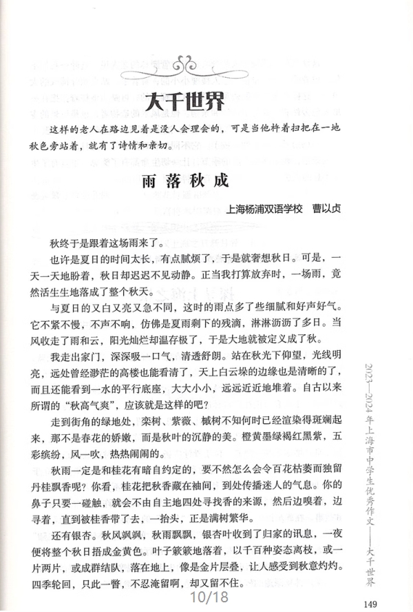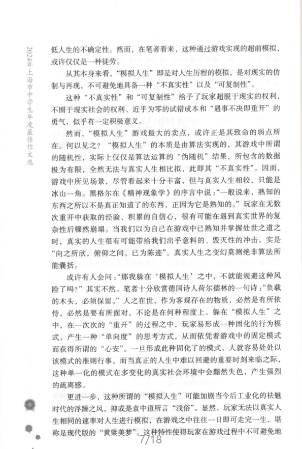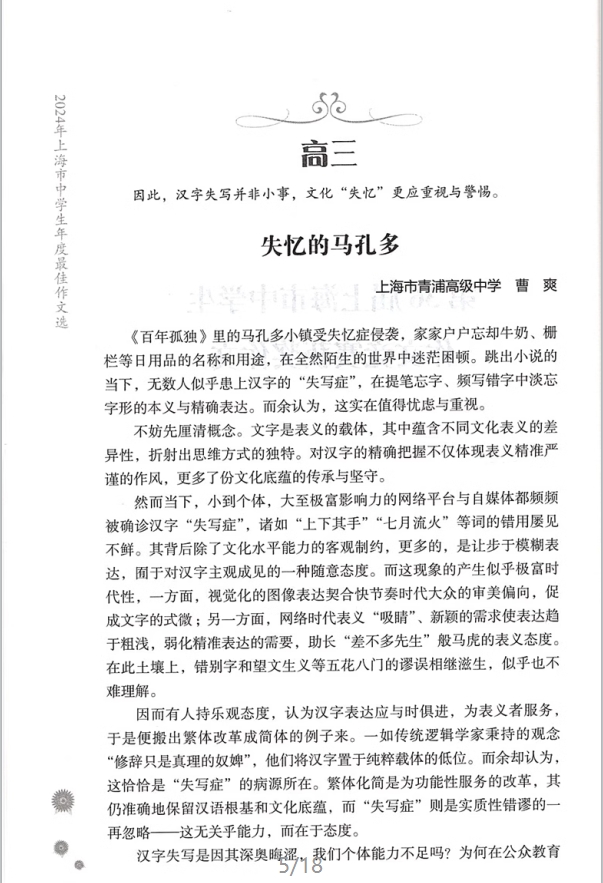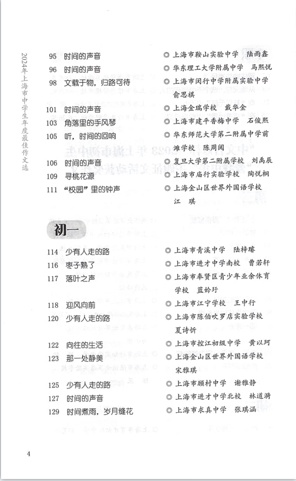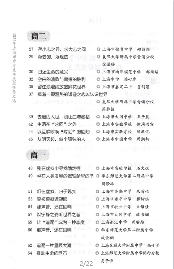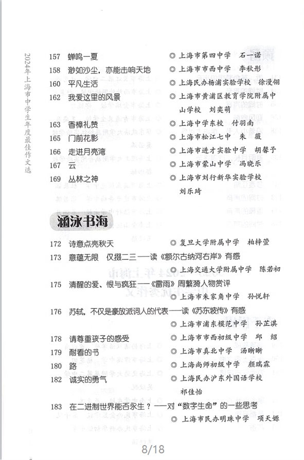 2024年上海市中学生年度最佳作文选 文汇出版社