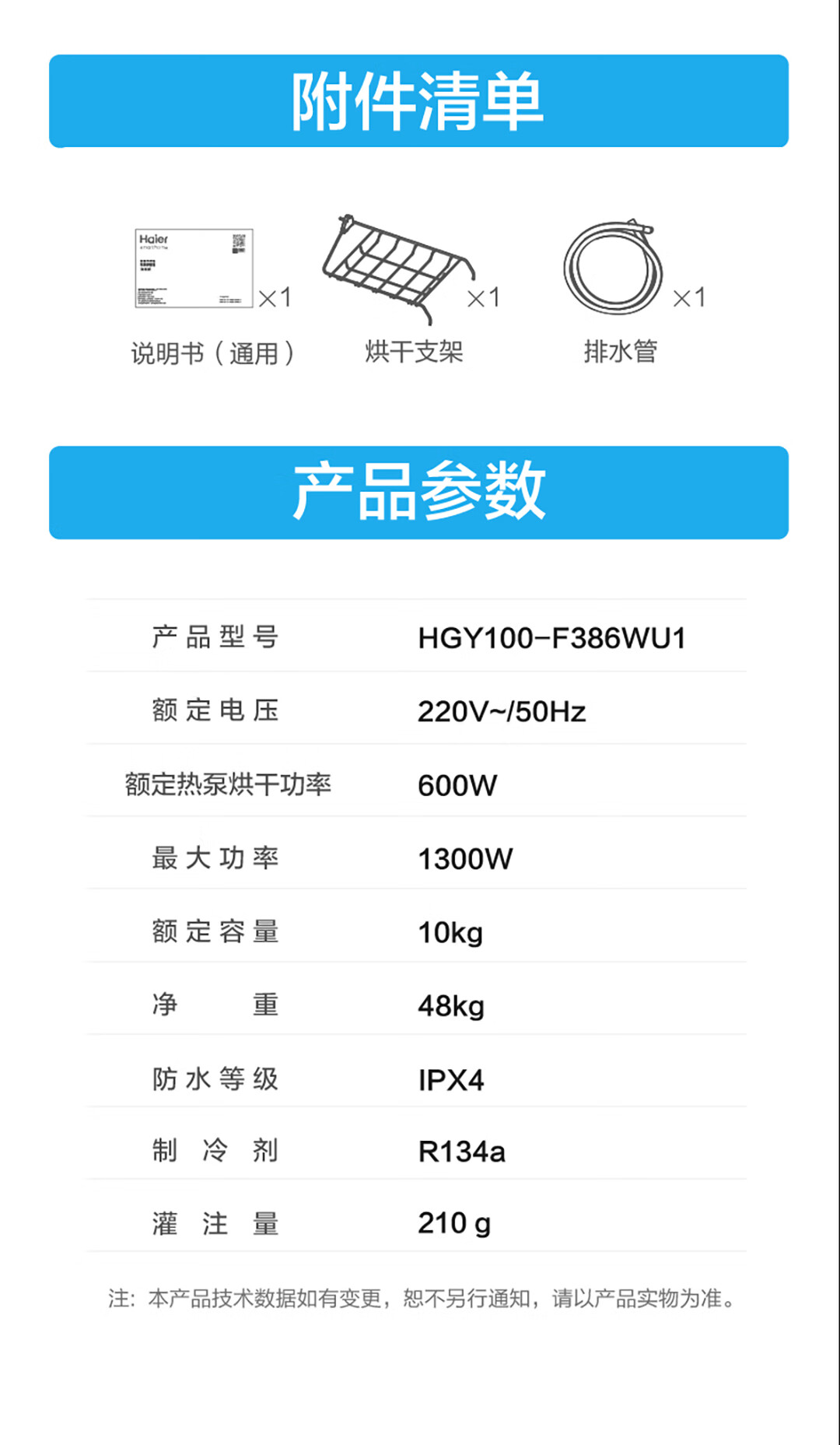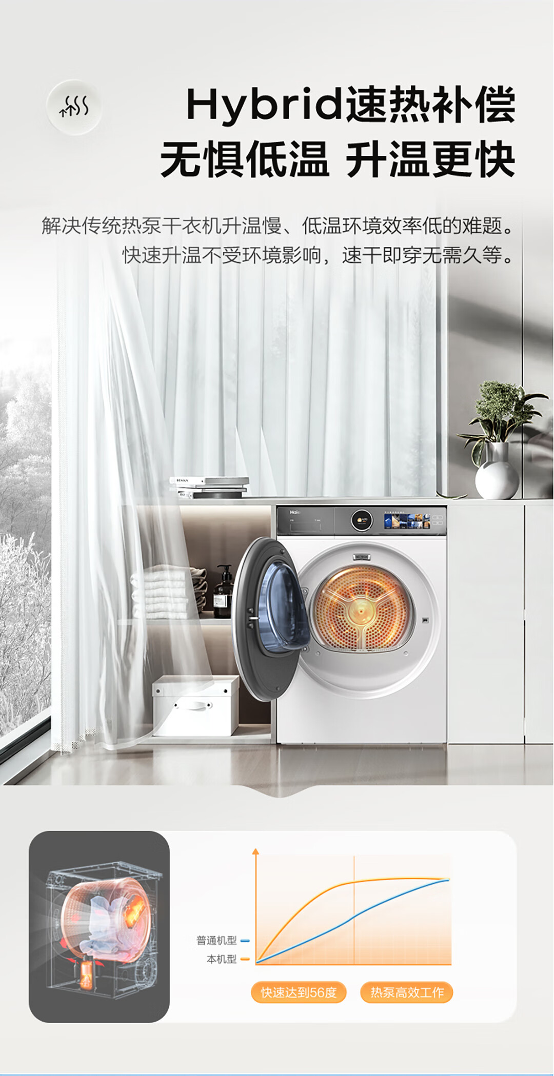 海尔(Haier)云溪386W 10KG变频双擎热泵式烘干机家用烘衣机干衣机 超薄嵌入 HGY100-F386WU1