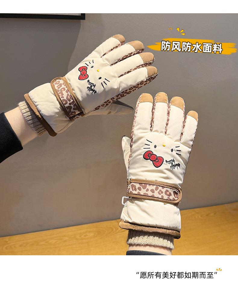 HelloKitty滑雪手套女士冬季可爱加绒加厚骑行保暖防寒手套