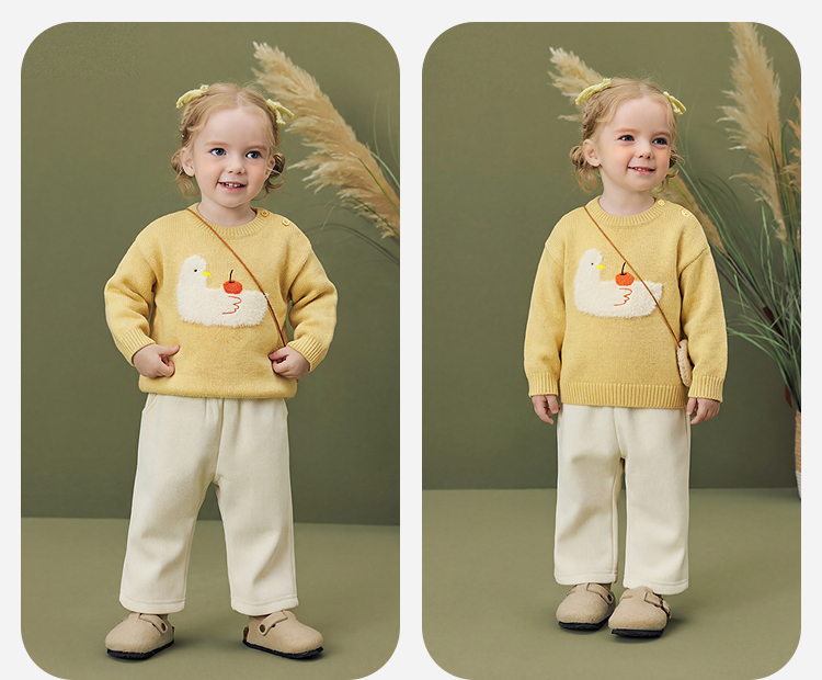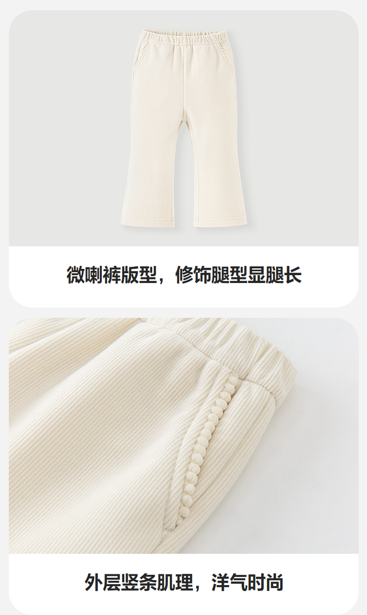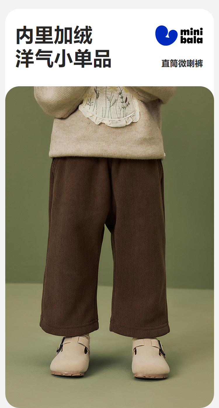 迷你巴拉女童宝宝长裤亲肤保暖内里加绒直筒微喇裤子2025冬季新款