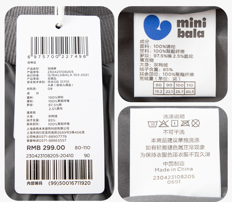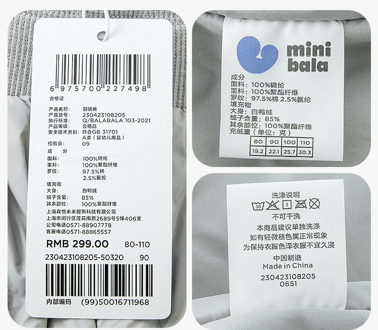 【三防羽绒裤】迷你巴拉男童女童休闲裤冬季宝宝高腰护肚长裤