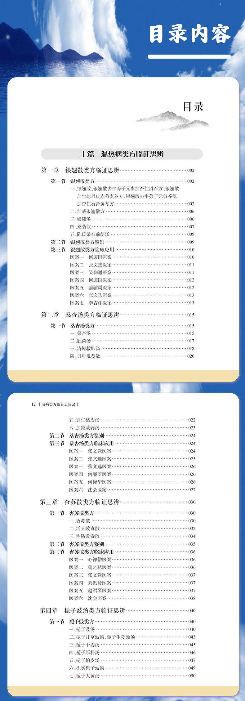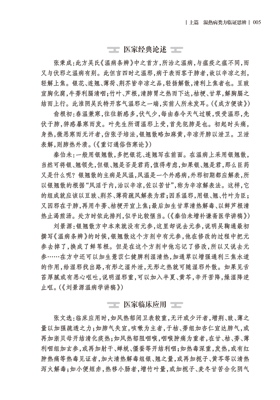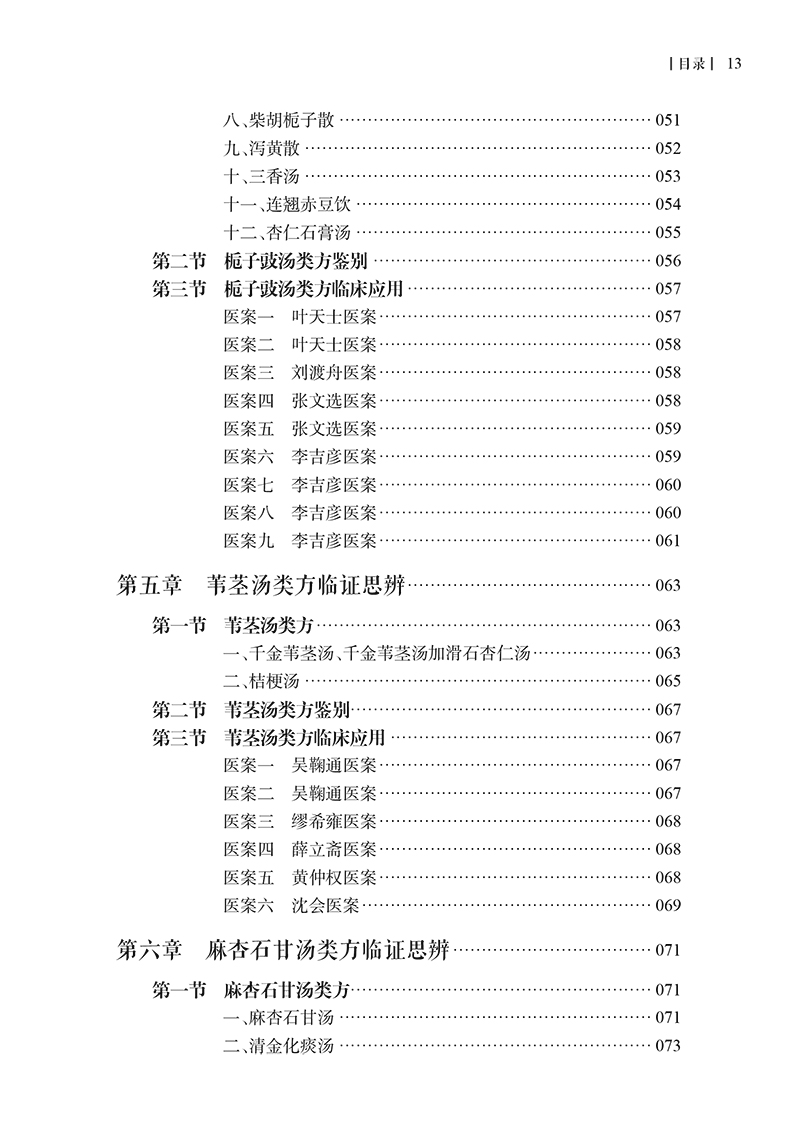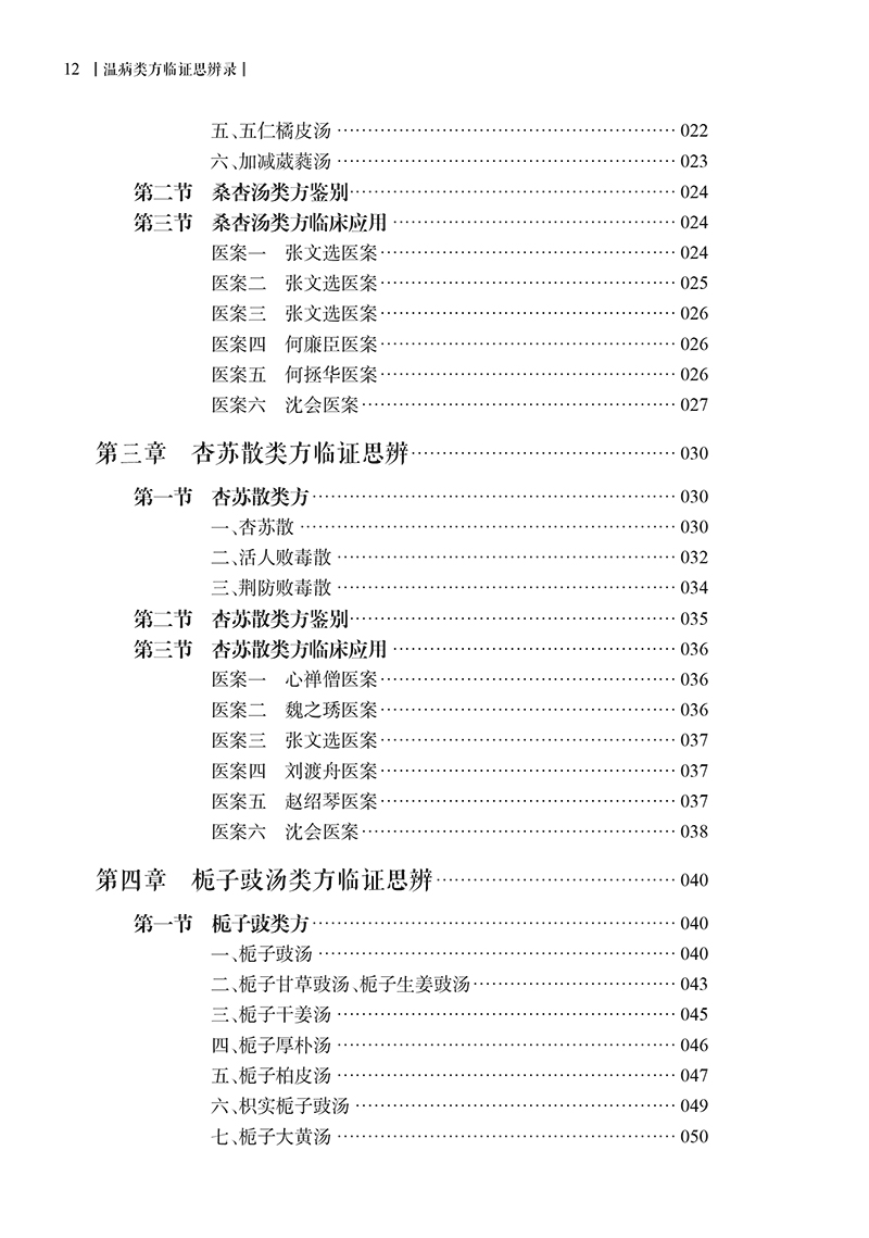 上篇 温热病类方临证思辨 第一章 银翘散类方临证思辨/ 002 第一节 银翘散类方/ 002 一、银翘散、银翘散去牛蒡子元参加杏仁滑石方、银翘散加生地丹皮赤芍麦冬方、银翘散去牛蒡子元参芥穗加杏仁石膏黄芩方/ 002 二、加减银翘散方/ 006 三、银翘汤/ 006 四、桑菊饮/ 007 五、陈氏桑杏前胡汤/ 009 第二节 银翘散类方鉴别/ 009 第三节 银翘散类方临床应用/ 010 医案一 何廉臣医案/ 010 医案二 张文选医案/ 011 医案三 吴鞠通医案/ 011 医案四 何廉臣医案/ 012 医案五 蒲辅周医案/ 012 医案六 张文选医案/ 013 医案七 李吉彦医案/ 013 第二章 桑杏汤类方临证思辨/ 015 第一节 桑杏汤类方/ 015 一、桑杏汤/ 015 二、翘荷汤/ 017 三、清燥救肺汤/ 018 四、贝母瓜蒌散/ 020 五、五仁橘皮汤/ 022 六、加减葳蕤汤/ 023 第二节 桑杏汤类方鉴别/ 024 第三节 桑杏汤类方临床应用/ 024 医案一 张文选医案/ 024 医案二 张文选医案/ 025 医案三 张文选医案/ 026 医案四 何廉臣医案/ 026 医案五 何拯华医案/ 026 医案六 沈会医案/ 027 第三章 杏苏散类方临证思辨/ 030 第一节 杏苏散类方/ 030 一、杏苏散/ 030 二、活人败毒散/ 032 三、荆防败毒散/ 034 第二节 杏苏散类方鉴别/ 035 第三节 杏苏散类方临床应用/ 036 医案一 心禅僧医案/ 036 医案二 魏之琇医案/ 036 医案三 张文选医案/ 037 医案四 刘渡舟医案/ 037 医案五 赵绍琴医案/ 037 医案六 沈会医案/ 038 第四章 栀子豉汤类方临证思辨/ 040 第一节 栀子豉类方/ 040 一、栀子豉汤/ 040 二、栀子甘草豉汤、栀子生姜豉汤/ 043 三、栀子干姜汤/ 045 四、栀子厚朴汤/ 046 五、栀子柏皮汤/ 047 六、枳实栀子豉汤/ 049 七、栀子大黄汤/ 050 八、柴胡栀子散/ 051 九、泻黄散/ 052 十、三香汤/ 053 十一、连翘赤豆饮/ 054 十二、杏仁石膏汤/ 055 第二节 栀子豉汤类方鉴别/ 056 第三节 栀子豉汤类方临床应用/ 057 医案一 叶天士医案/ 057 医案二 叶天士医案/ 058 医案三 刘渡舟医案/ 058 医案四 张文选医案/ 058 医案五 张文选医案/ 059 医案六 李吉彦医案/ 059 医案七 李吉彦医案/ 060 医案八 李吉彦医案/ 060 医案九 李吉彦医案/ 061 第五章 苇茎汤类方临证思辨/ 063 第一节 苇茎汤类方/ 063 一、千金苇茎汤、千金苇茎汤加滑石杏仁汤/ 063 二、桔梗汤/ 065 第二节 苇茎汤类方鉴别/ 067 第三节 苇茎汤类方临床应用/ 067 医案一 吴鞠通医案/ 067 医案二 吴鞠通医案/ 067 医案三 缪希雍医案/ 068 医案四 薛立斋医案/ 068 医案五 黄仲权医案/ 068 医案六 沈会医案/ 069 第六章 麻杏石甘汤类方临证思辨/ 071 第一节 麻杏石甘汤类方/ 071 一、麻杏石甘汤/ 071 二、清金化痰汤/ 073 三、清金降火汤/ 074 四、雷氏清宣金脏法/ 075 第二节 麻杏石甘汤类方鉴别/ 076 第三节 麻杏石甘汤类方临床应用/ 077 医案一 吴鞠通医案/ 077 医案二 吴鞠通医案/ 077 医案三 雷丰医案/ 078 医案四 雷丰医案/ 078 医案五 沈会医案/ 078 第七章 白虎汤类方临证思辨/ 080 第一节 白虎汤类方/ 080 一、白虎汤/ 080 二、白虎加人参汤/ 085 三、苍术白虎汤加草果/ 086 四、白虎加桂枝汤/ 088 五、竹叶石膏汤/ 090 六、玉女煎、玉女煎去牛膝熟地加细生地元参方、竹叶玉女煎方/ 092 七、通变白虎加人参汤/ 094 八、三黄石膏汤/ 095 九、防风通圣散/ 096 十、石膏知母汤/ 098 十一、泻白散/ 099 十二、黄芩泻白散/ 101 第二节 白虎汤类方鉴别/ 102 第三节 白虎汤类方临床应用/ 104 医案一 张锡纯医案/ 104 医案二 张锡纯医案/ 104 医案三 李吉彦医案/ 104 医案四 李吉彦医案/ 105 医案五 李吉彦医案/ 106 医案六 李吉彦医案/ 107 医案七 李吉彦医案/ 108 医案八 沈会医案/ 109 第八章 清营汤类方临证思辨/ 111 第一节 清营汤类方/ 111 一、清营汤/ 111 二、清热地黄汤合银翘散/ 113 三、银翘散去豆豉加细生地丹皮大青叶倍元参方/ 114 第二节 清营汤类方鉴别/ 115 第三节 清营汤类方临床应用/ 116 医案一 叶天士医案/ 116 医案二 叶天士医案/ 116 医案三 张文选医案/ 116 医案四 张文选医案/ 117 医案五 张文选医案/ 117 医案六 张文选医案/ 117 第九章 犀角地黄汤类方临证思辨/ 118 第一节 犀角地黄汤类方/ 118 一、犀角地黄汤/ 118 二、黄连解毒汤合犀角地黄汤/ 120 三、神犀丹/ 122 四、清宫汤、清宫汤去莲心麦冬加银花赤小豆皮方、加味清 宫汤/ 123 五、化斑汤/ 125 六、清瘟败毒饮/ 126 第二节 犀角地黄汤类方鉴别/ 127 第三节 犀角地黄汤类方临床应用/ 129 医案一 何拯华医案/ 129 医案二 刘渡舟医案/ 129 医案三 张文选医案/ 130 医案四 张文选医案/ 131 医案五 曹仁伯医案/ 131 医案六 张聿青医案/ 132 第十章 安宫牛黄丸类方临证思辨/ 133 第一节 安宫牛黄丸类方/ 133 一、安宫牛黄丸/ 133 二、紫雪丹/ 135 三、至宝丹/ 137 四、羚角钩藤汤/ 139 第二节 安宫牛黄丸类方鉴别/ 141 第三节 安宫牛黄丸类方临床应用/ 141 医案一 姜德清医案/ 141 医案二 何拯华医案/ 143 医案三 陈作仁医案/ 143 医案四 刘渡舟医案/ 144 医案五 赵绍琴医案/ 145 第十一章 导赤散类方临证思辨/ 146 第一节 导赤散类方/ 146 一、导赤散/ 146 二、导赤清心汤/ 148 三、清心莲子饮/ 149 第二节 导赤散类方鉴别/ 150 第三节 导赤散类方临床应用/ 151 医案一 刘以敏医案/ 151 医案二 张琪医案/ 151 第十二章 青蒿鳖甲汤类方临证思辨/ 153 第一节 青蒿鳖甲汤类方/ 153 一、青蒿鳖甲汤/ 153 二、清骨散/ 155 三、秦艽鳖甲散/ 155 第二节 青蒿鳖甲