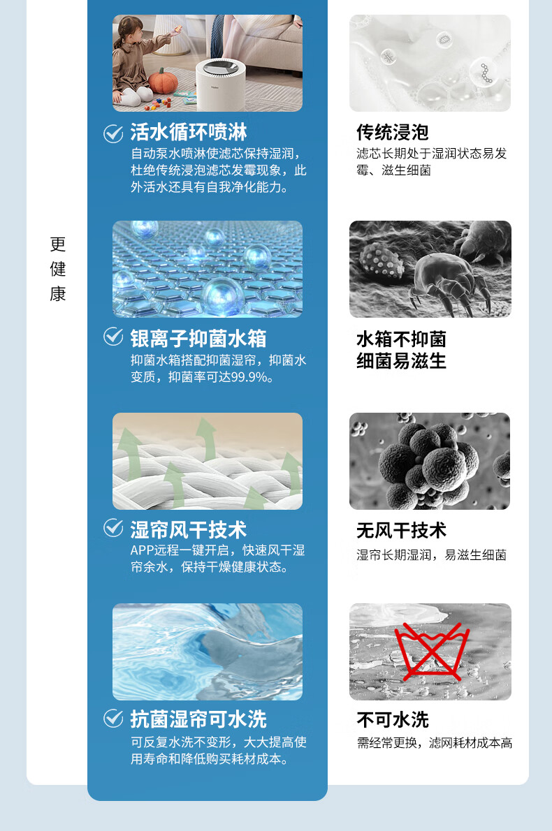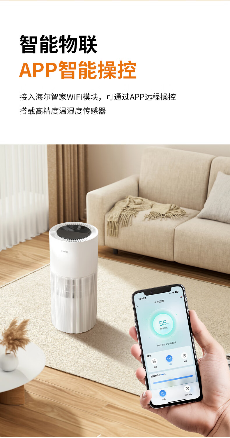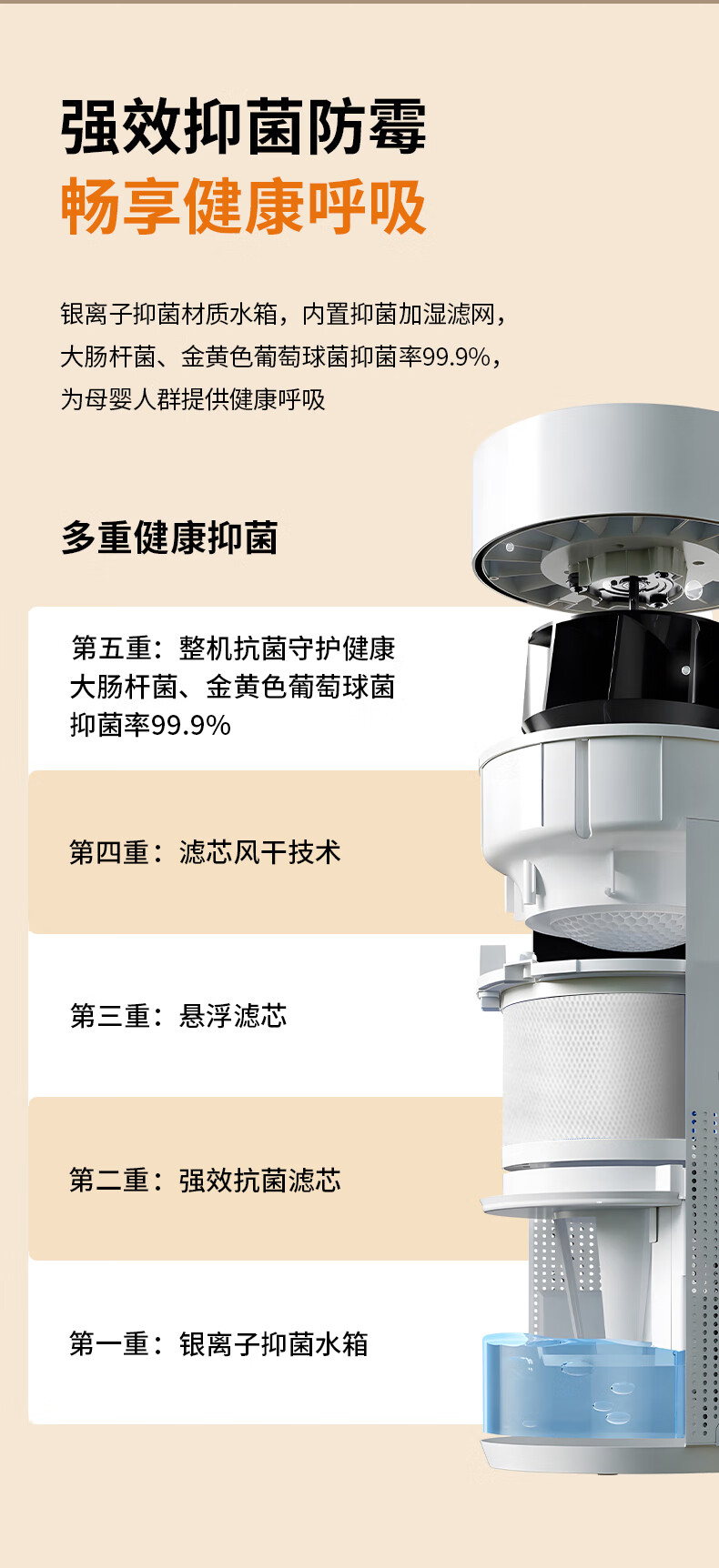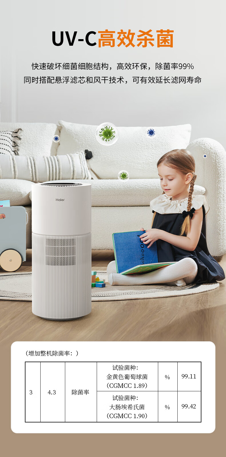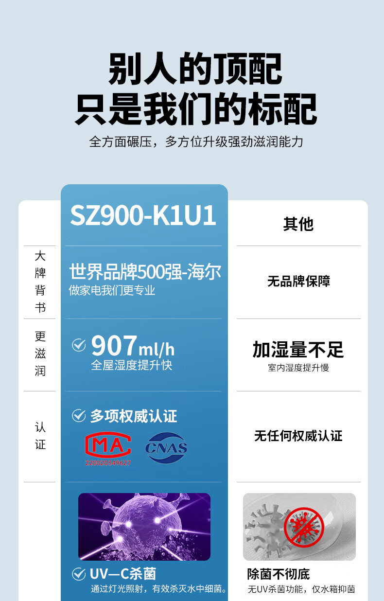 海尔(Haier)无雾加湿器家用落地式 轻音卧室办公室客厅大面积母婴级 900ml/h快速加湿 8L大水箱 紫外线除菌 喷淋式空气加湿器