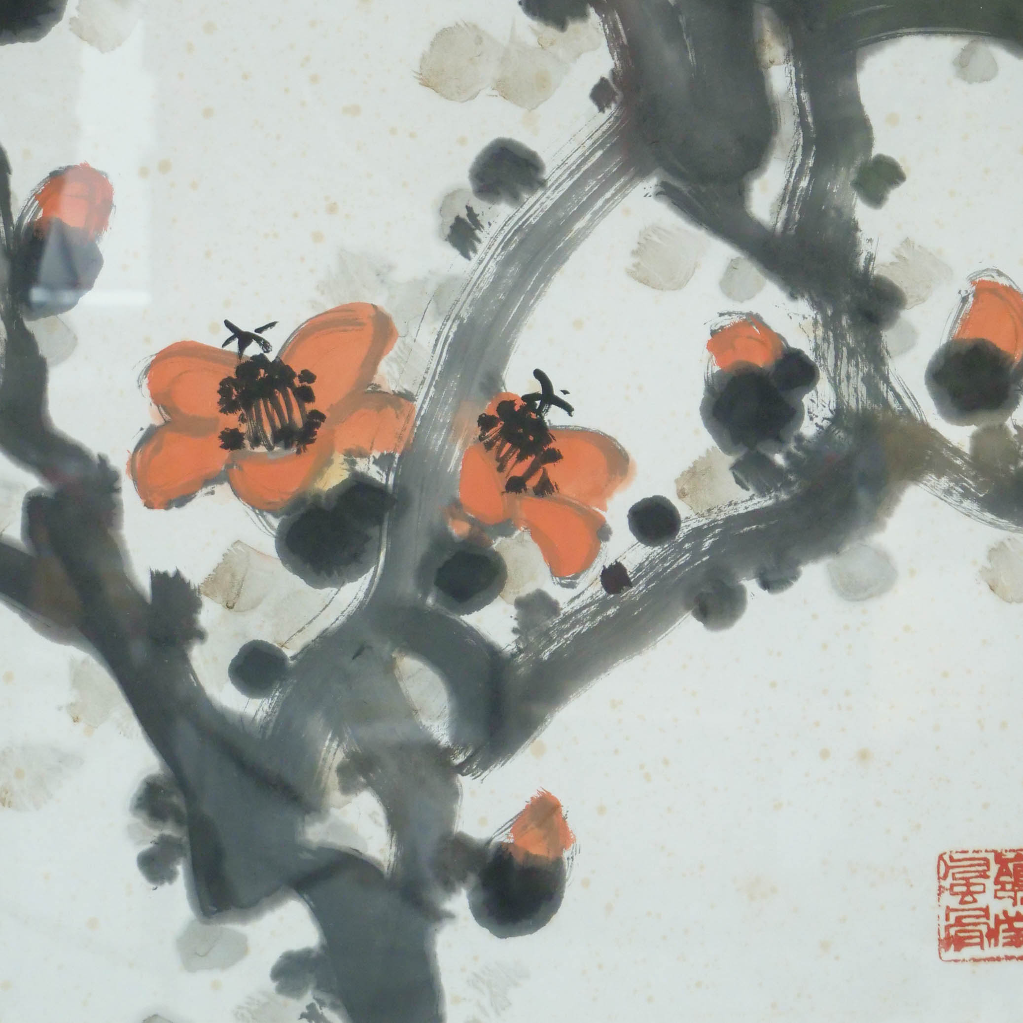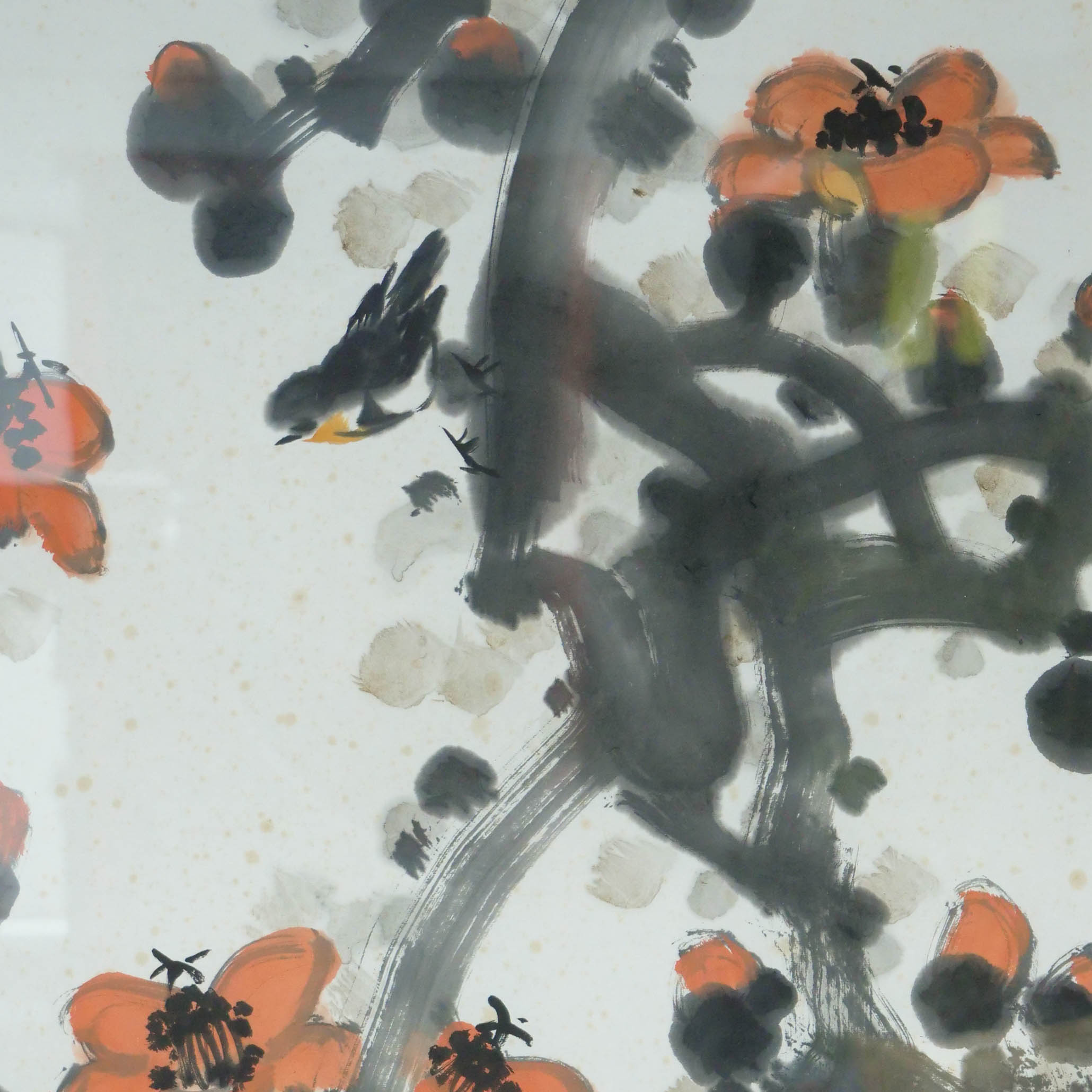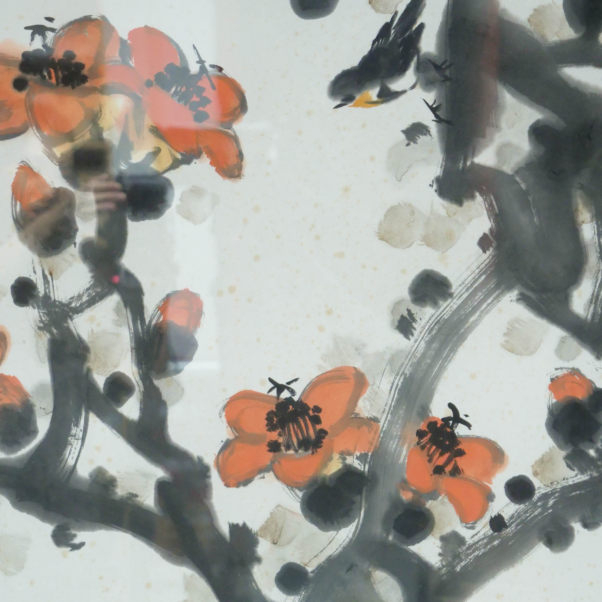 陈永锵《南天三月》国画原作68CM*68CM 手绘宣纸红棉 [含框]