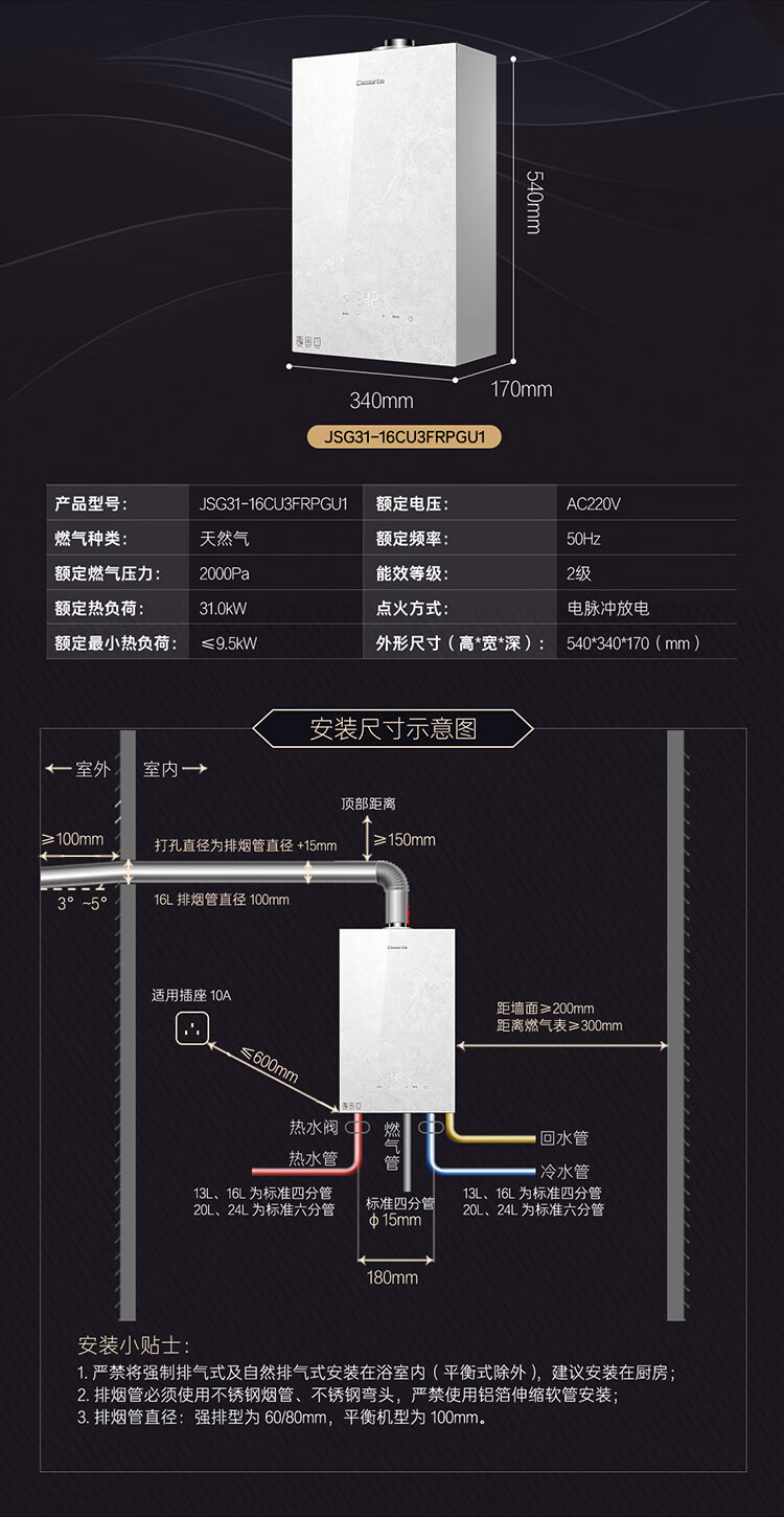 卡萨帝(Casarte)热水器 JSG31-16CU3FRPGU1