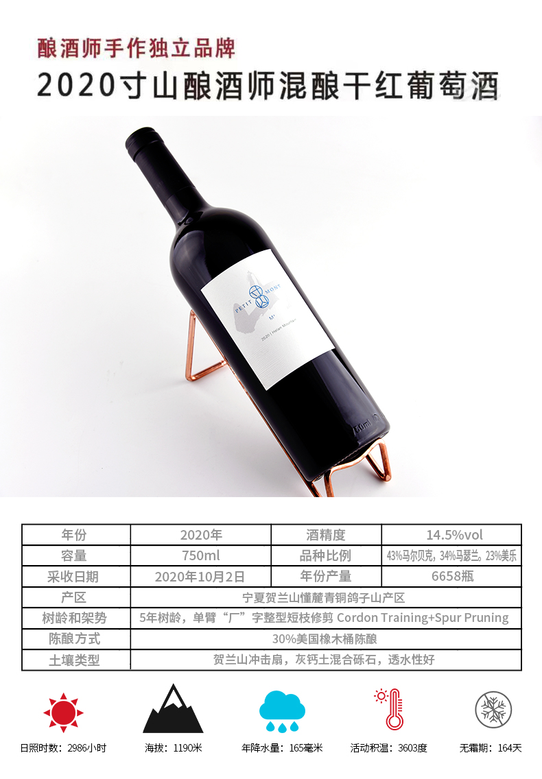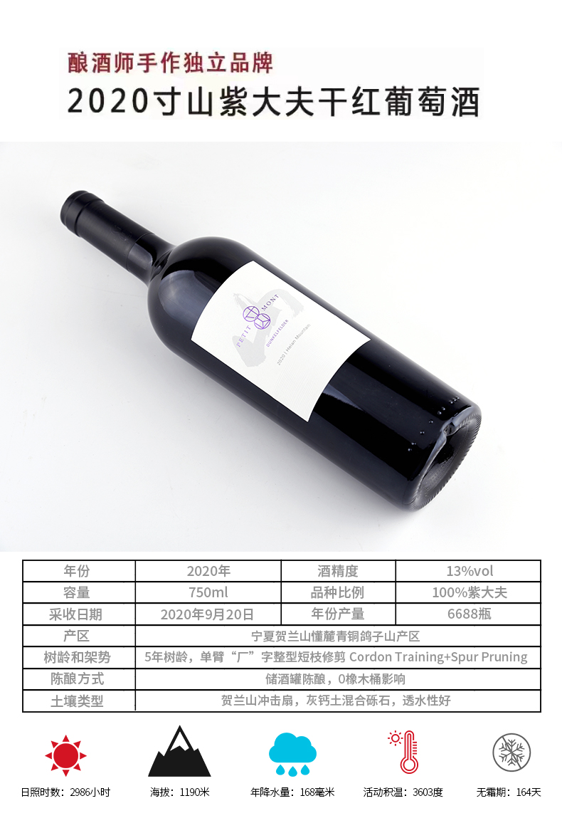 国产精品 宁夏贺兰山葡萄酒 独立酿酒师酿造红酒1支750ml