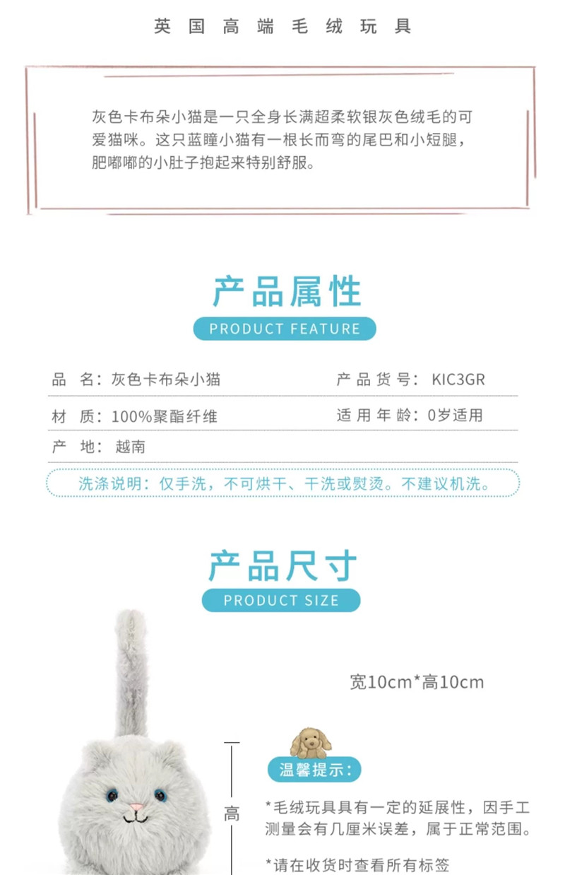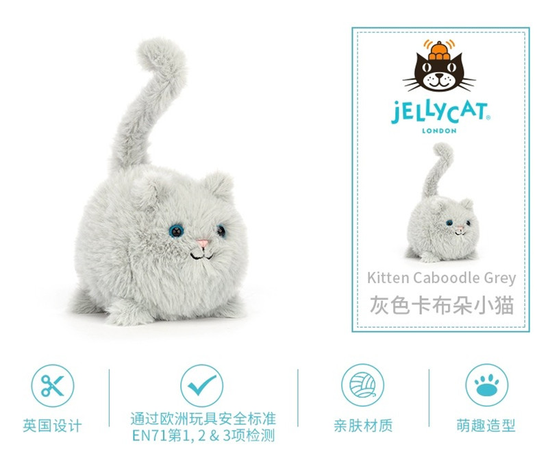 Jellycat 灰色卡布朵小猫 (均码 10cm)JCACKIC3GR