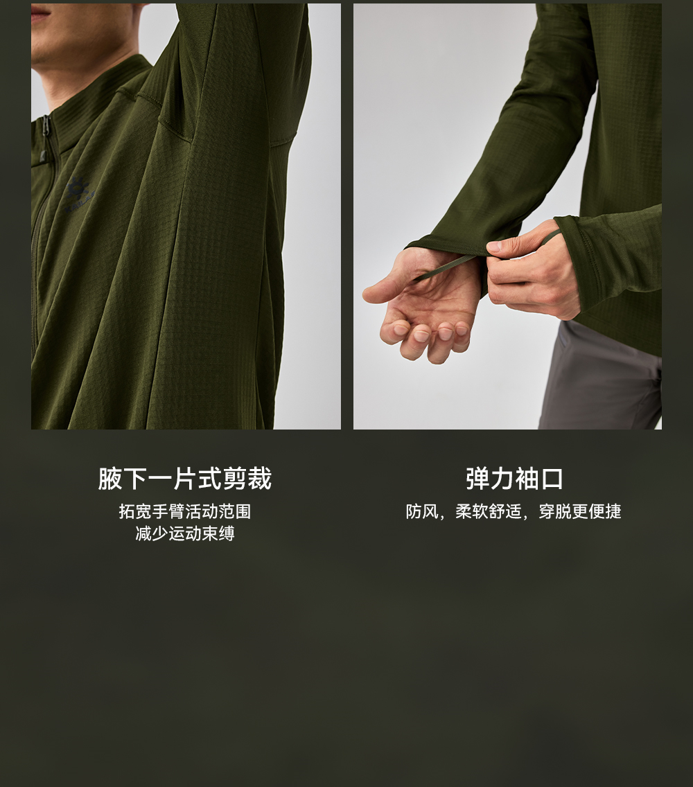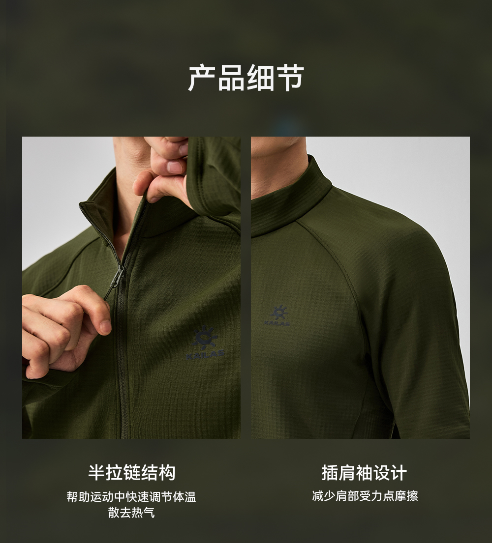 KAILAS凯乐石 户外运动 男款立领半开胸抓绒衫 KG2437123