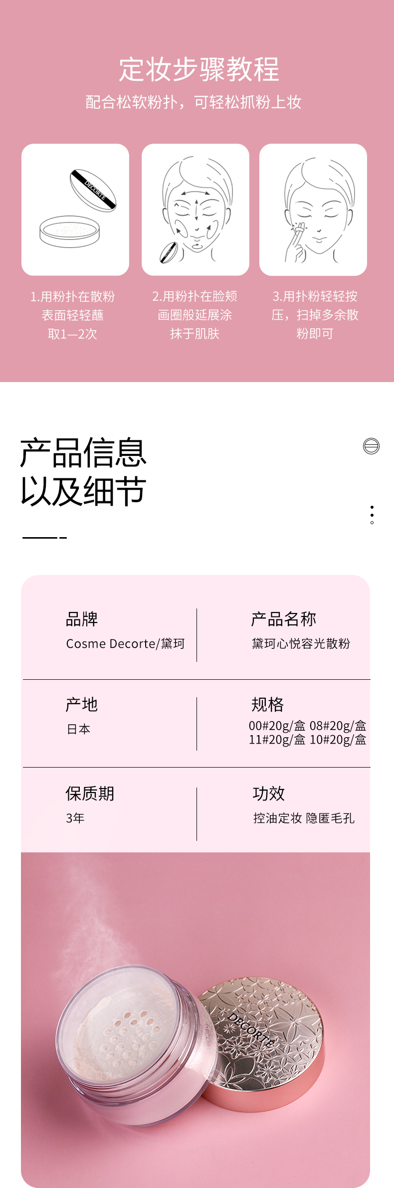 【中欧班列精选】日本黛珂心悦容光丝柔蜜粉散粉20g柔焦 毛孔控油持妆 多色号 BFT