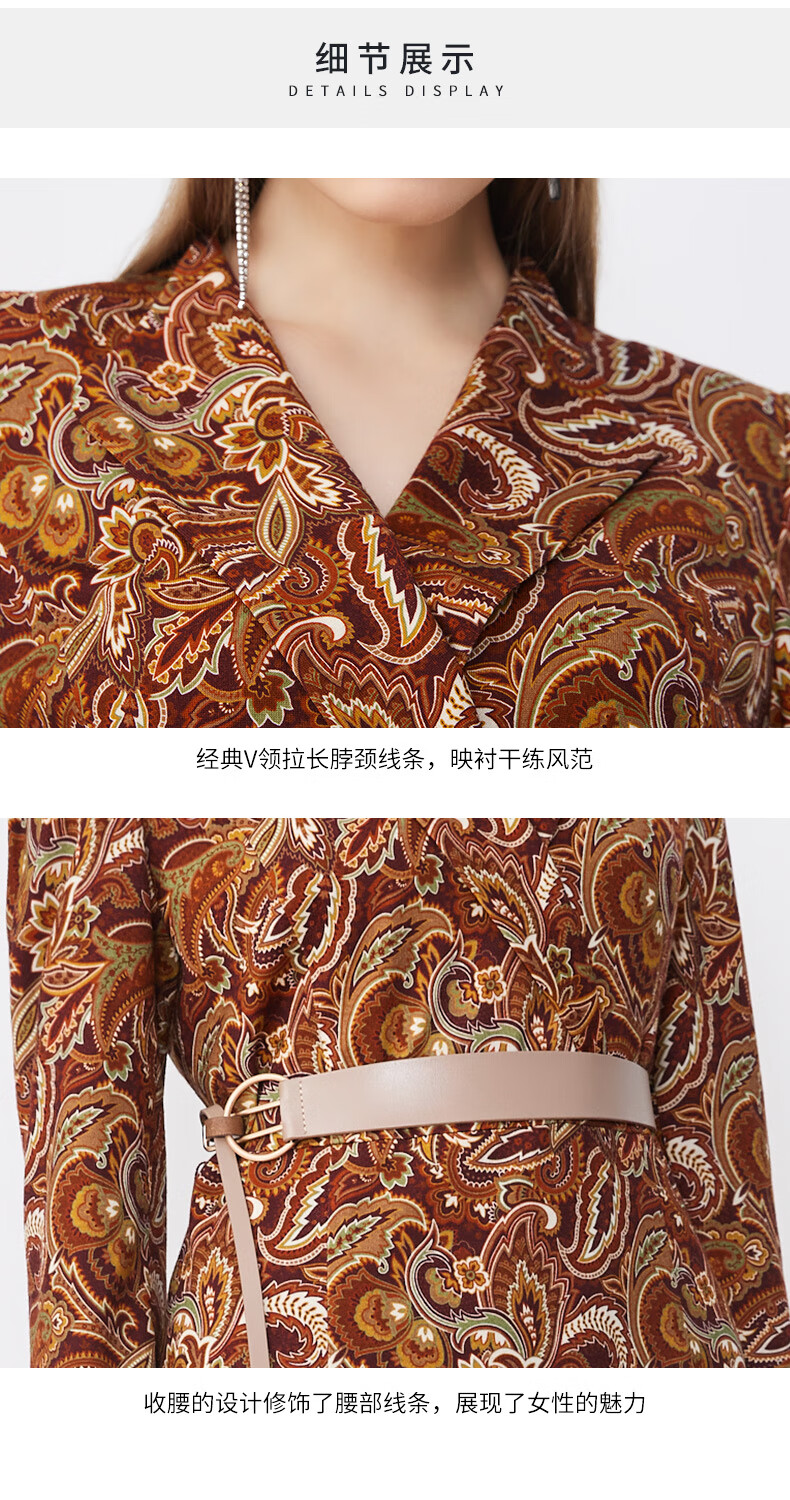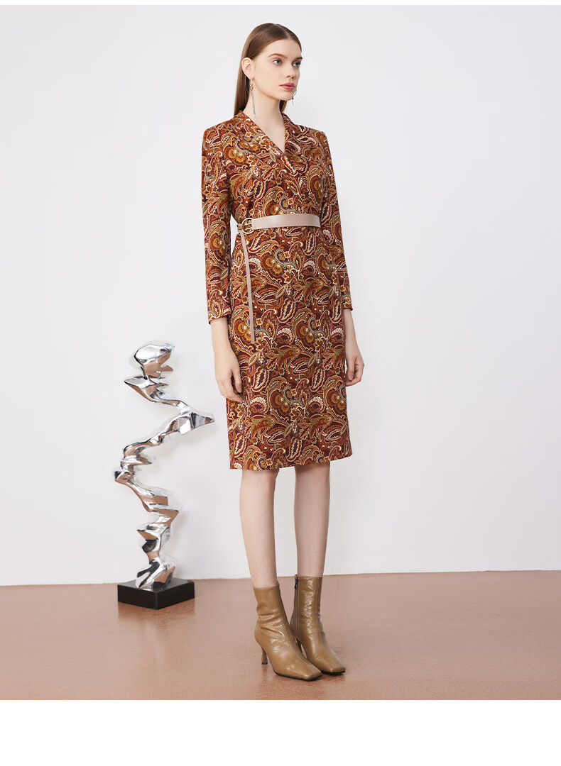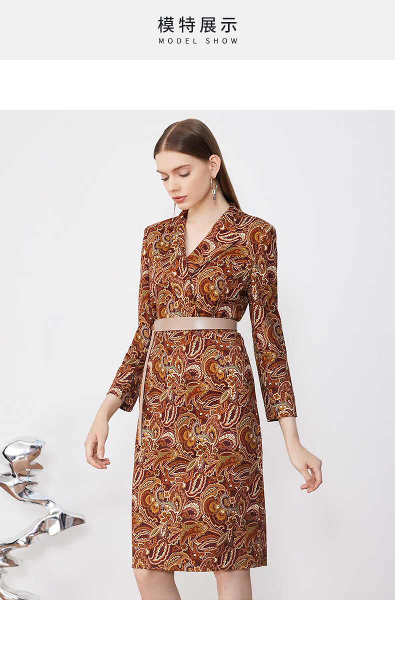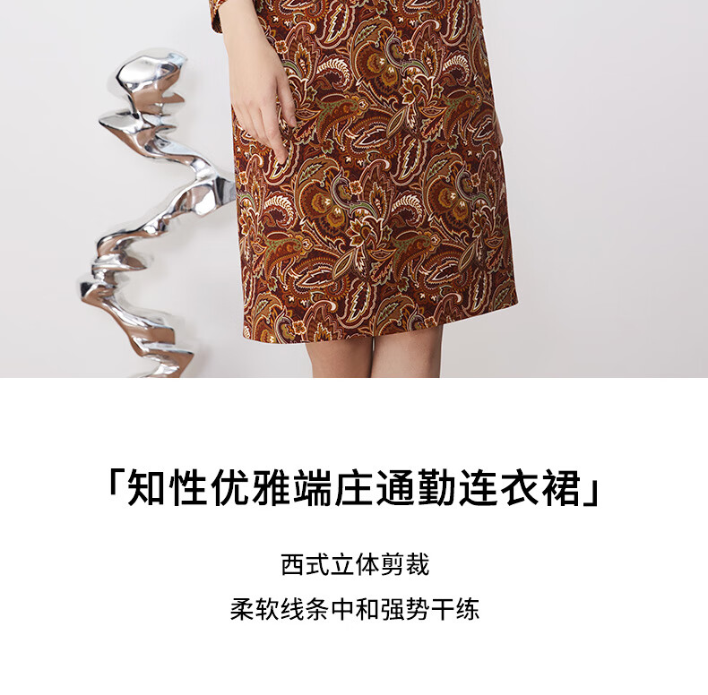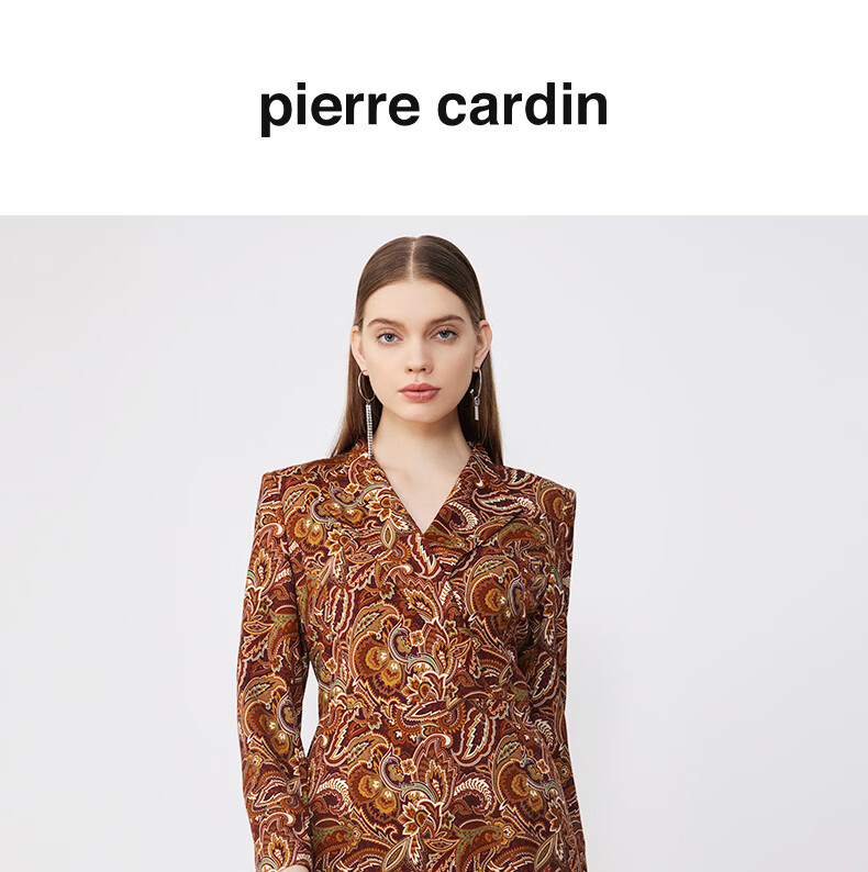 皮尔卡丹女装连衣裙秋冬法式复古印花通勤羊毛裙子P3428E3975K3