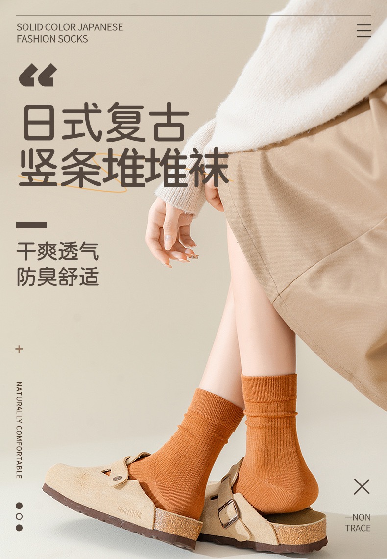 【YW】无忧购(19元5双,29元10双)日系复古竖条纹简约百搭中筒堆堆袜8156(截单后7天发货)