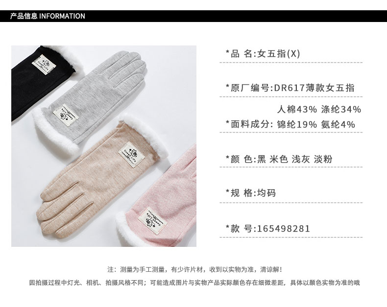 亲肤保暖时尚薄款女五指手套-纪念日百货门店同款165498281