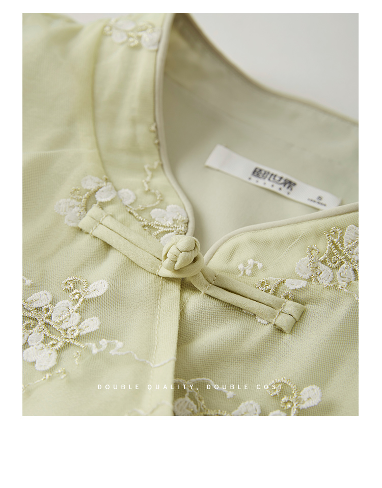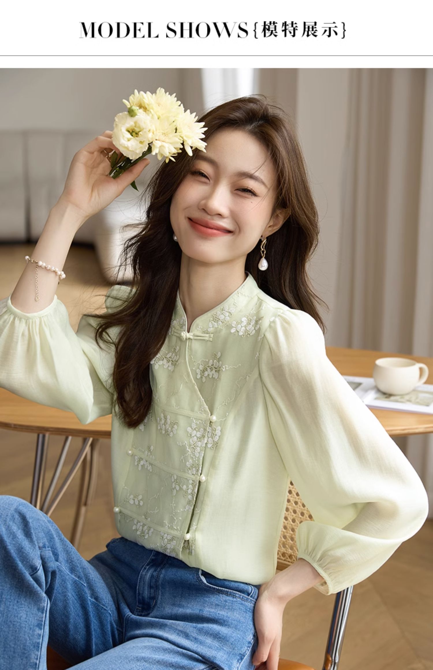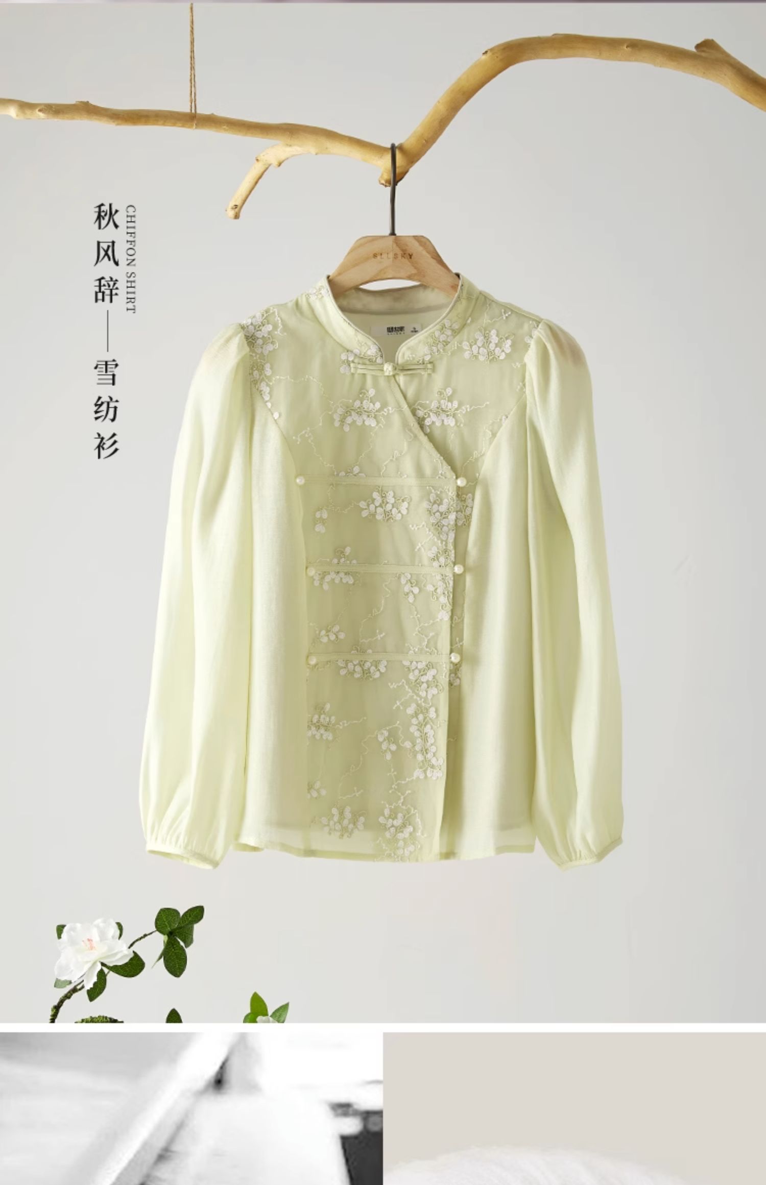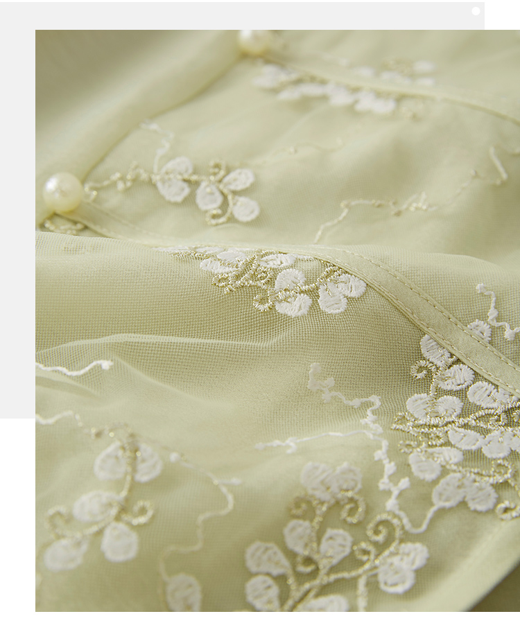 【1件72折】熙世界新中式国风刺绣盘扣衬衫女秋季新款气质灯笼袖立领天丝上衣