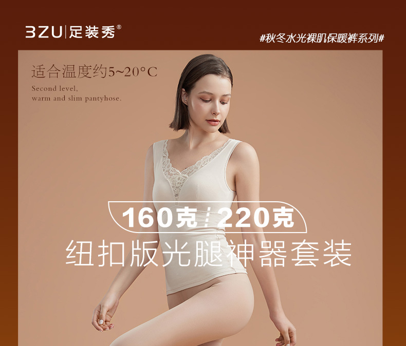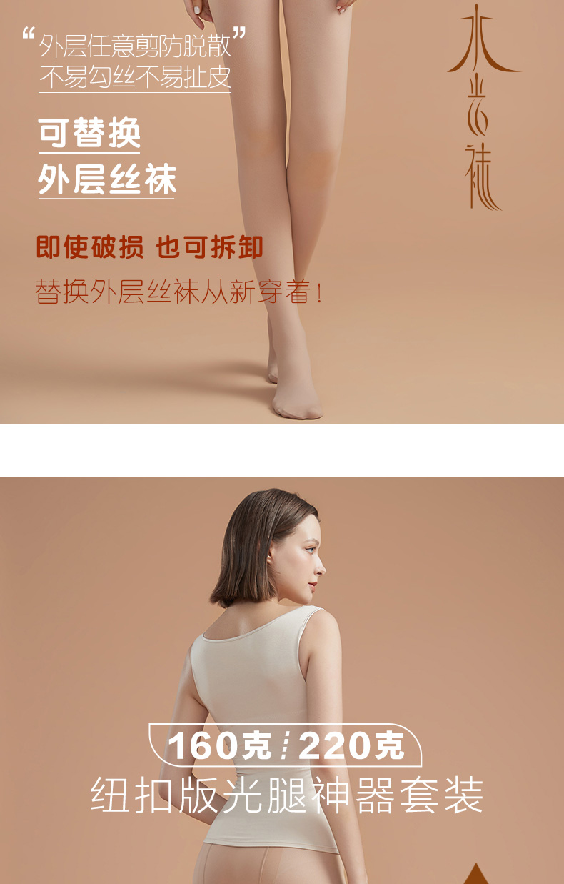 秋新品裸感双层假透肉薄绒纽扣版光腿神器套装打底裤