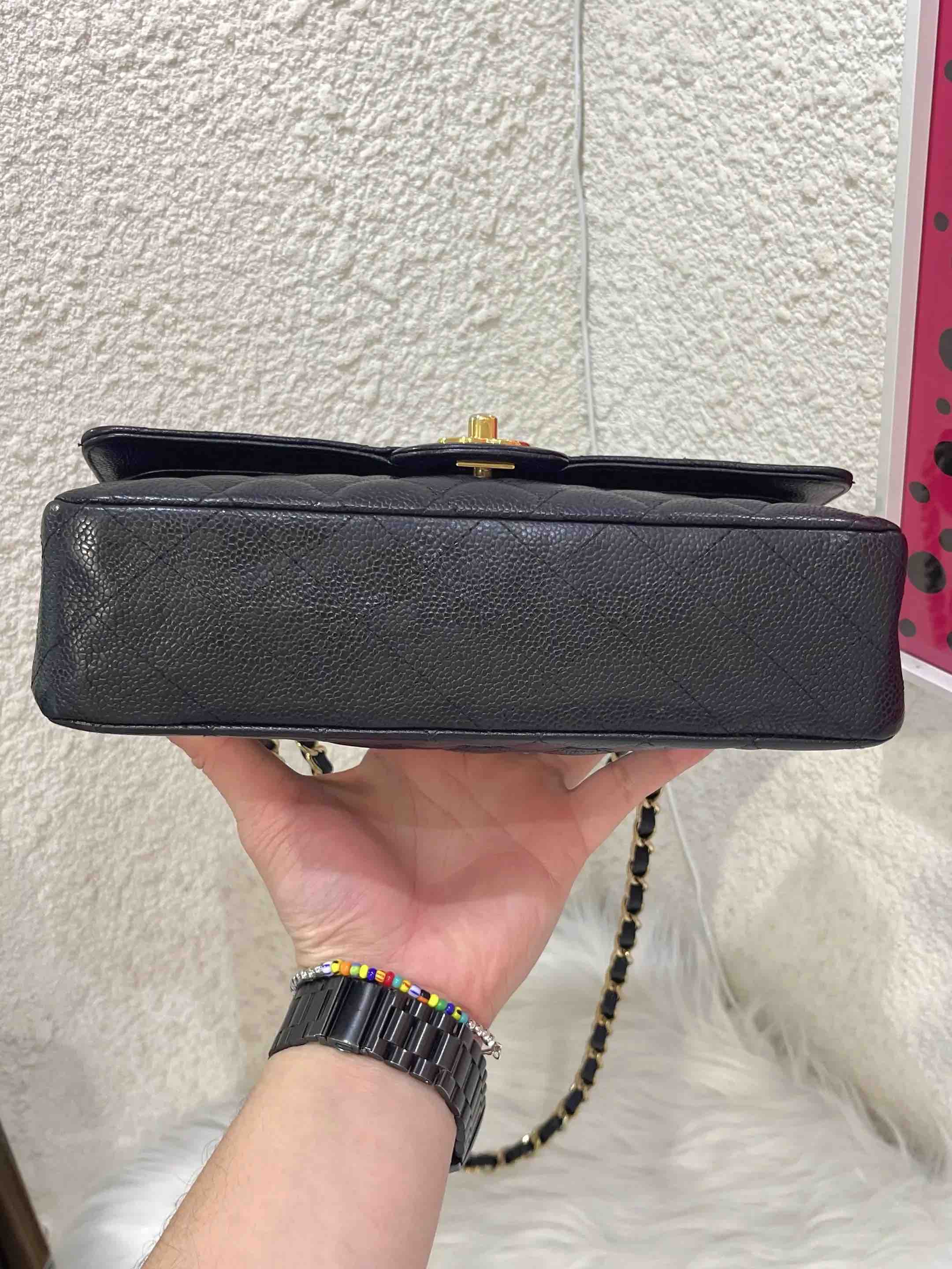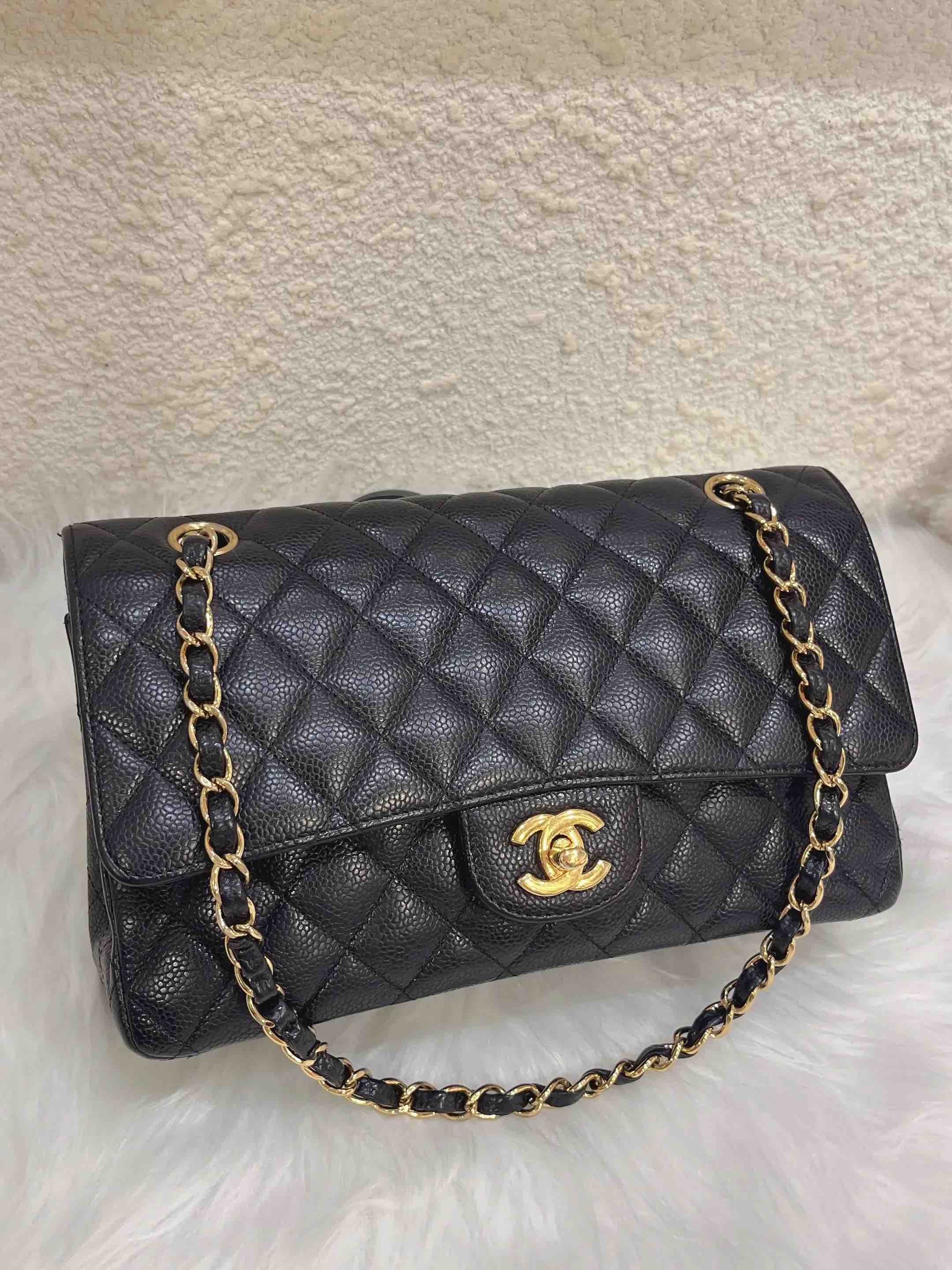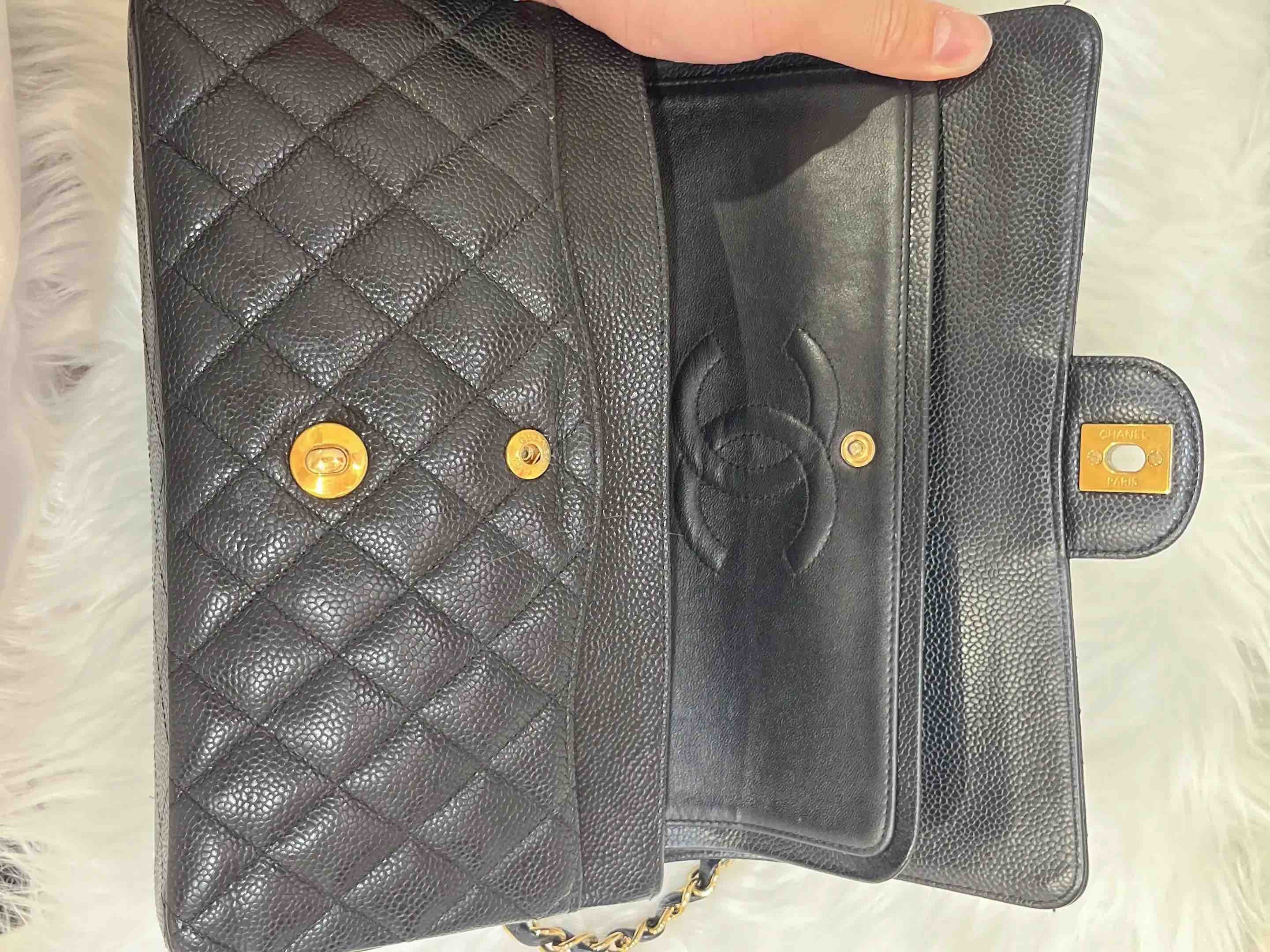 【商品详情】正品二手 Chanel cf 中号 黑金 荔枝纹牛皮 翻盖包🌼95新 25x15 镭射13开。金属正常使用感。经典可传世