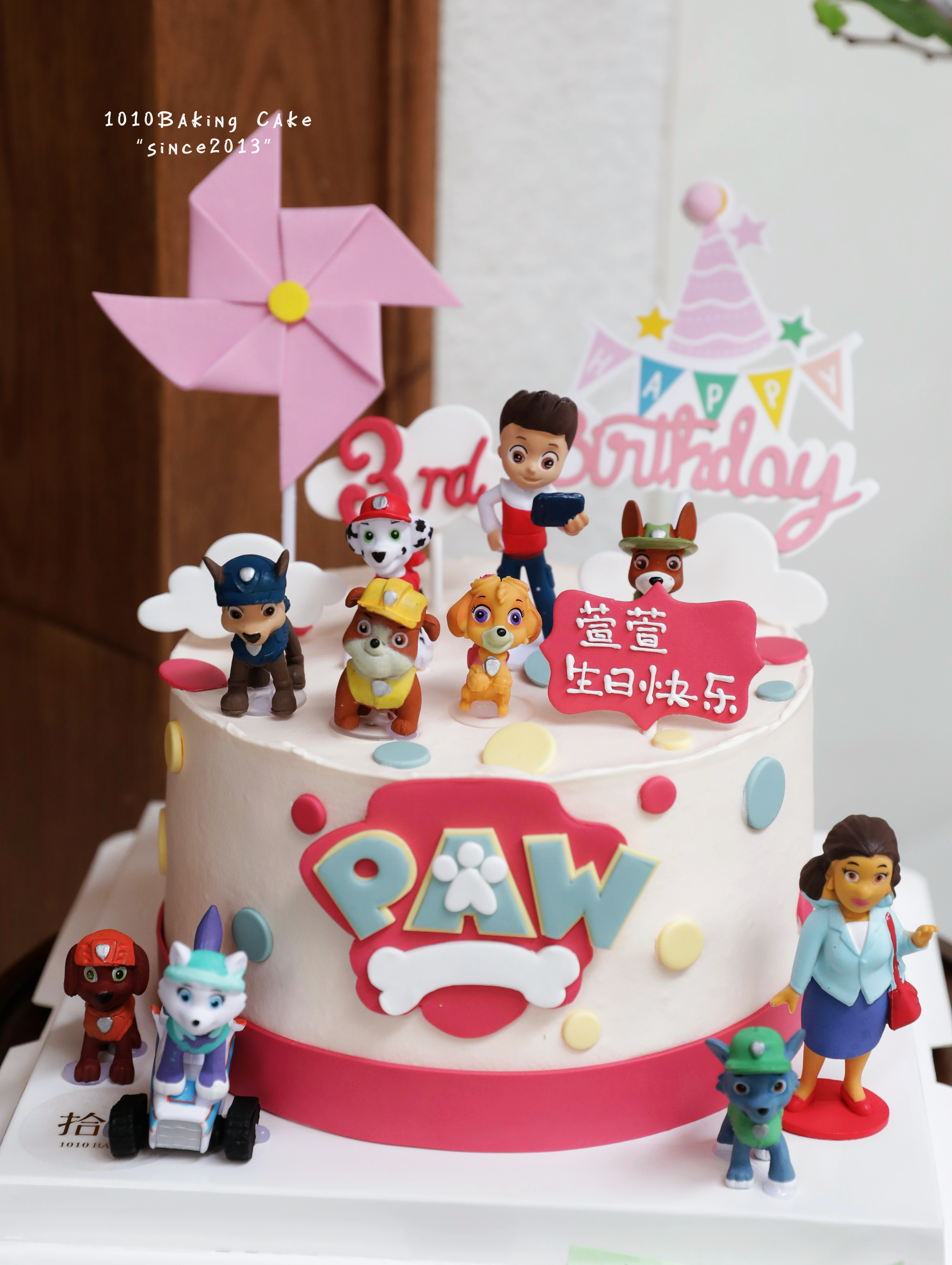 「汪汪立大功队·粉系」名字岁数可改·翻糖巧克力·100%动物奶油(主图8寸·提前3天预订)
