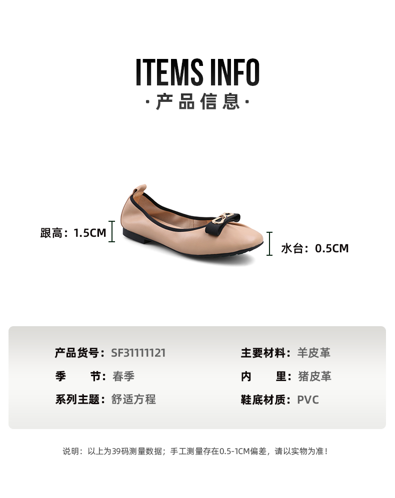 Safiya/索菲娅 2023年春季新款气质浅口软底气质舒适通勤蝴蝶结休闲单鞋SF31111121