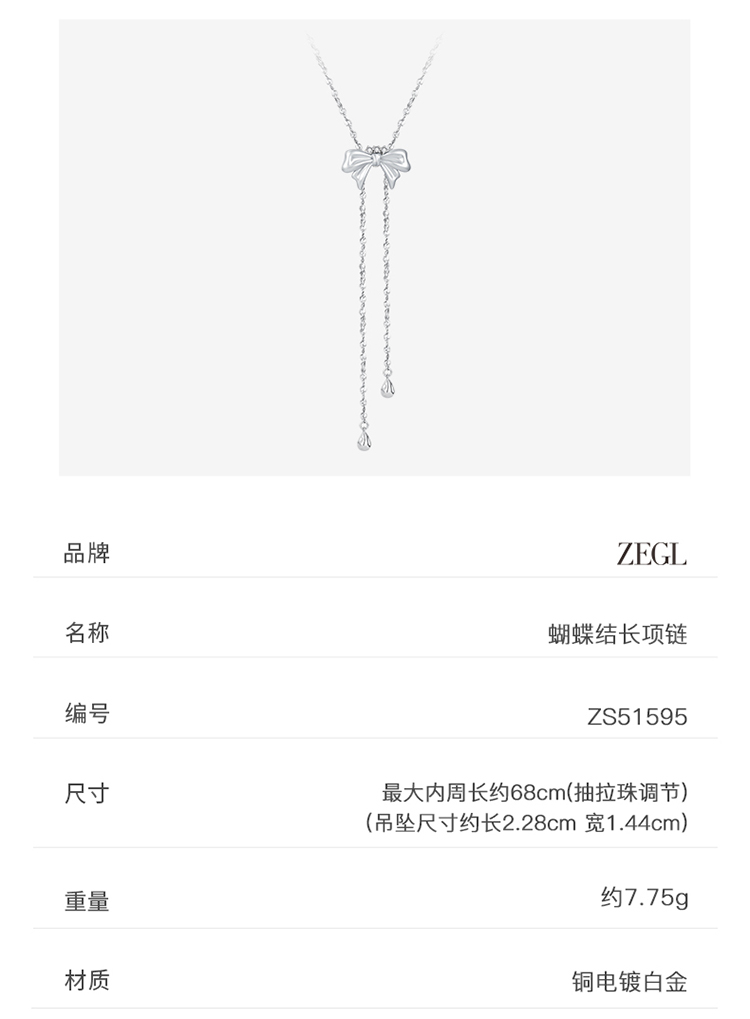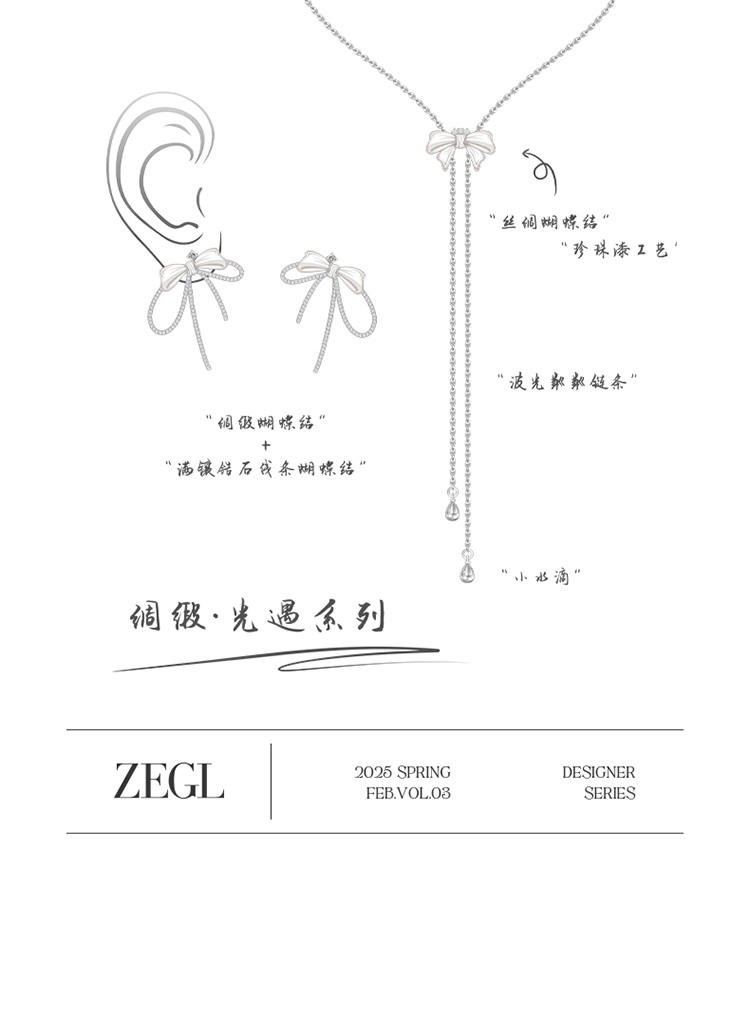ZEGL设计师绸缎光遇系列蝴蝶结颈链女贵气感千金长项链子装饰小众
