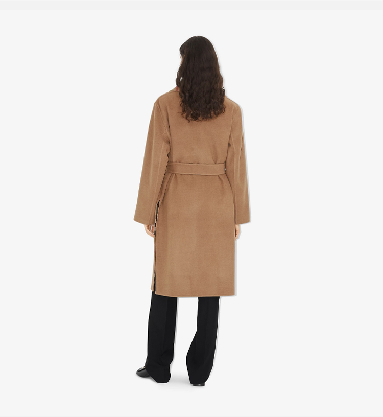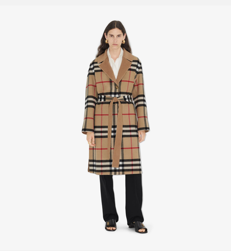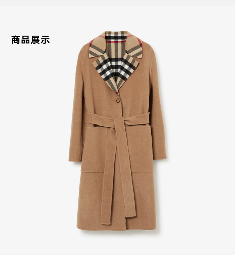 【二】BURBERRY 巴宝莉 女士双面两穿格纹羊毛大衣 驼色 8058171 A8731