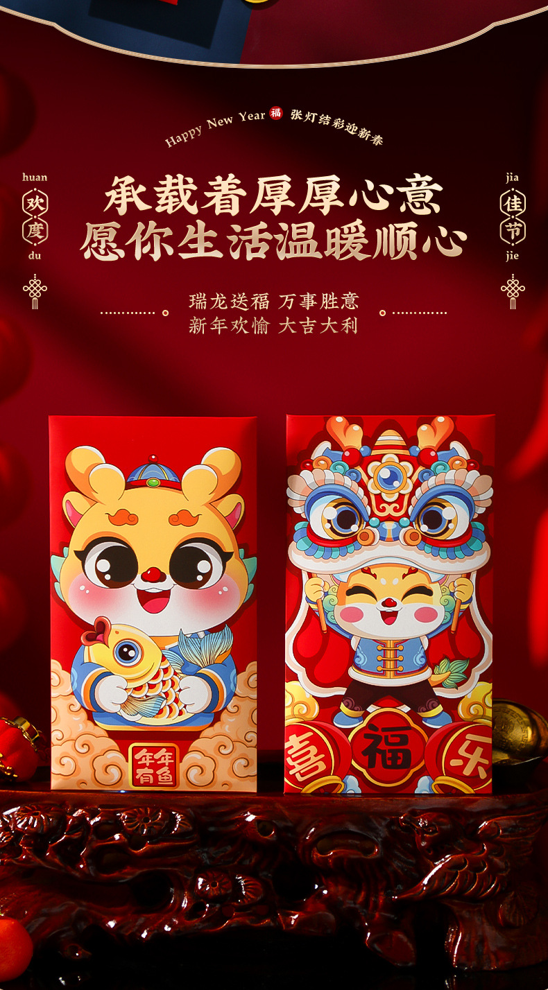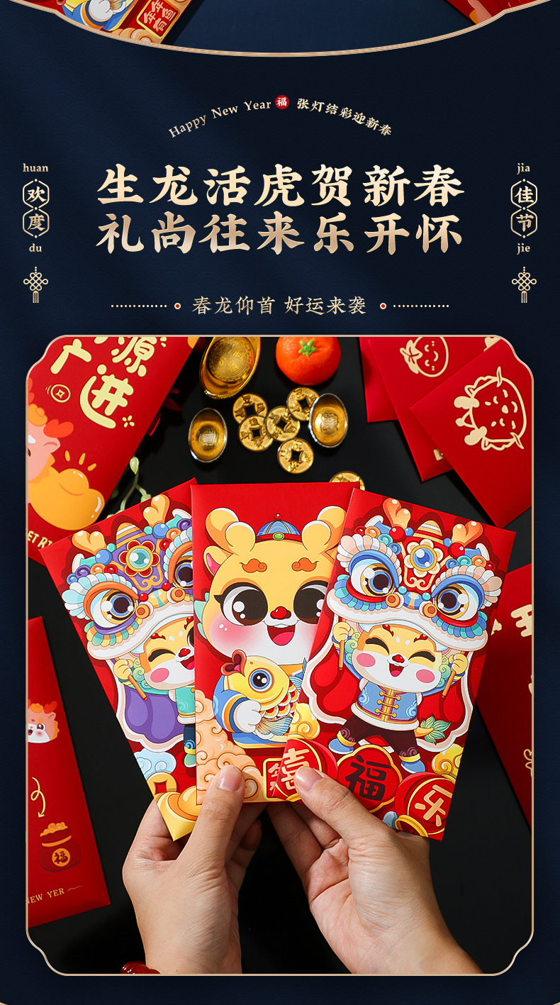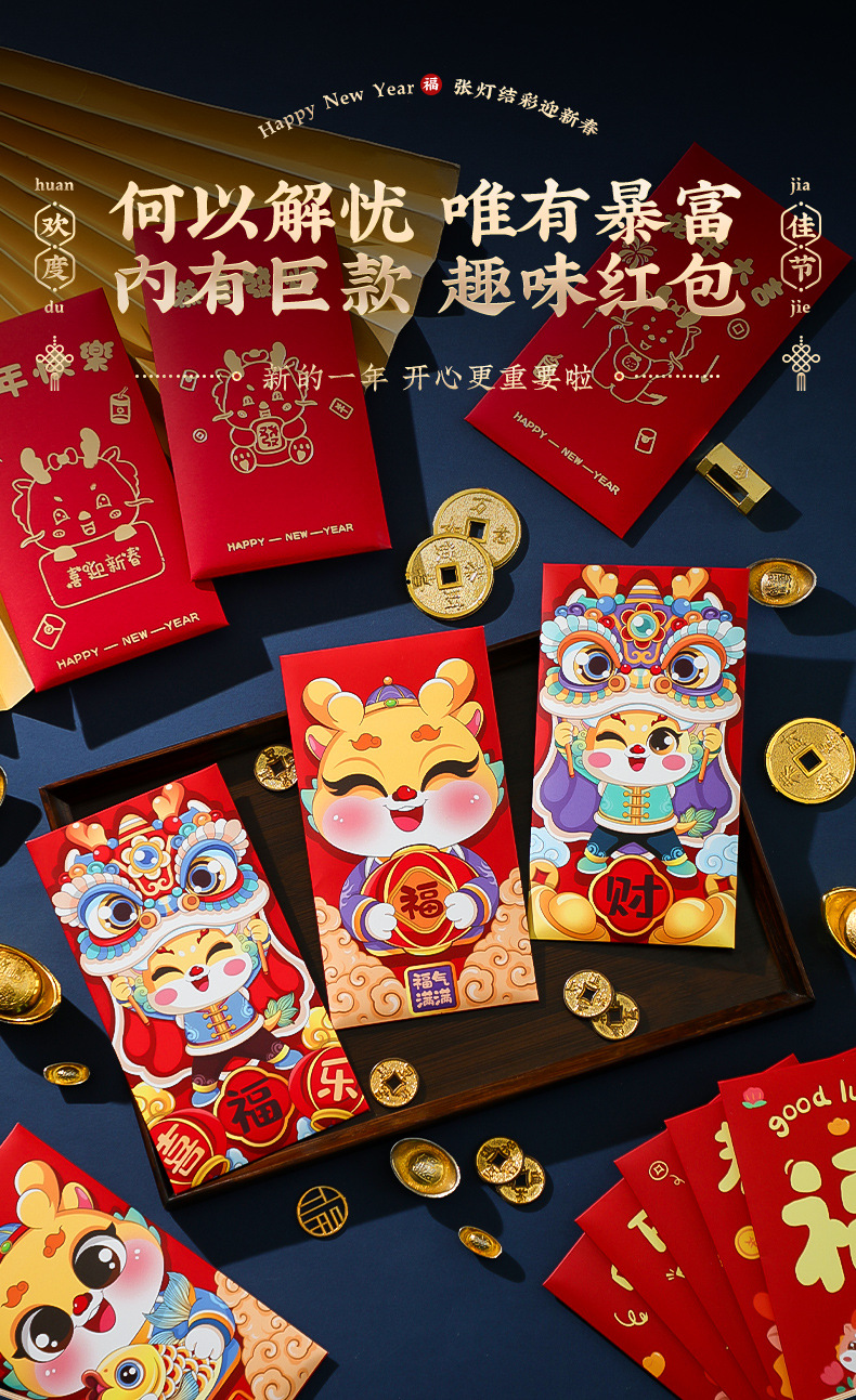 「6个装!数套可选」2024龙年新款过年红包袋 新年春节儿童卡通千元压岁居家日用通用红包利是封