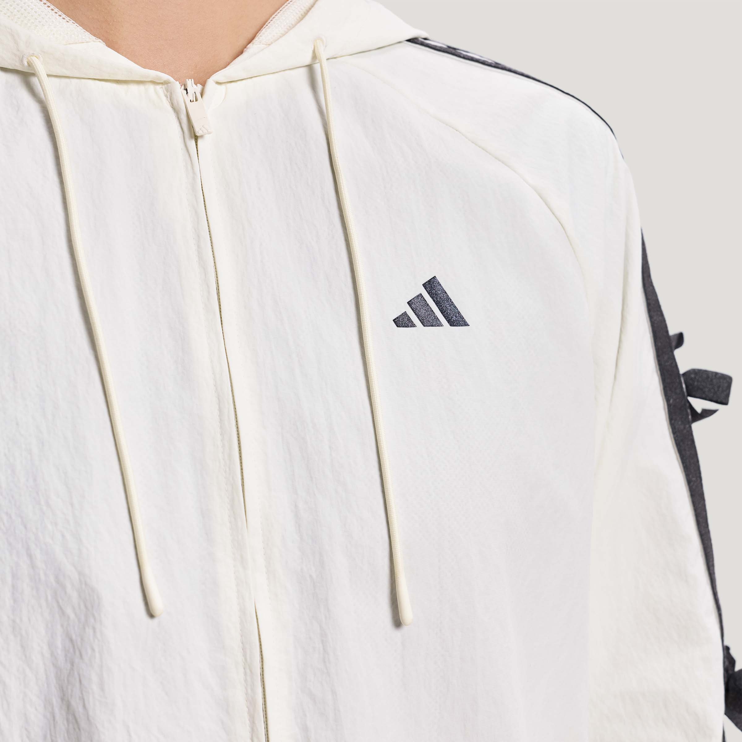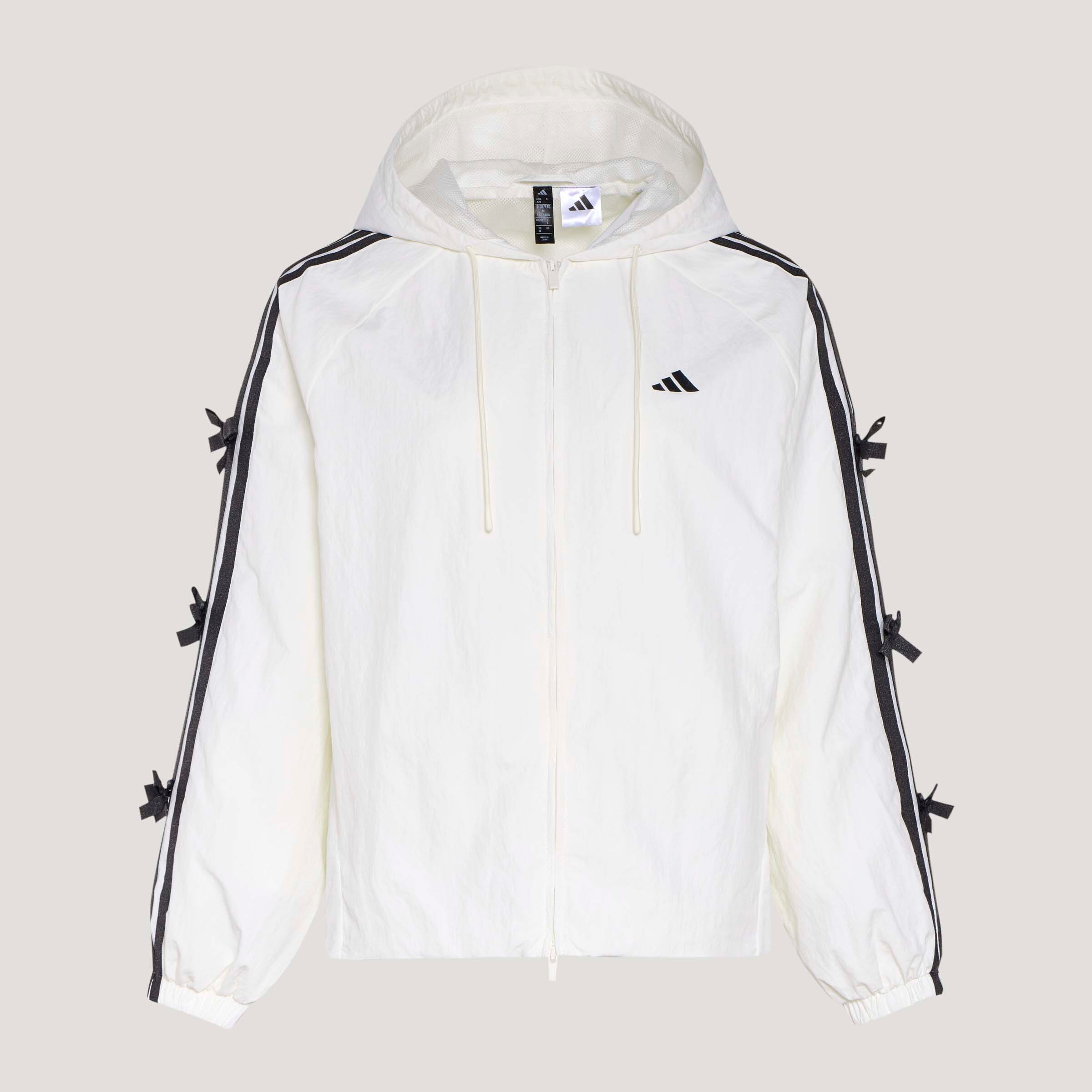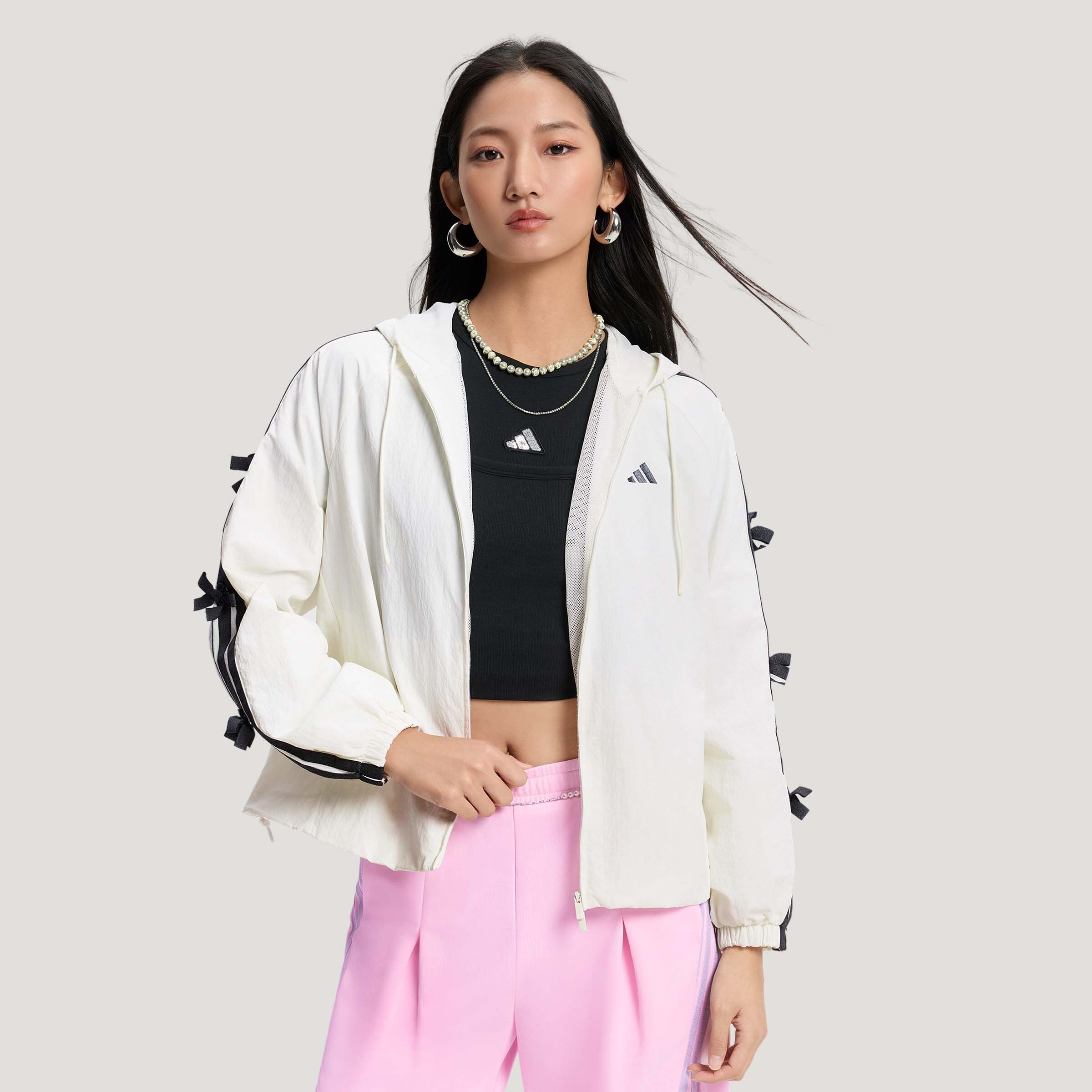 Adidas阿迪达斯DANCE LONG LENGTH JACKET 三条纹舞动系列拒水蝴蝶结运动休闲连帽夹克早春薄外套